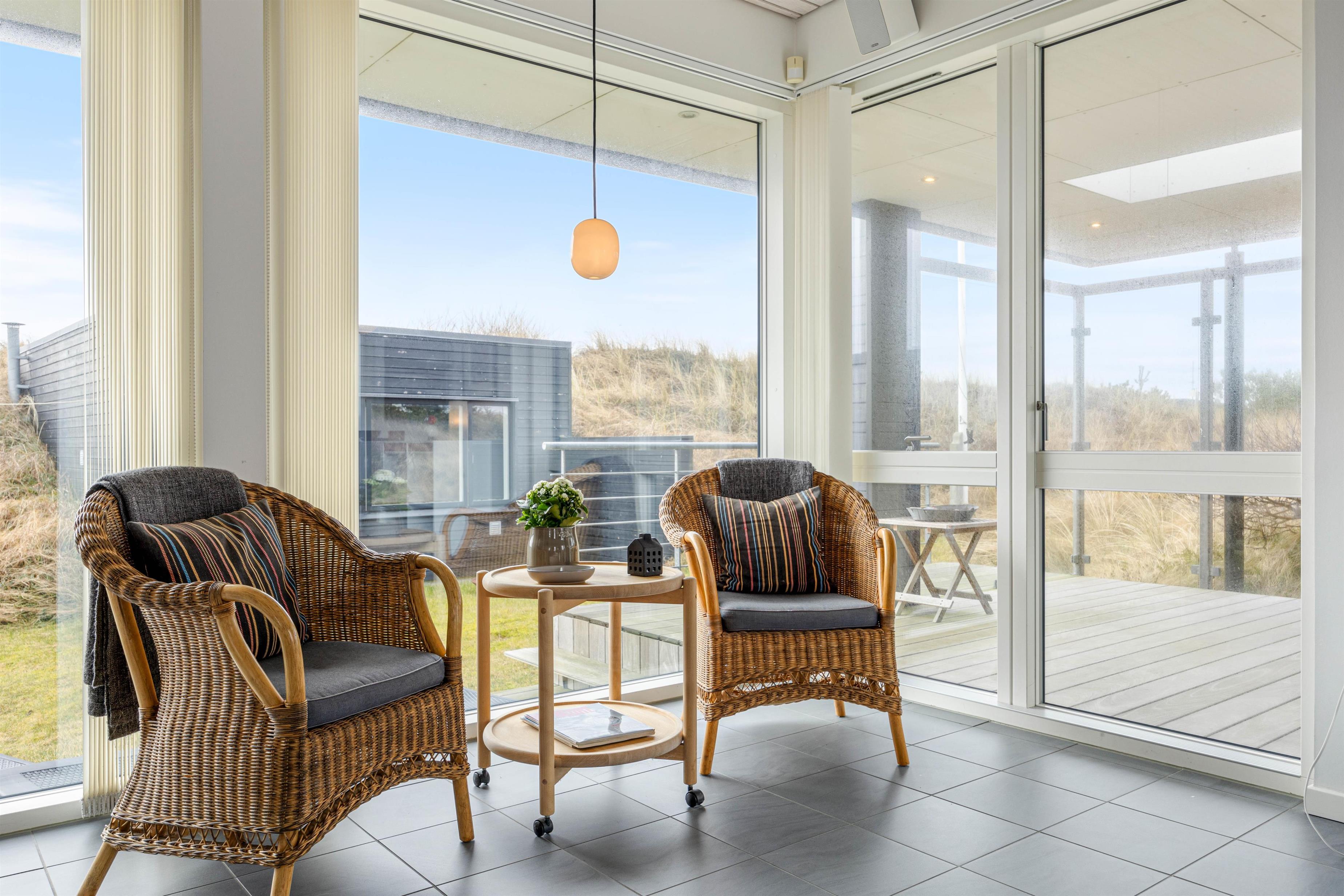 Dette feriehus på Hjelmevej 161 rummer med sine 120 m2 mere end god plads til seks feriegæster, og I får masser af plads at brede jer ud på. De moderne og stilrene omgivelser er åbnet op med lyse og indbydende farver, en helt særlig kræsen om detaljen og ikke mindst store vinduespartier, der inviterer solen og den vestjyske natur indenfor.