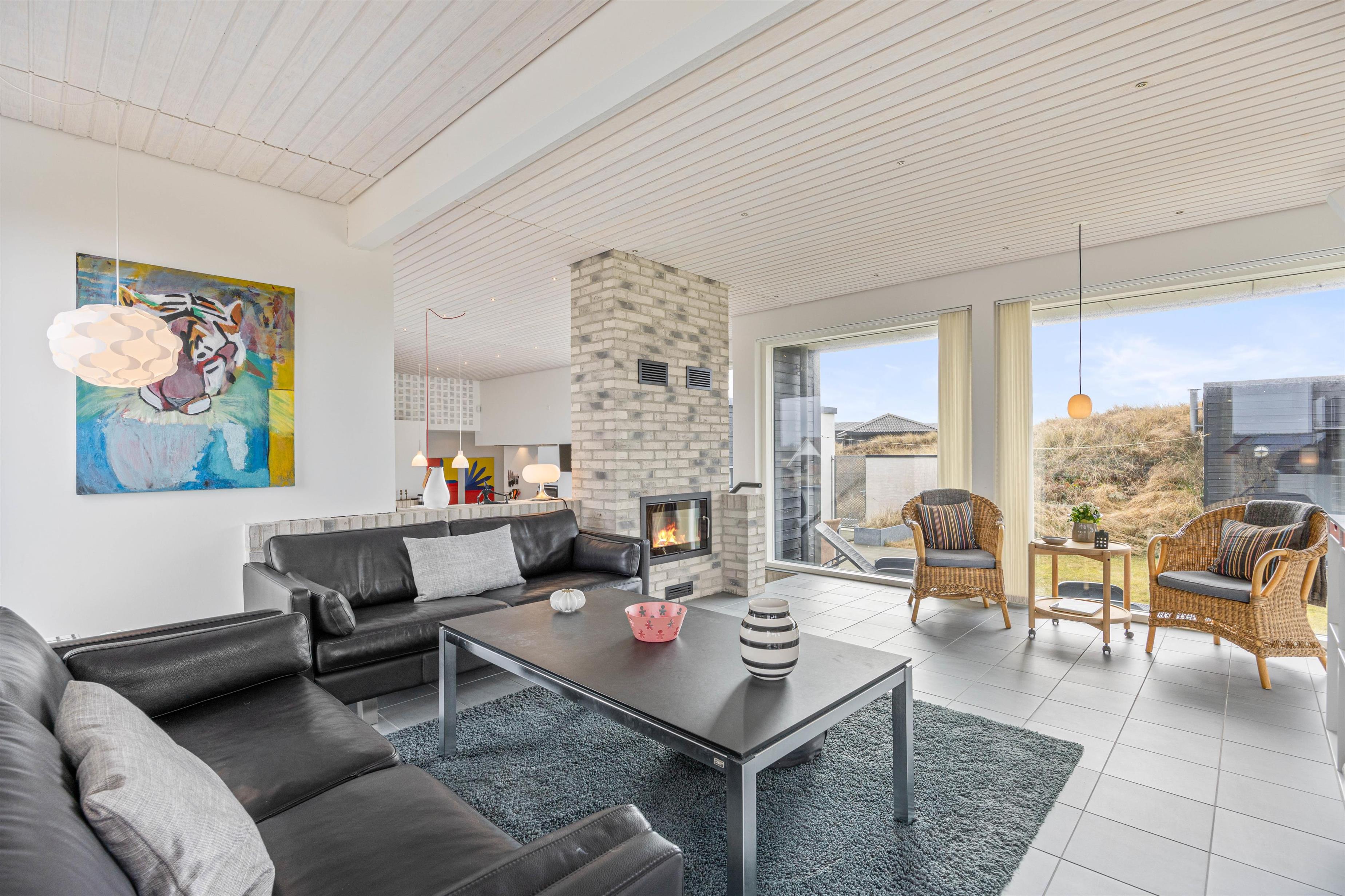 Selv om huset har stilrene linjer, er der stadig gjort plads til "hyggen". De mange små detaljer gør indretningen personlig og skaber en hyggelig og afslappende ferieatmosfære, som I vil mærke med det samme. I stuen som ligger i forskudt plan med køkkenet, er der god plads til at I kan finde et hyggeligt og komfortabelt sted at slappe af. Her er der også en pejseindsats, der er perfekt til de køligere årstider, da den altid er garant for at sprede en masse hygge og ikke mindst varme. Fordi at husets også er udstyret med fibernet, kan I altid holde jer opdateret på det der sker på de sociale medier.