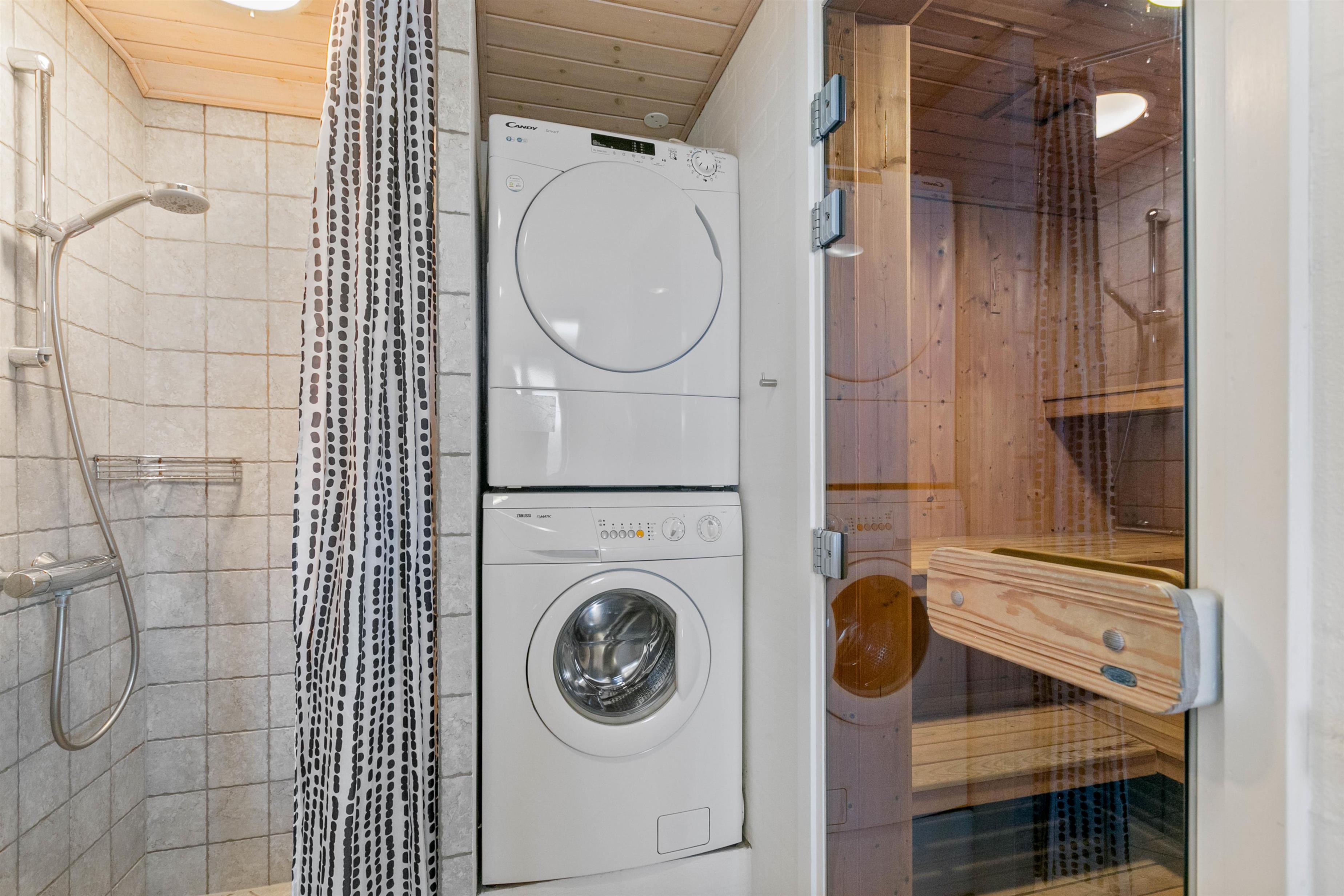 Feriehusets åbne køkken ligger i forlængelse med stuen, så I her har mulighed for enten at samles om madlavningen eller planlægge ugens oplevelser og aktiviteter. I har desuden også mulighed for at smide jer i sofaen med en god bog, en god film eller spille et spil sammen, imens I nyder varmen fra feriehusets brændeovn.