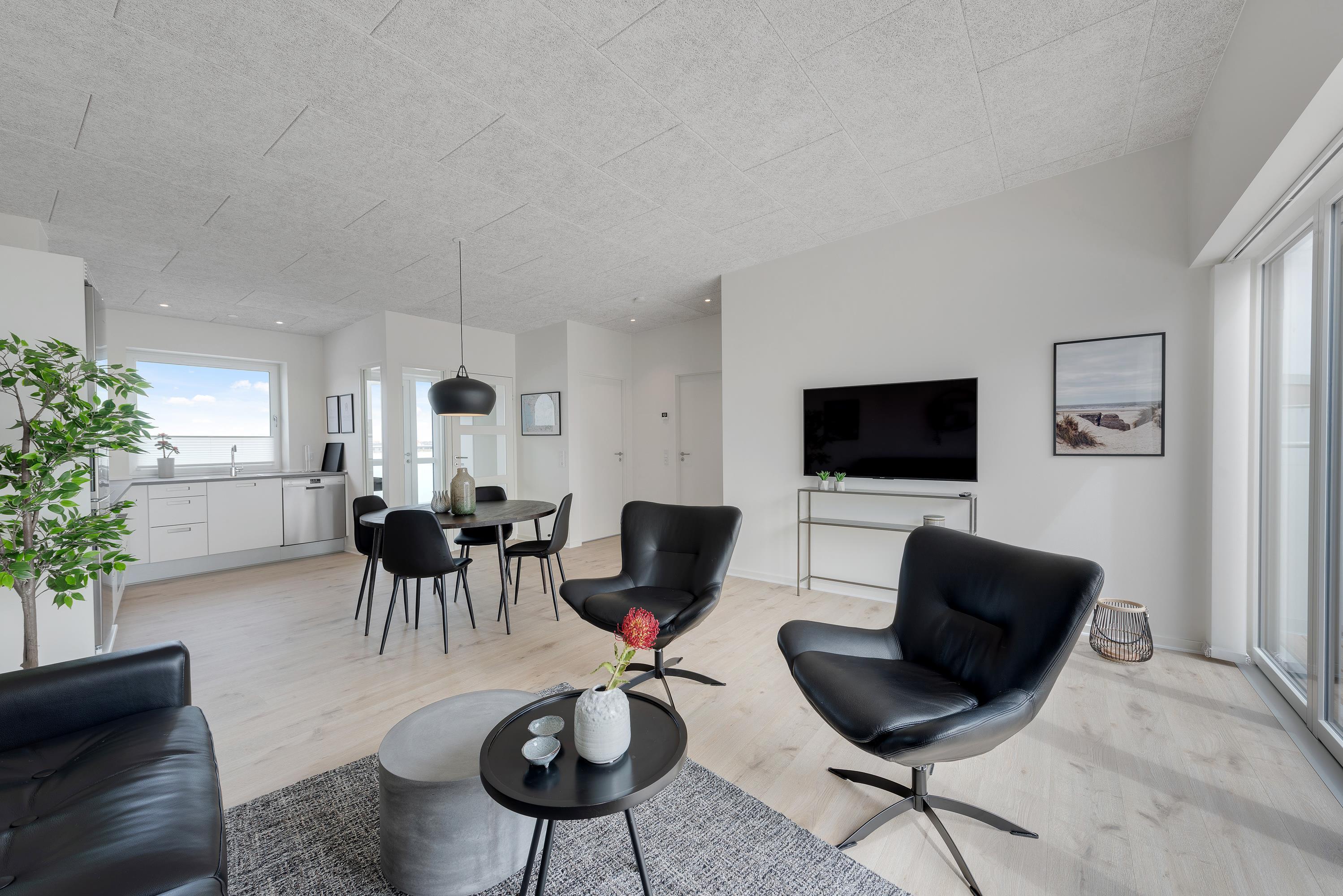 Ferielejligheden består af en stor, lækker stue, som er stilfuldt møbleret og ligger i forbindelse med et moderne køkken med alle de nødvendige faciliteter. Her er masser af plads til fire mennesker, og den nyopførte lejlighed sikrer et godt indemiljø. Desuden opvarmes lejligheden af et energivenligt, varmepumpesystem, der sammen med den gode isolering af lejligheden sørger for et lavere elforbrug.