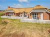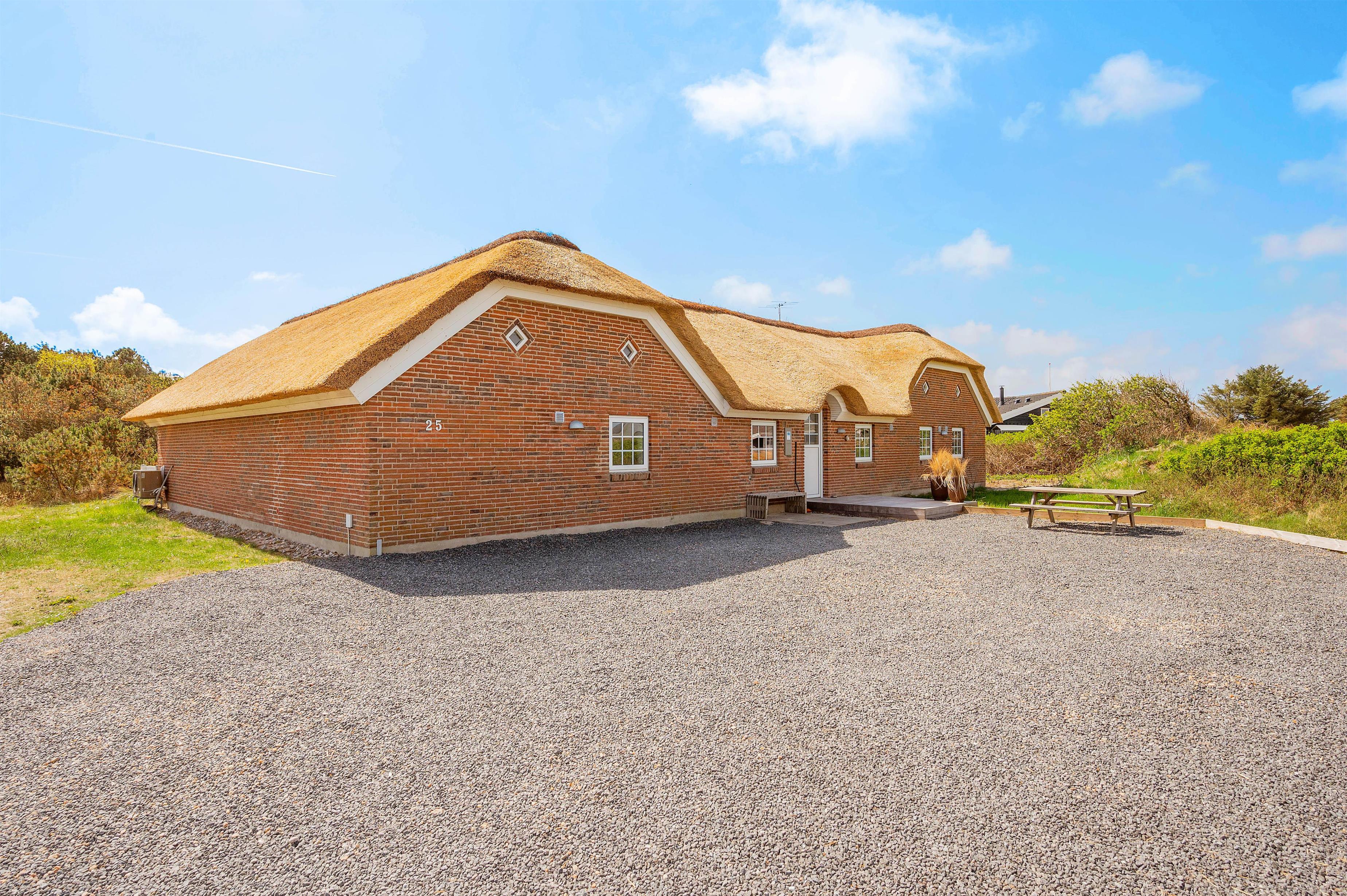 Fra stuen er der adgang til husets terrasse. Sommerhusets udendørs område er lige så imponerende som indendørs faciliteterne. Den lukkede og afskærmede terrasse er ideel til hyggelige stunder med god mad tilberedt på grillen og total afslapning i komfortable havemøbler. Der er også en gynge til de yngste medlemmer, som kan lege og more sig her. Beliggenheden er perfekt med kun 900 meter til det brusende Vesterhav og cirka 1800 meter til de nærmeste indkøbsmuligheder