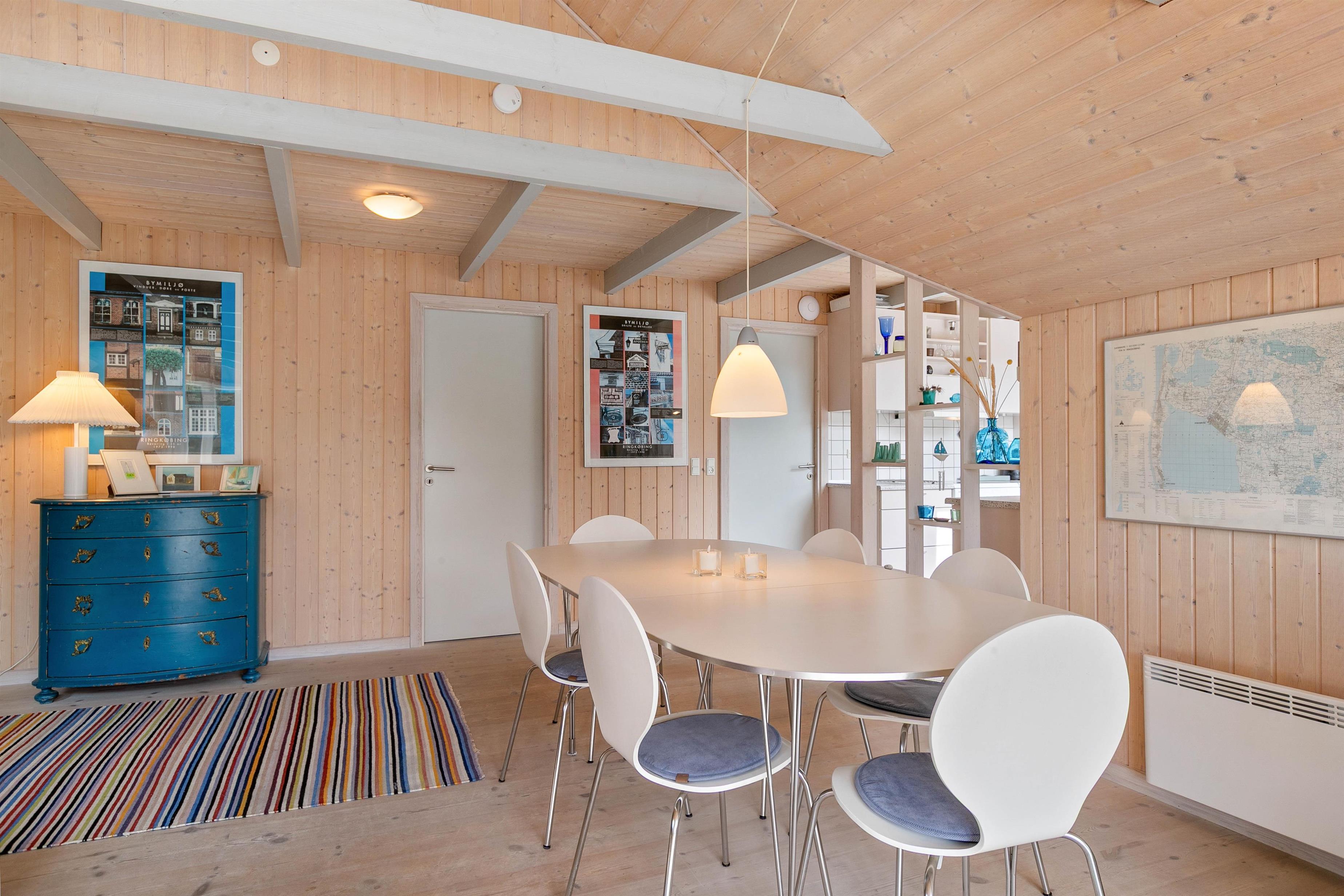Dette dejlige og hyggelige kvalitetssommerhus danner den perfekte ramme om en god ferie ved Vesterhavet i Danmark. Huset er flot og hyggeligt indrettet og man føler sig straks hjemme. Her er tre dejlige soveværelser, to med dobbeltsenge og en med to separate senge. Flot badeværelse med bruseniche, gulvvarme og adgang til sauna. Køkkenet er lyst, lækkert indrettet og udstyret med bl.a. opvaskemaskine og en 60 liters dybfryser. Stuen/spisestuen er smagfuldt møbleret og her er et smukt lysindfald fra de store vinduespartier. Fra stuen er der udgang til husets store, lukkede terrasse.