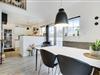 I stueplan findes køkkenet, som ligger i åben forbindelse med spiseplads og stue – ferielejlighedens centrale rum, som bringer hele familien sammen. Dertil kommer det store badeværelse med sauna og spabad samt et gæstetoilet, begge med gulvvarme. Her kan I nyde godt af lidt ekstra wellness efter en lang spadseretur i den friske havluft.