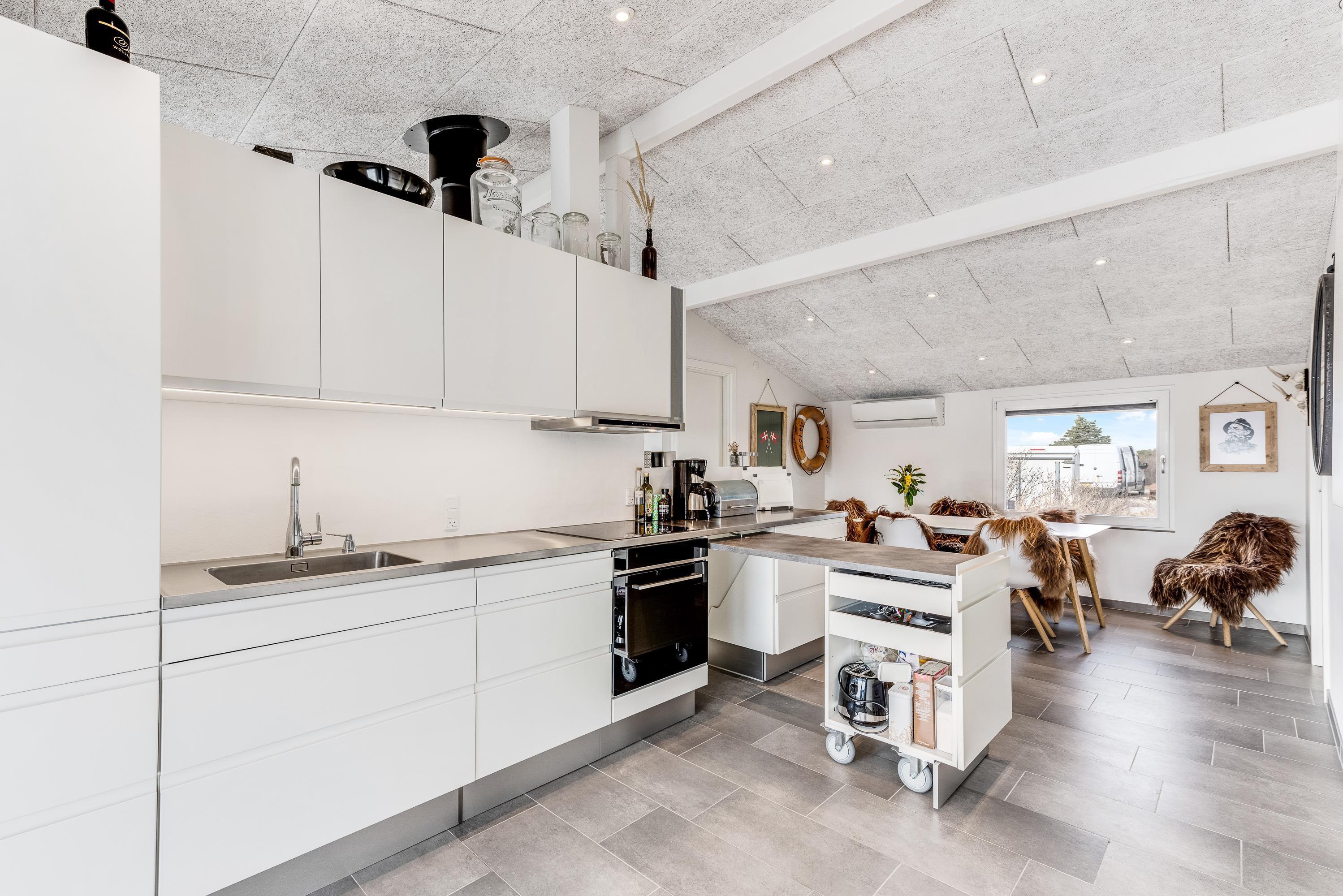 Indretningen er ikke kun indbydende, den inkluderer også alle praktiske nødvendigheder, der er med til at give jer endnu mere tid til at slappe af på ferien. Således er køkkenet udstyret med opvaskemaskine, mens badeværelset har både vaskemaskine og tørretumbler.