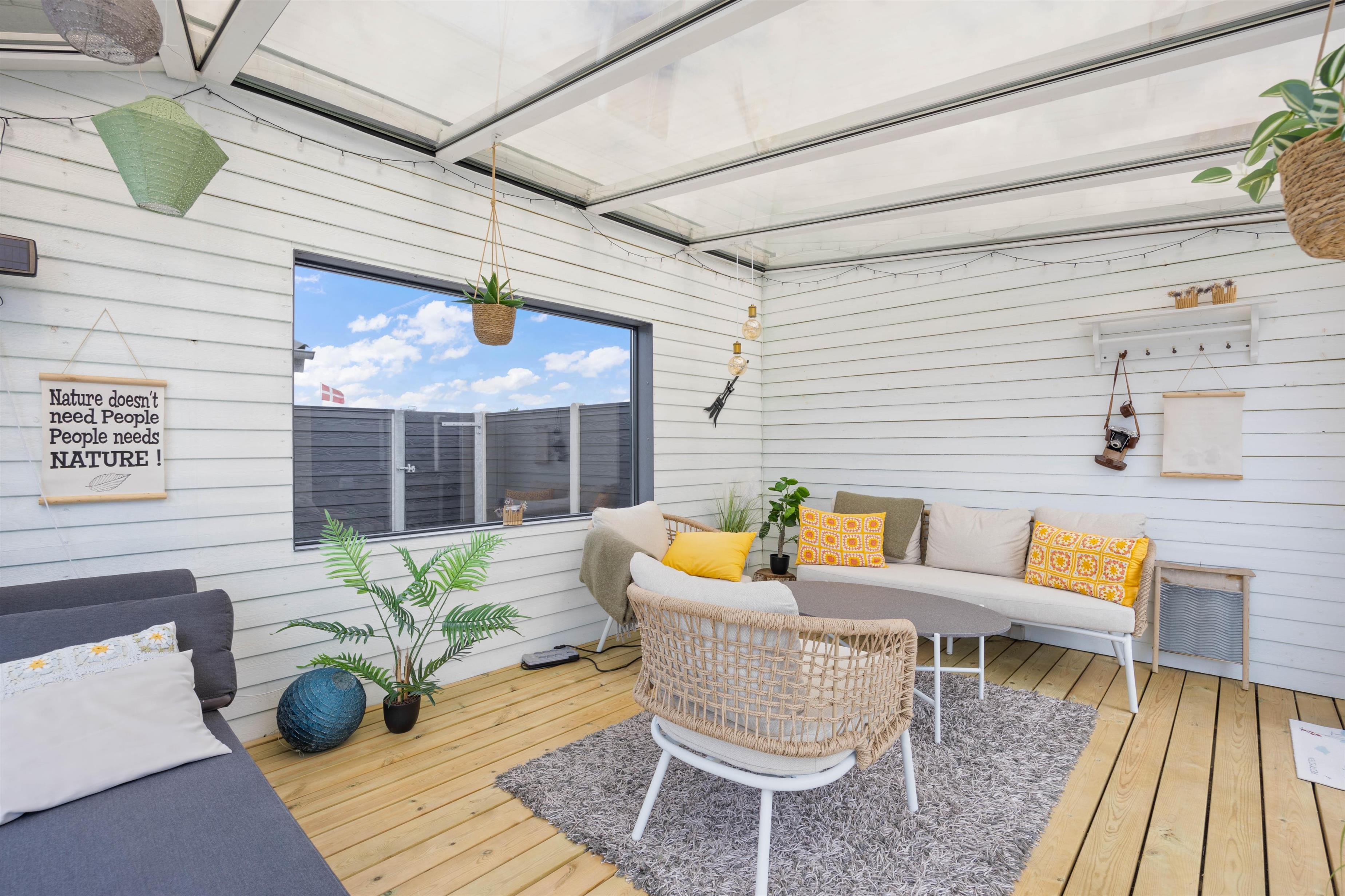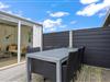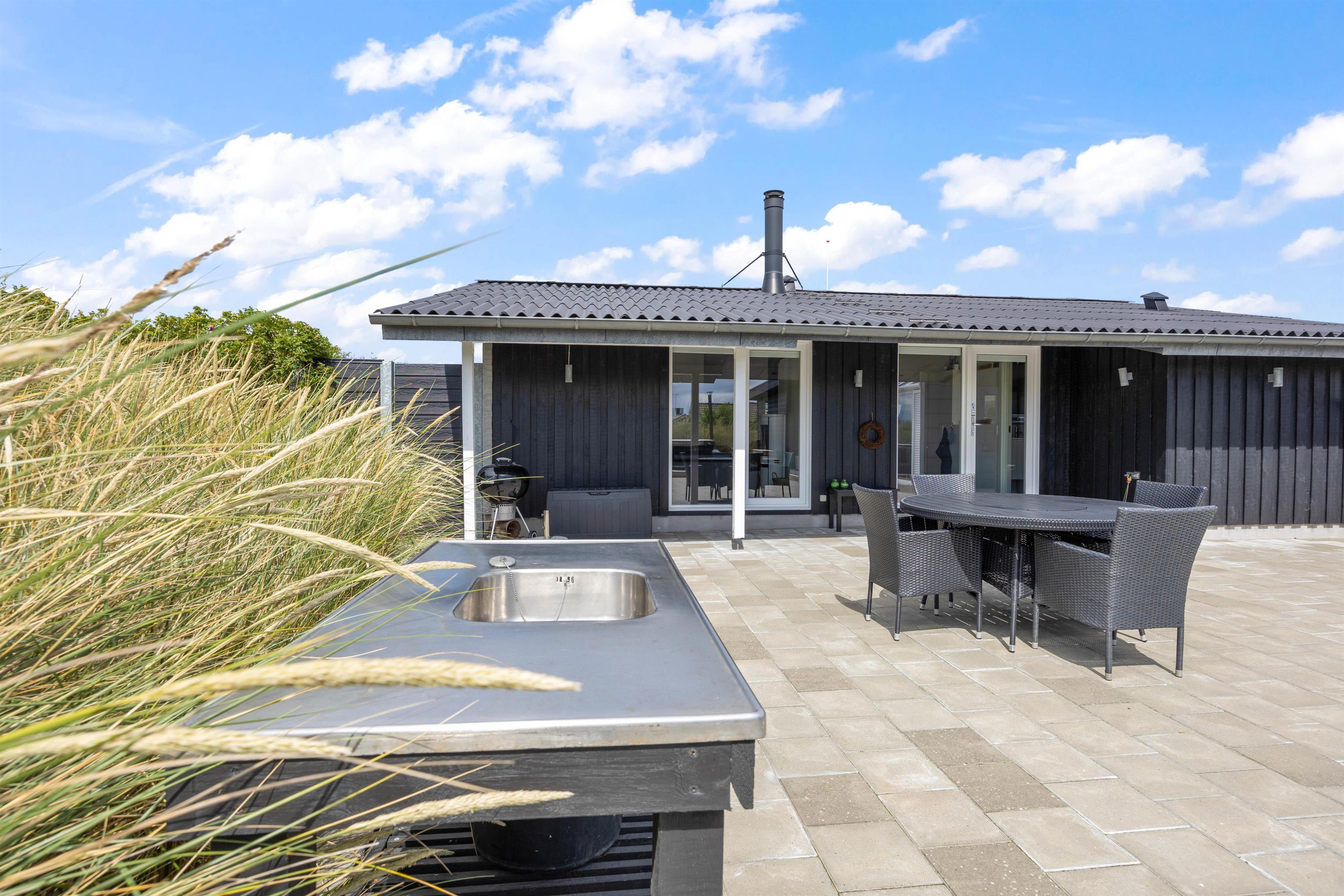 Sommerhusets højdepunkt er den lækre, afskærmede terrasse. Her er der ikke kun sørget for gode havemøbler, liggestole og grill. Der står også et stort vildmarksbad klar til at berige jeres ferie med de skønneste wellnessoplevelser under åben himmel. Efter en afslappende stund i vildmarksbadet kan I få en skyller under udendørsbruseren, som også er rigtig praktisk, når I kommer hjem fra en strandtur med fødderne sandet til. Udebruseren vil kunne tages i brug i perioden april til november.