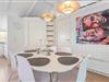 Takket være det åbne opholdskoncept og de mange vinduer er dette feriehus gennemstrømmet af lys. Det er en oplevelse at lave mad i dette køkken, da du samtidig kan have kvalitetstid med dine medmennesker. Hele familien vil elske at spille spil i spiseområdet og læse en god bog foran pejsen. Børnene kan hygge sig i poolen, og efterfølgende blive varmet igennem i saunaen.