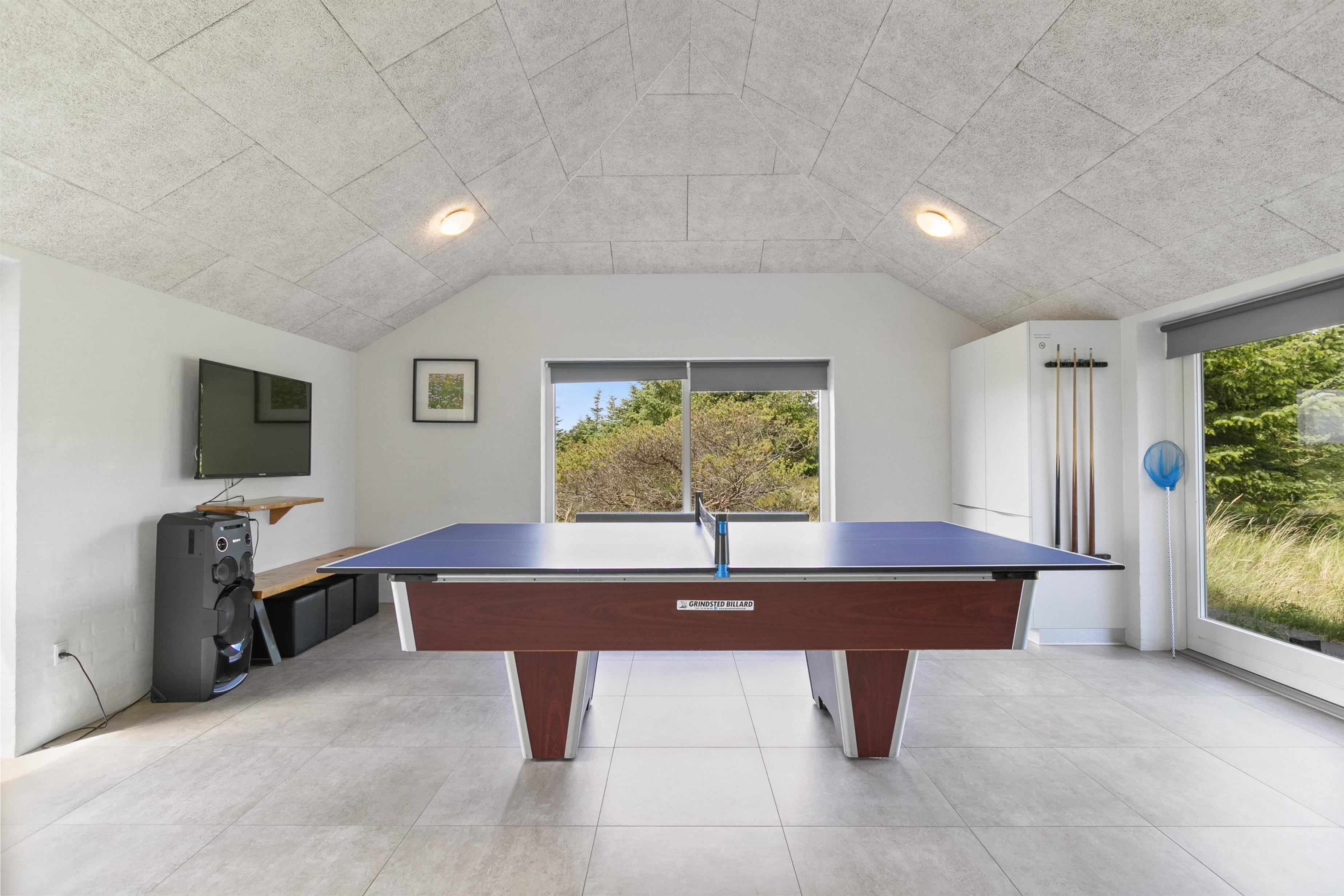 I feriehuset har I naturligvis spiseafdelingen og stuen, hvor I kan samles. Derudover er der også et dejligt aktivitetsrum med billardbord, bar og fladskærm. Her kan I hygge jer med spilaftener; uanset om det er en turnering i billard, bordtennis, brætspil, eller en dyst på den medbragte spillekonsol – det er samværet, der giver de bedste ferieminder.
