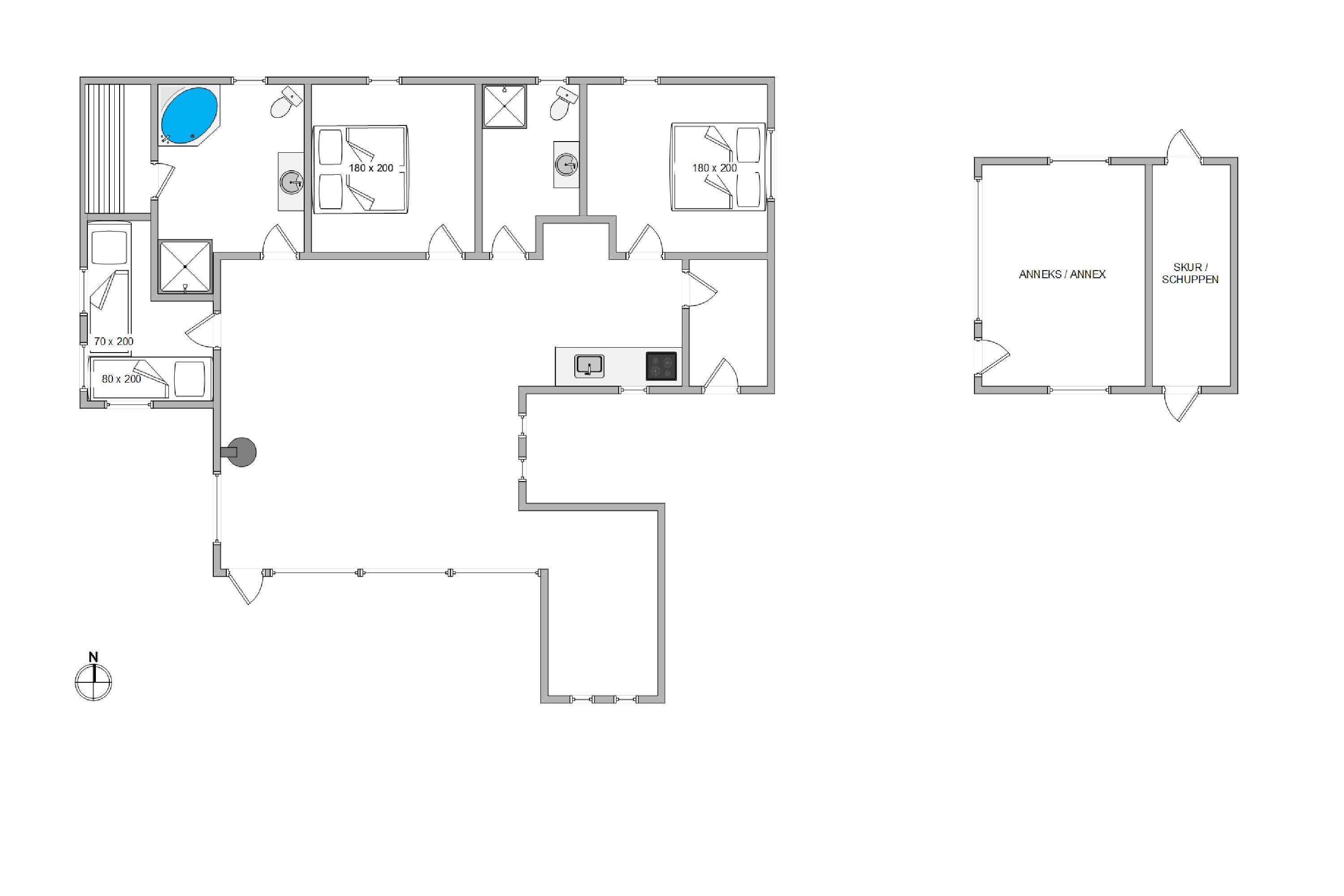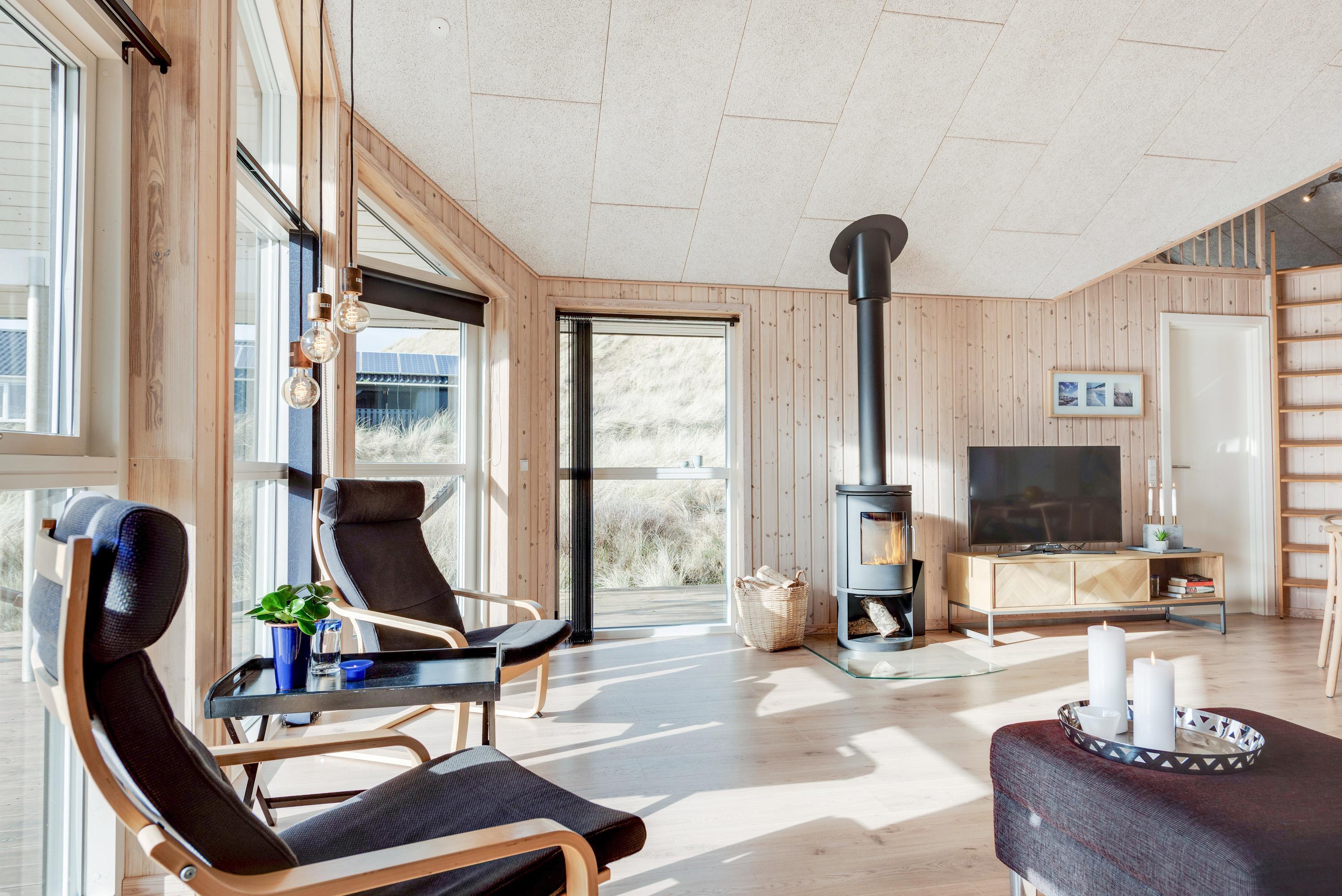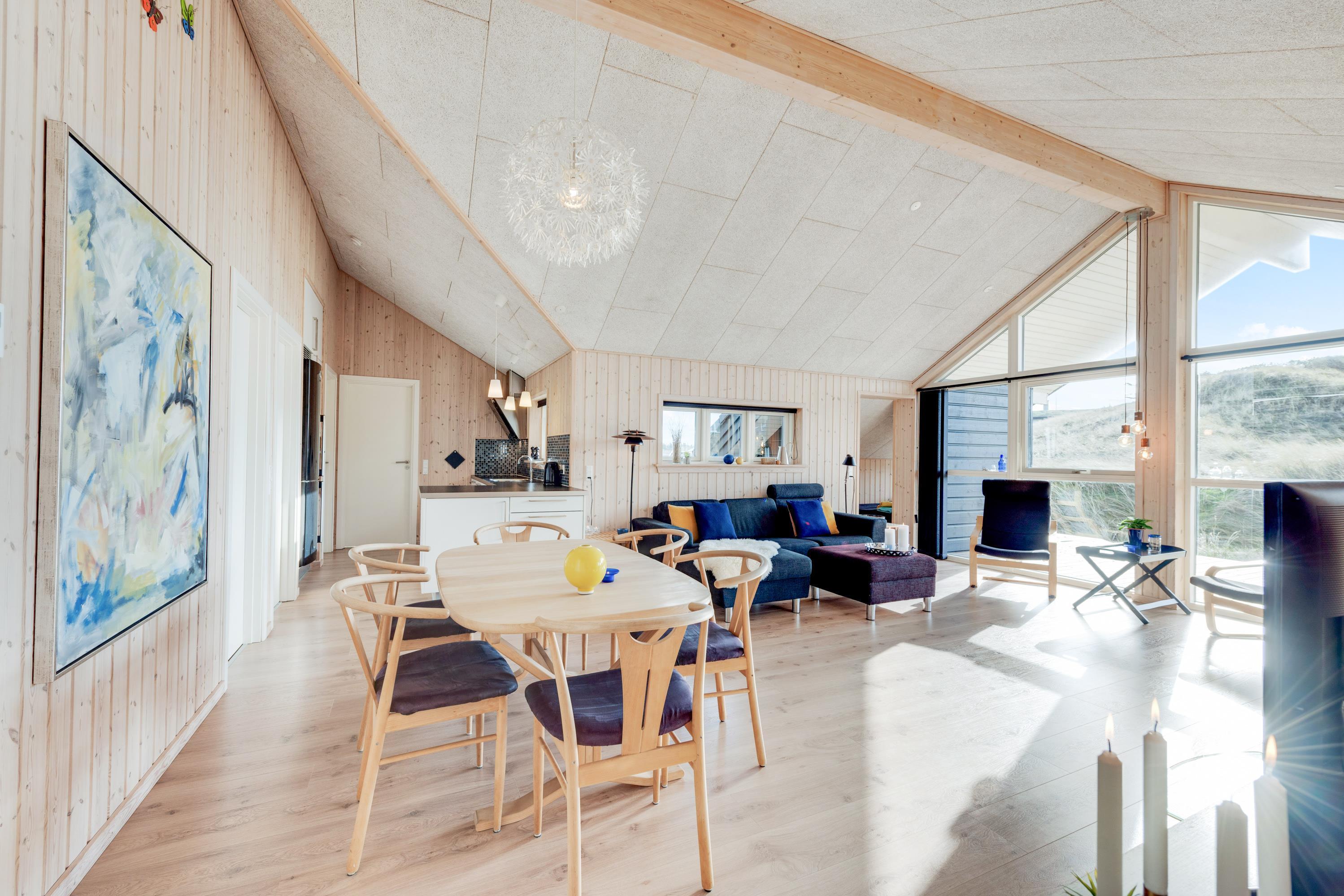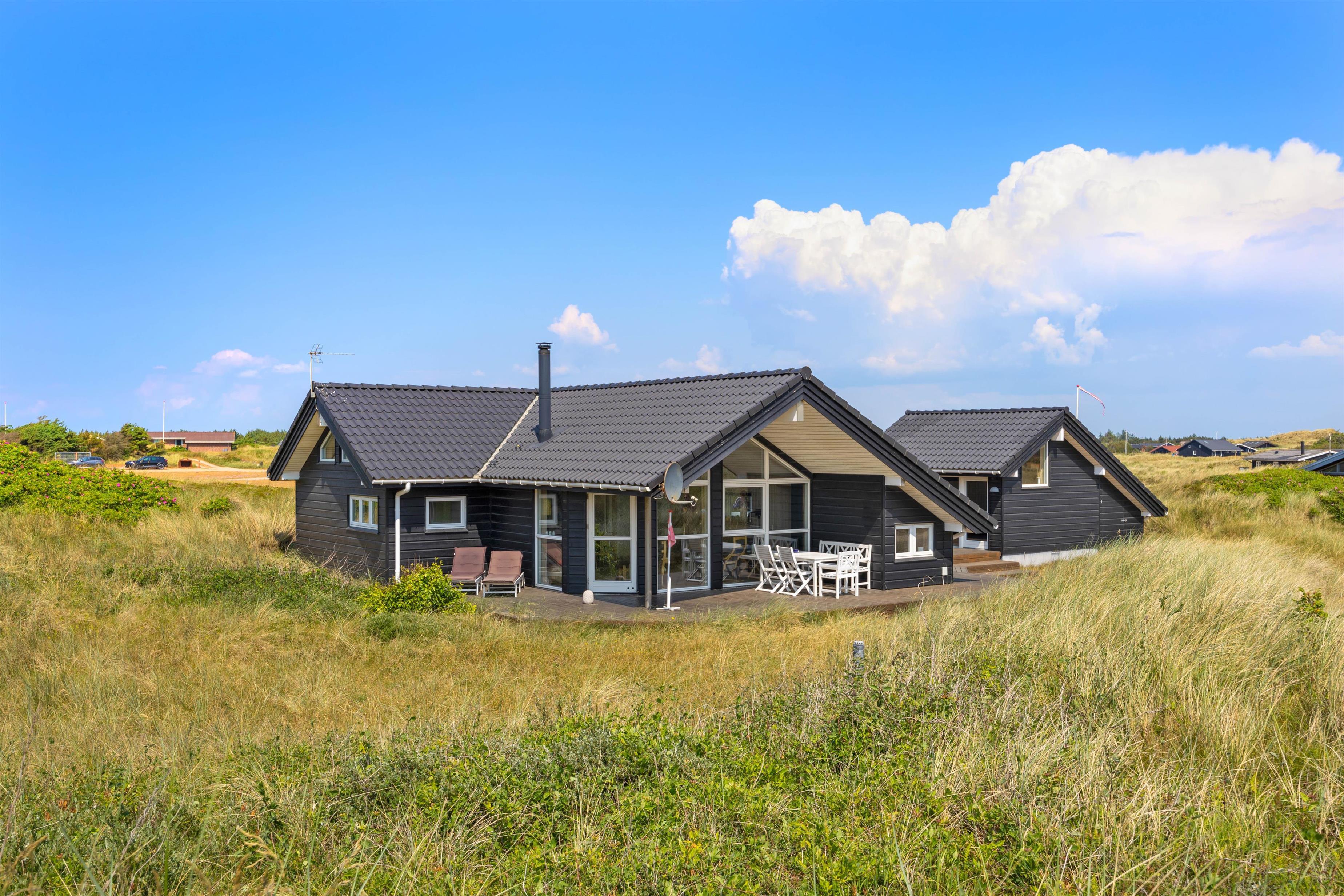 Et charmerende feriehus placeret på en kuperet klitgrund tæt på Vesterhavet. Der er 2 badeværelser, spa og sauna i huset. Stuen er hyggelig og med loft til kip og en brændeovn. Der er 3 gode værelser og et anneks, der kan benyttes som aktivitetsrum med ekstra fladskærm til spil. I har mulighed for at lade jeres elbil ved feriehuset.