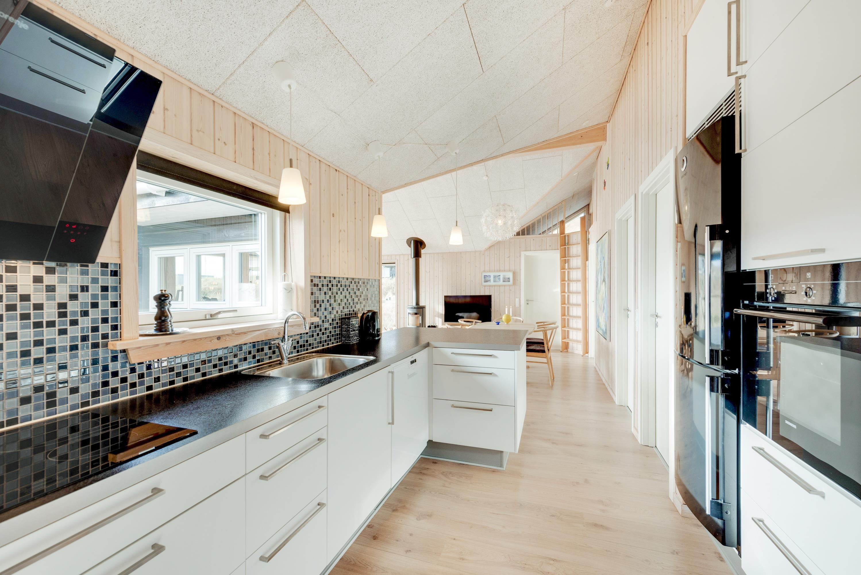Gode faciliteter i feriehuset og en indbydende brændeovn på Wolle Friks Vej 40