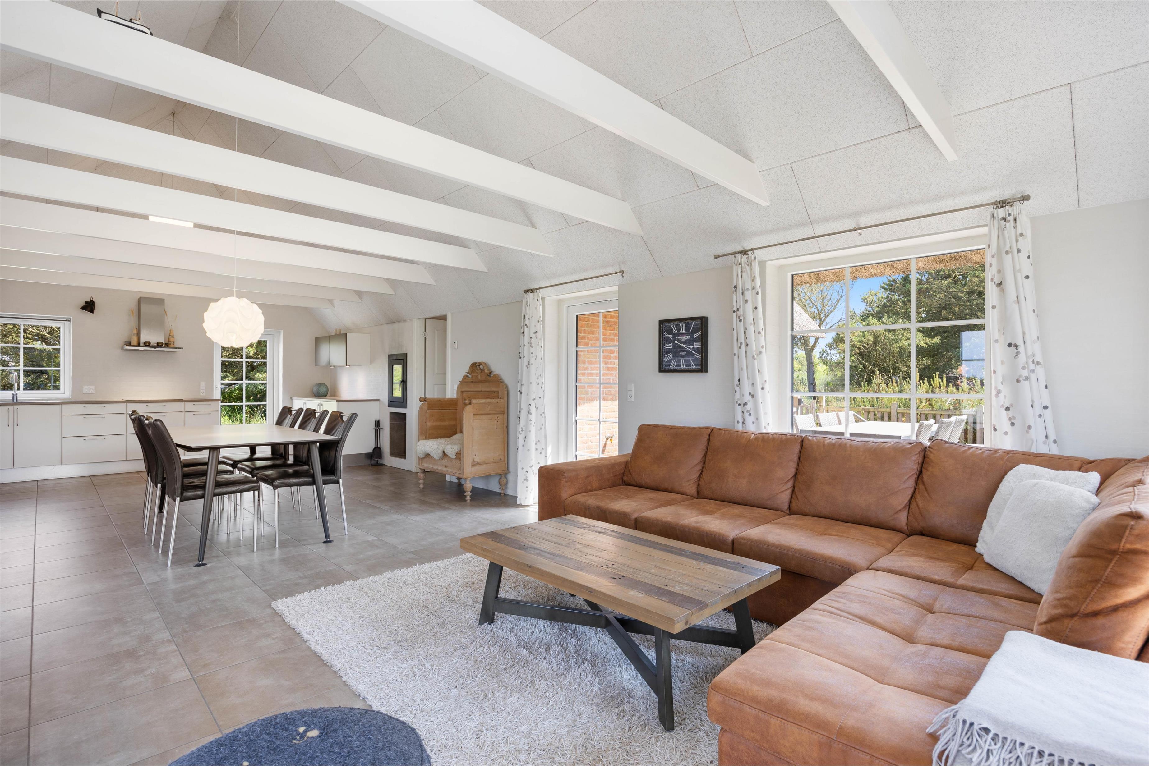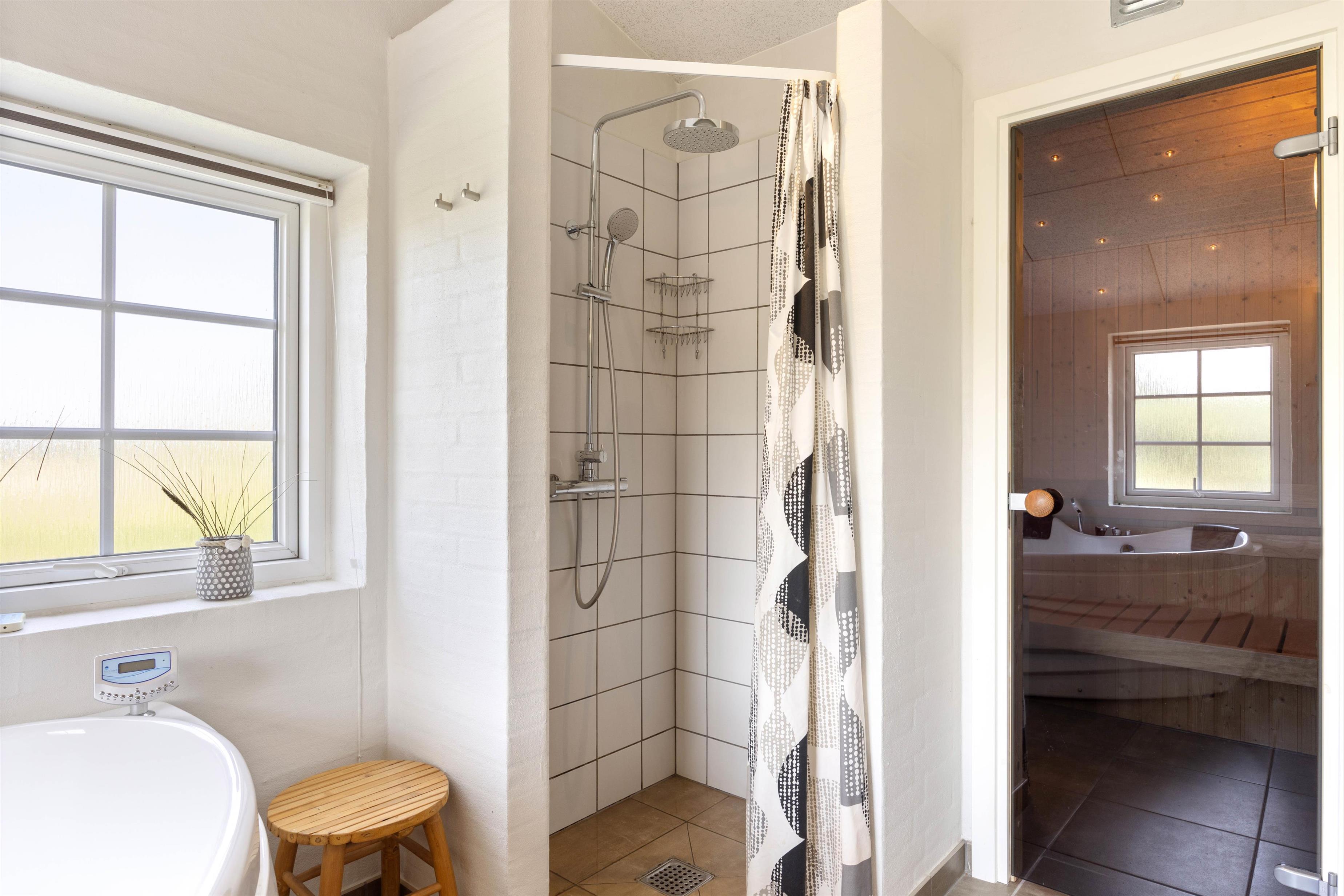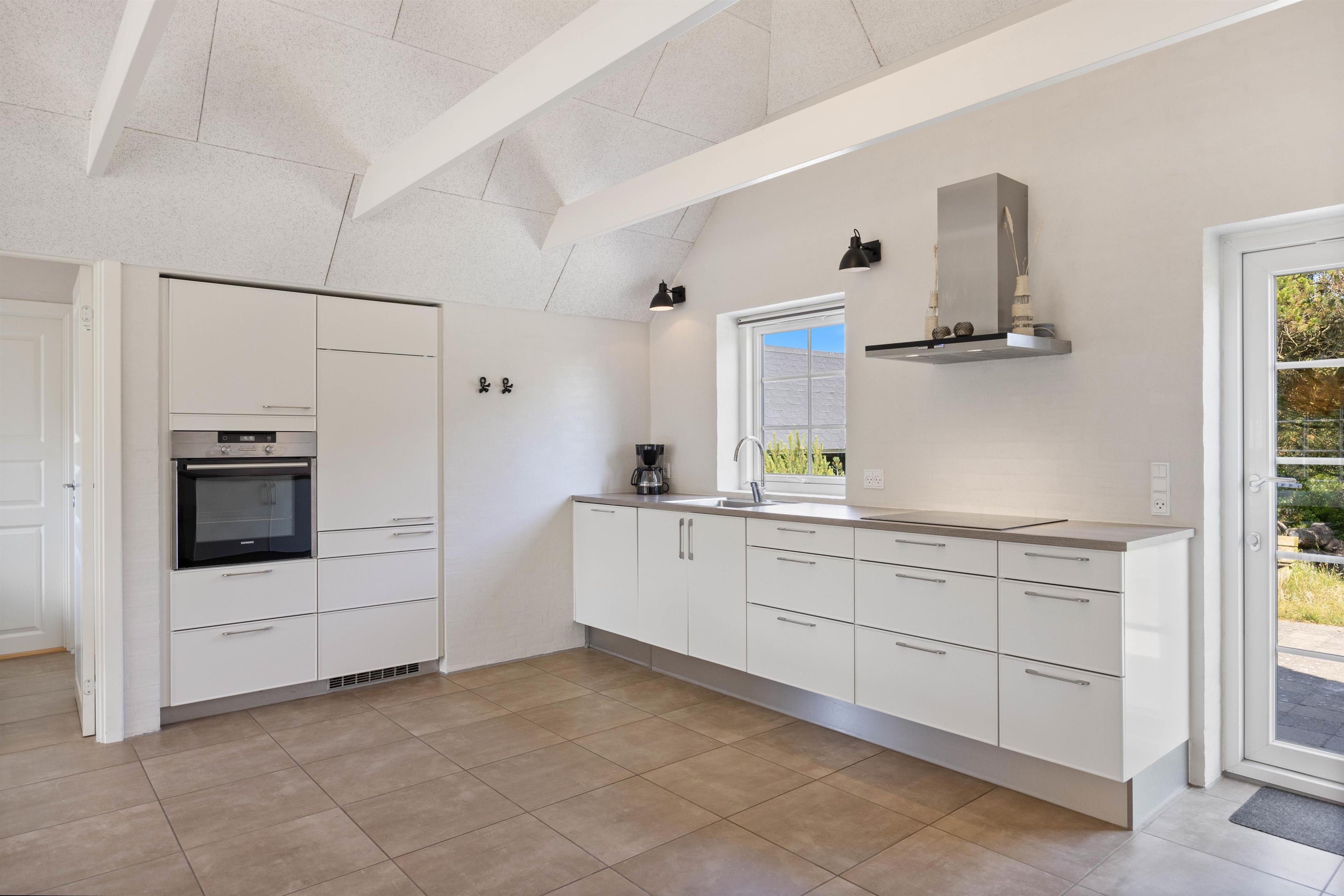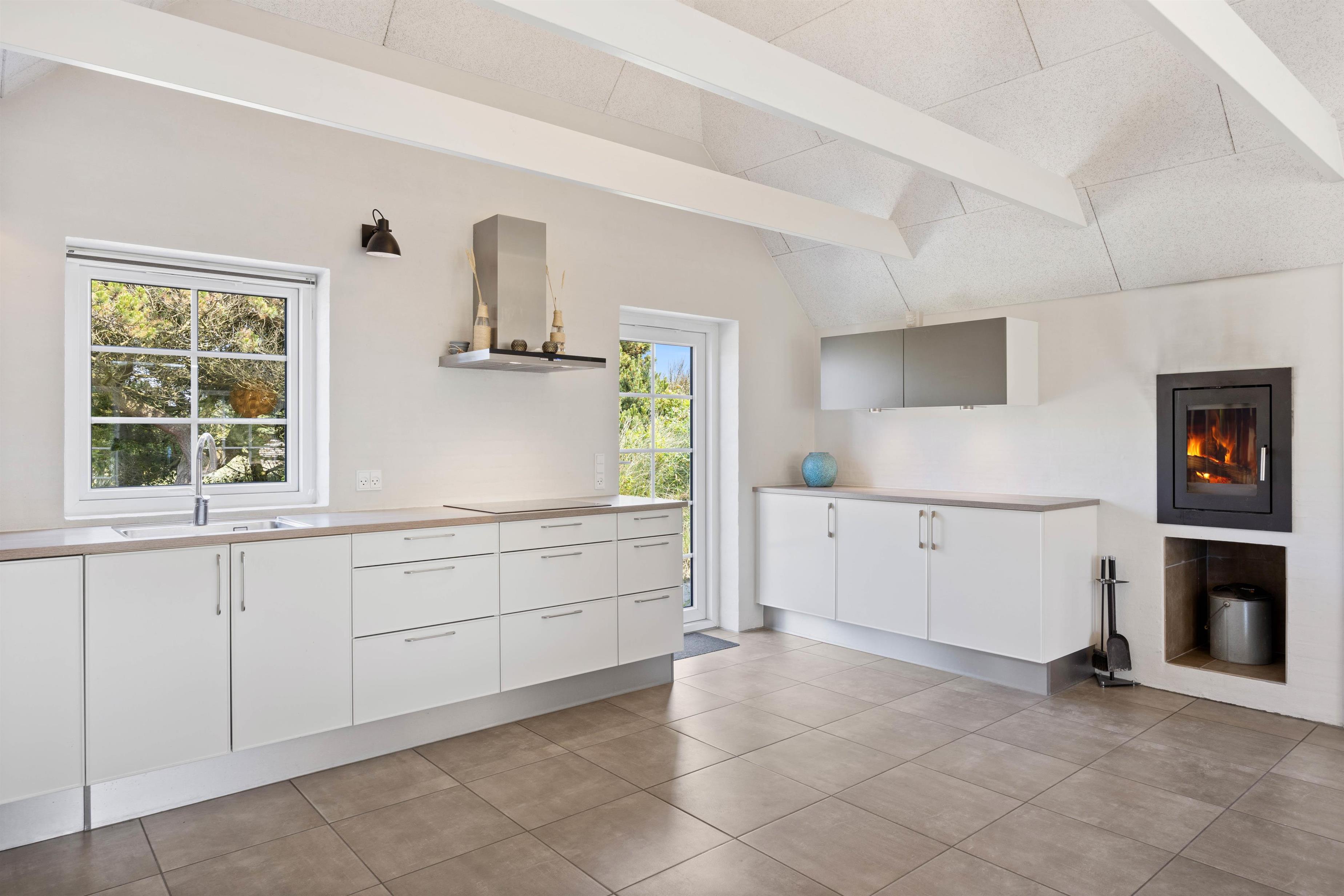 Sommerhusets hjerterum er uden tvivl det dejlige, lyse køkken hvor I også finder brændeovnen. Køkkenet er i direkte forbindelse med opholdsstuen og stuen, hvor I kan samles og hygge jer mens der laves mad eller spilles spil alt imens brændeovnen skaber ægte sommerhushygge. Sommerhuset har hele 2 badeværelser, så der ikke opstår kø om morgenen for jer ved den daglige morgenrutine. Det ene badeværelse har både sauna og spa og giver følelsen af velvære og wellness på ferien. Her vil I uden tvivl komme til at tilbringe mange dejlige feriestunder.