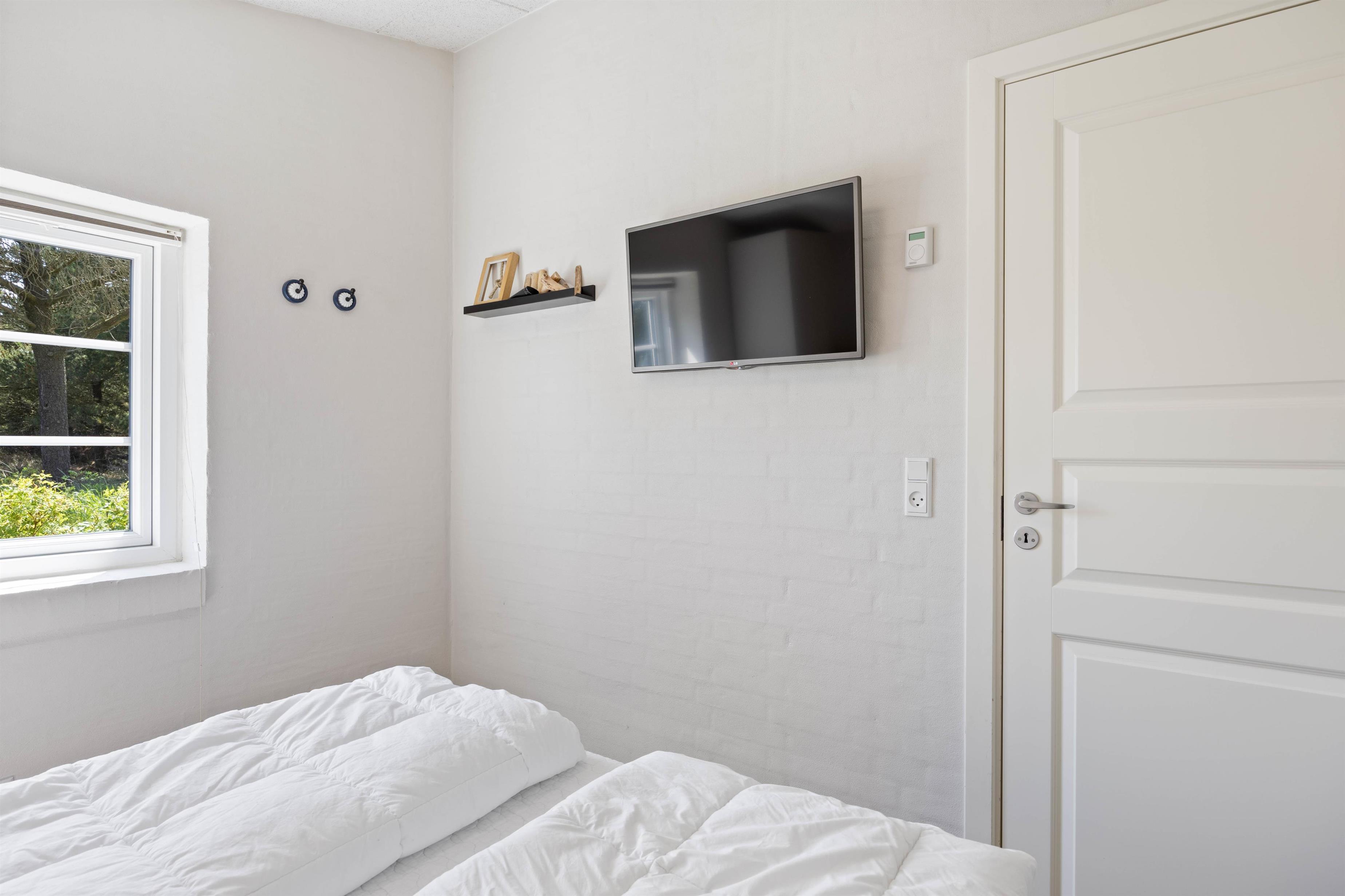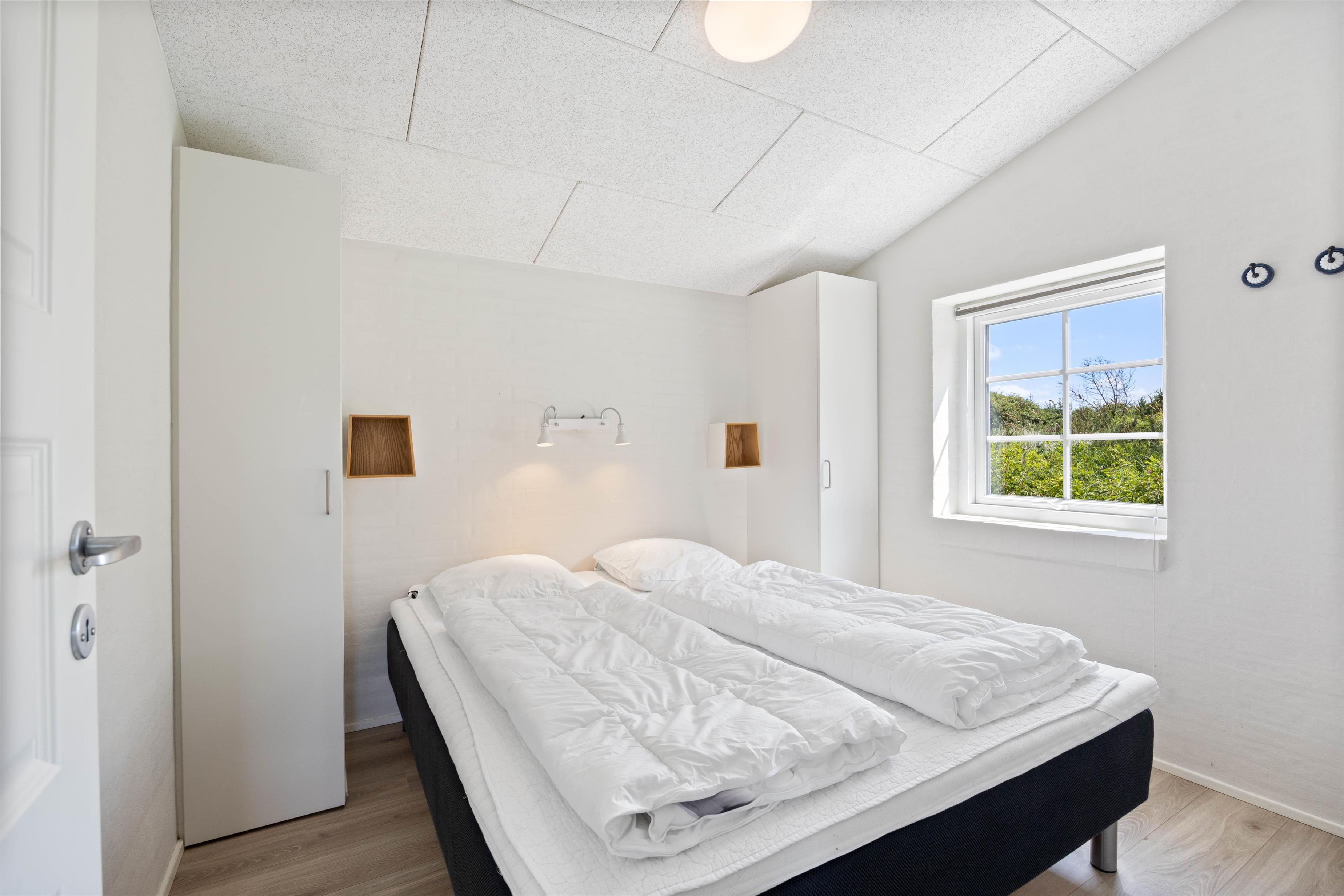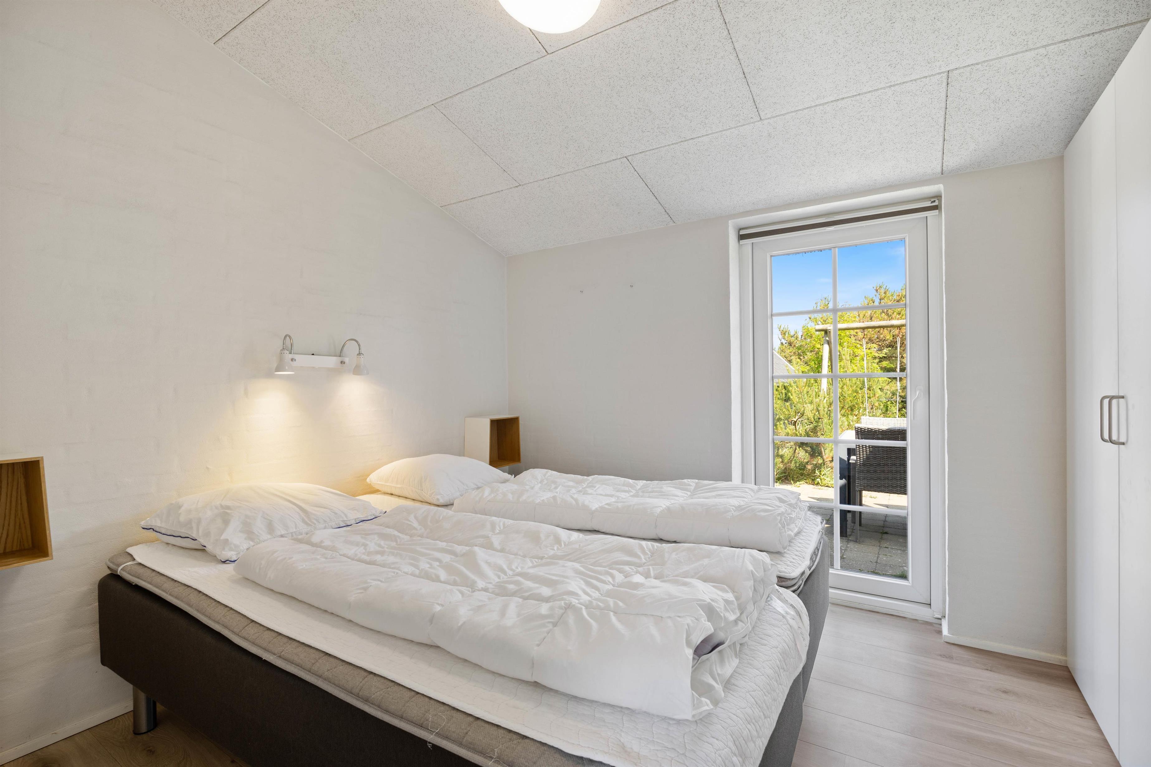 Jens Jensens Vej 46 byder jer velkommen med en lys og moderne indretning. Der er lyse loftbjælker op til kip, som giver ægte sommerhusstemning. Selve sommerhuset er fordelt på 3 soveværelser, hvoraf de 2 har dobbeltsenge. Det ene soveværelse har desuden direkte udgang til terrassen der omgiver huset.