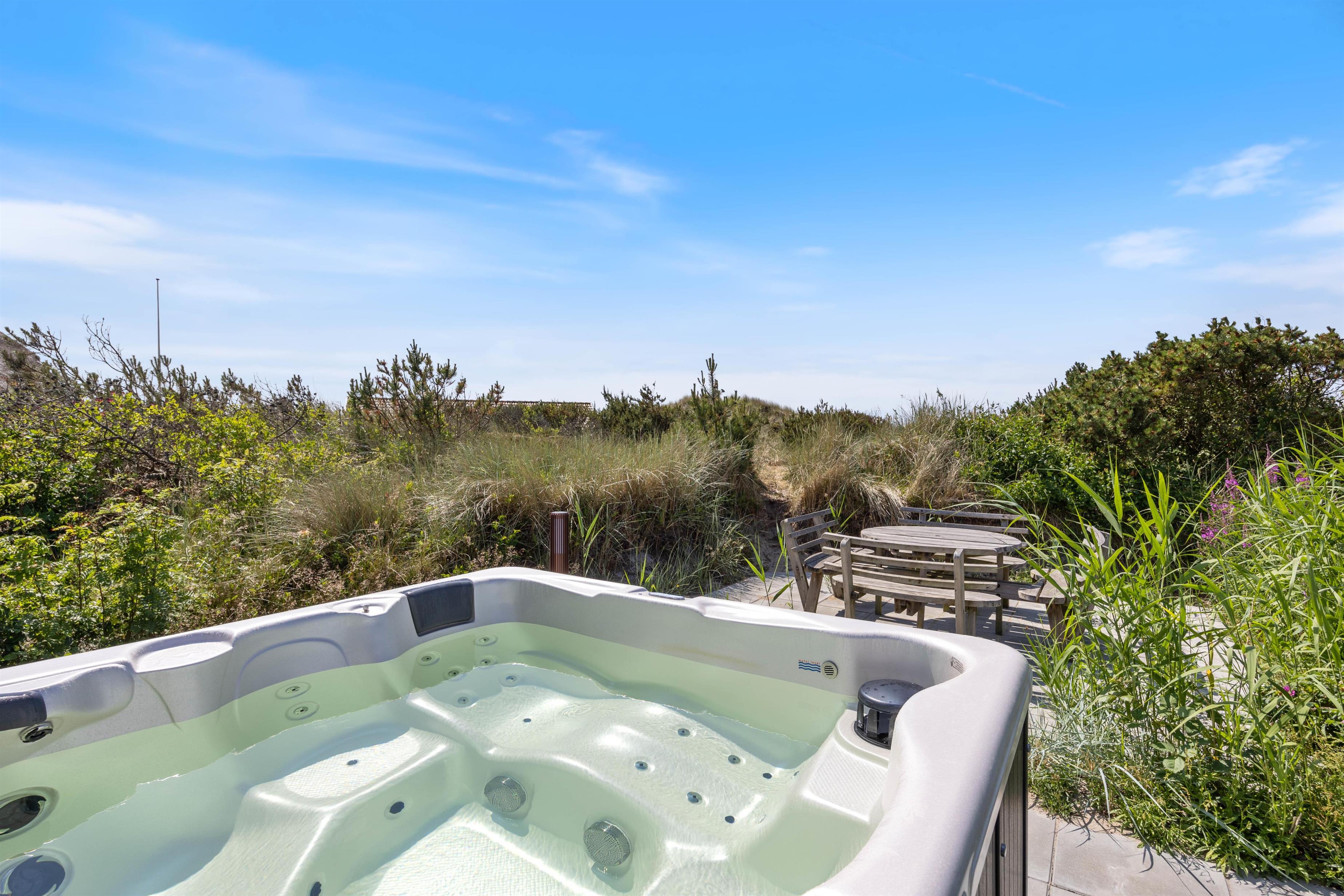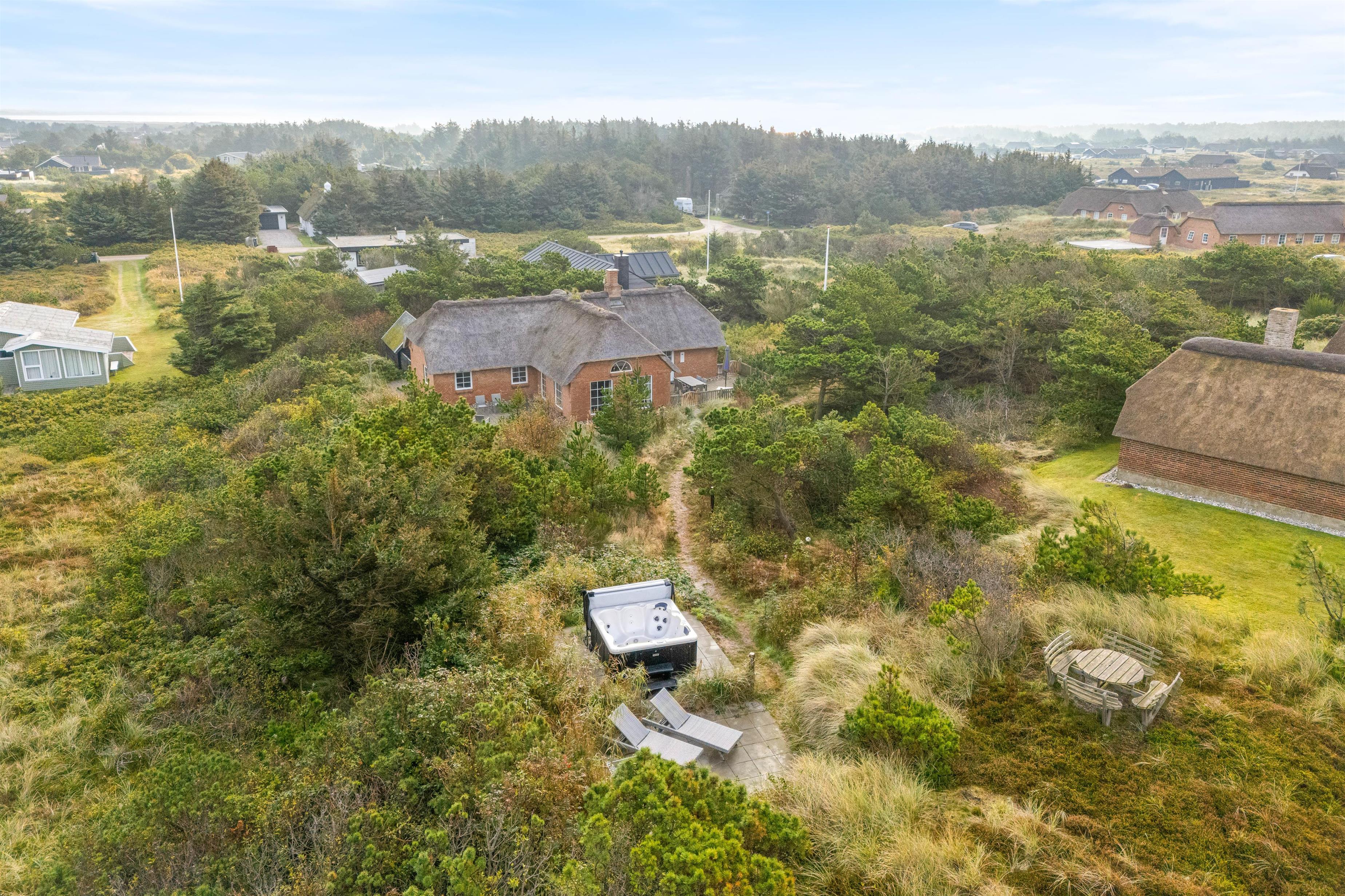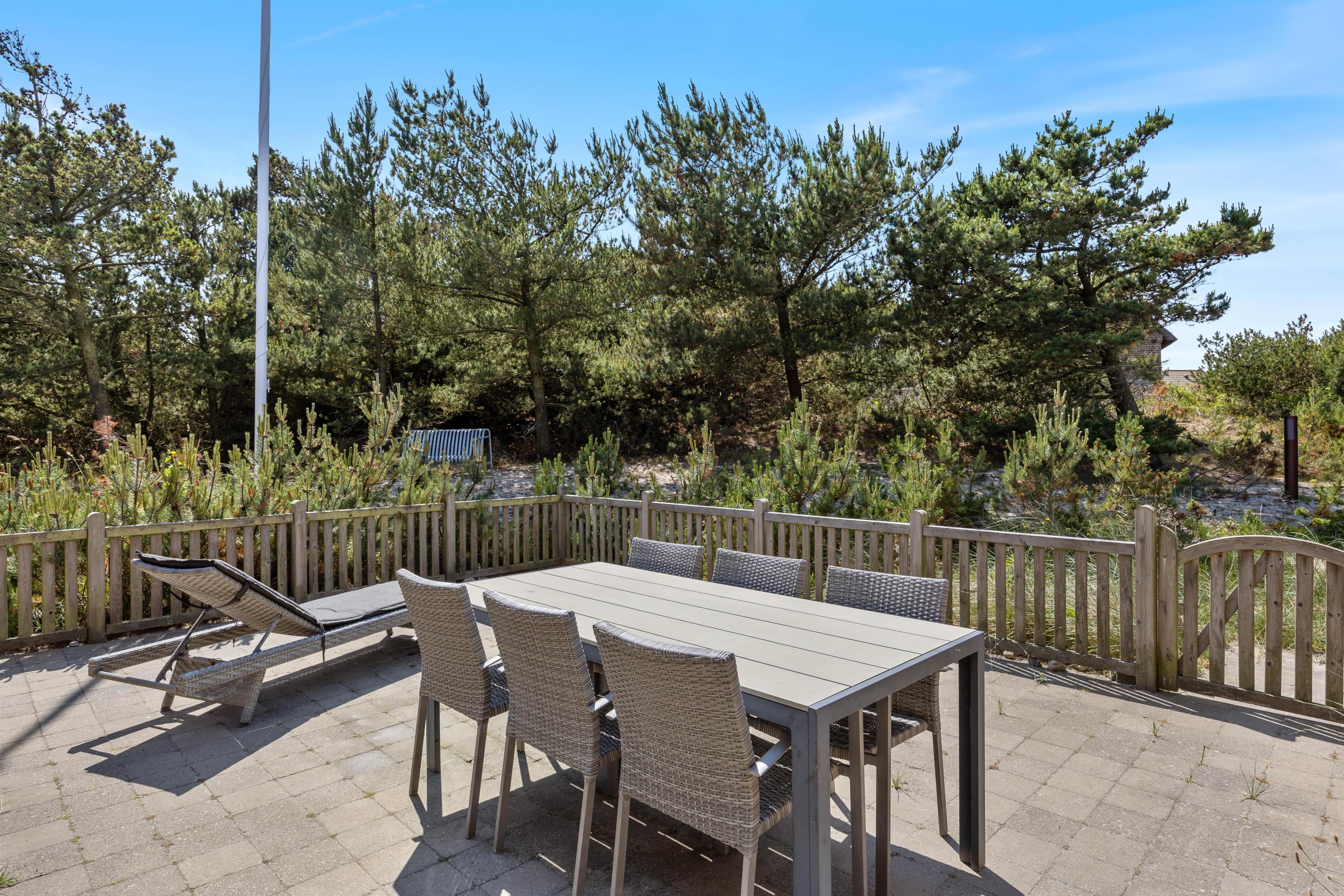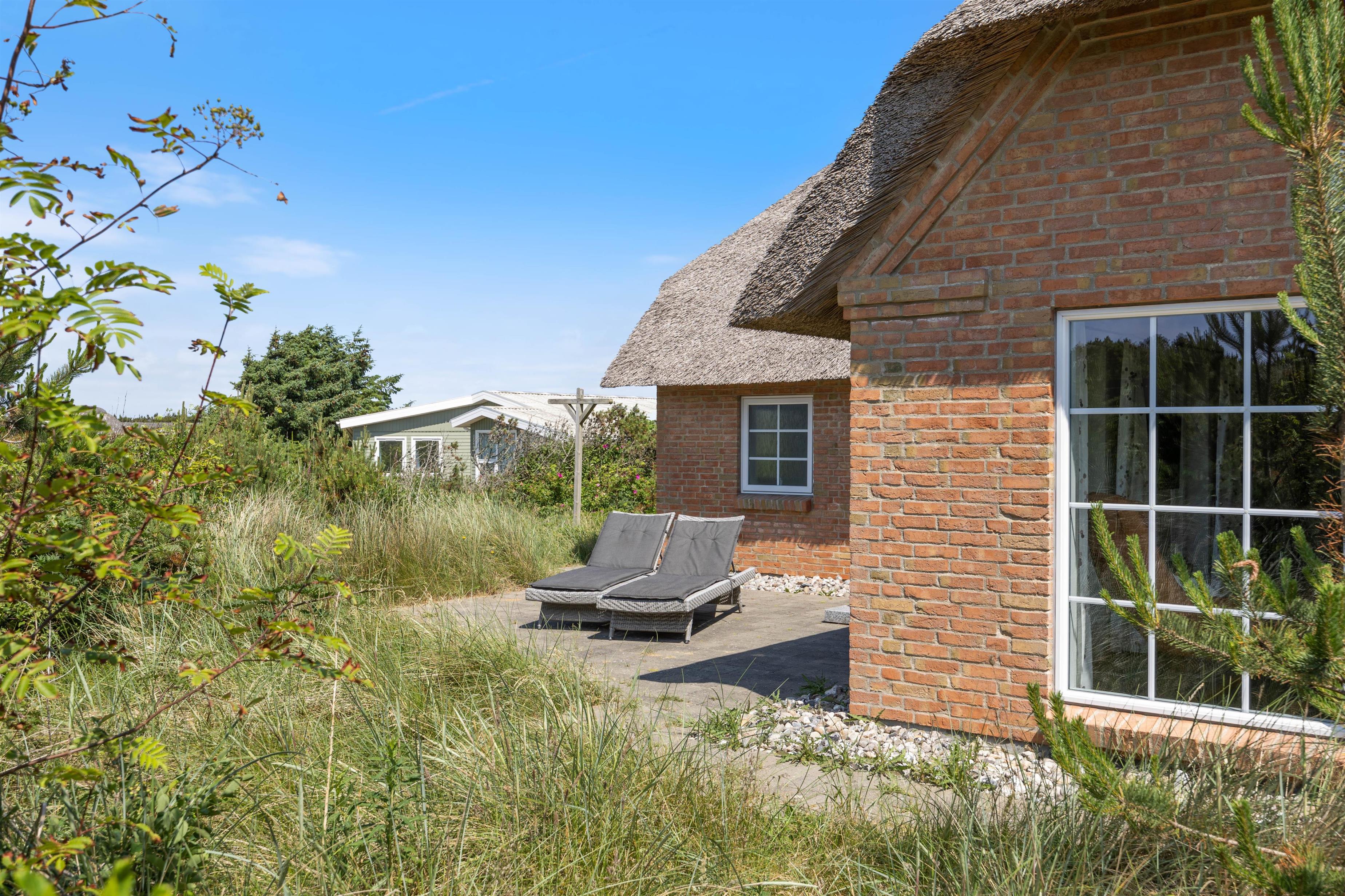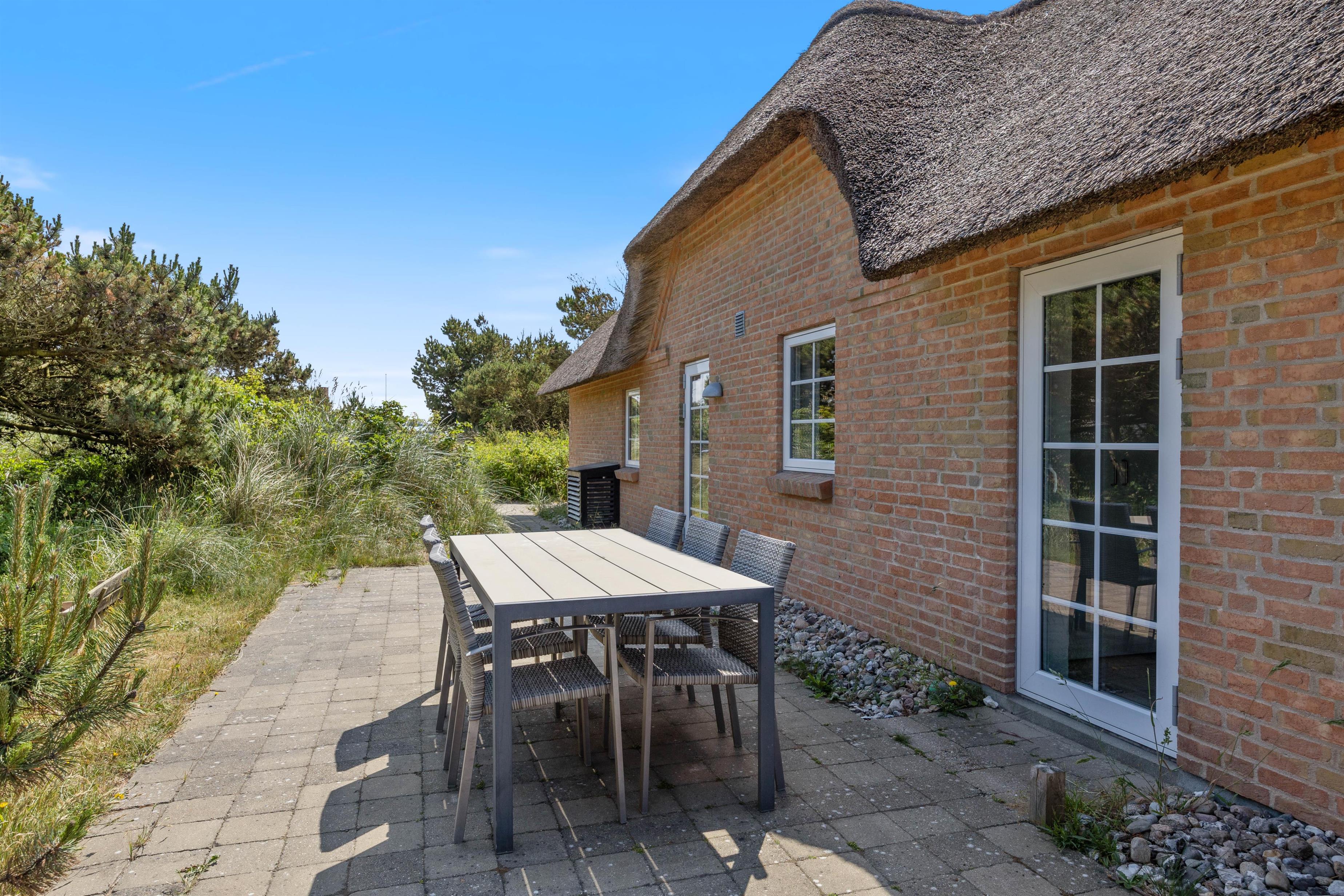 På solrige dage kan I slænge jer i havemøblerne på en af de dejlige terrasser der omgiver huset. For de mindste er der også gynger og sandkasse, som helt sikkert vil være et hit. På den ene terrasse finder I også udendørsspaen, der har plads til 6 personer. Eller hvad med et forfriskende skyl under udebruseren? Hvor I kan skylle sandet af efter en gåtur langs havet.