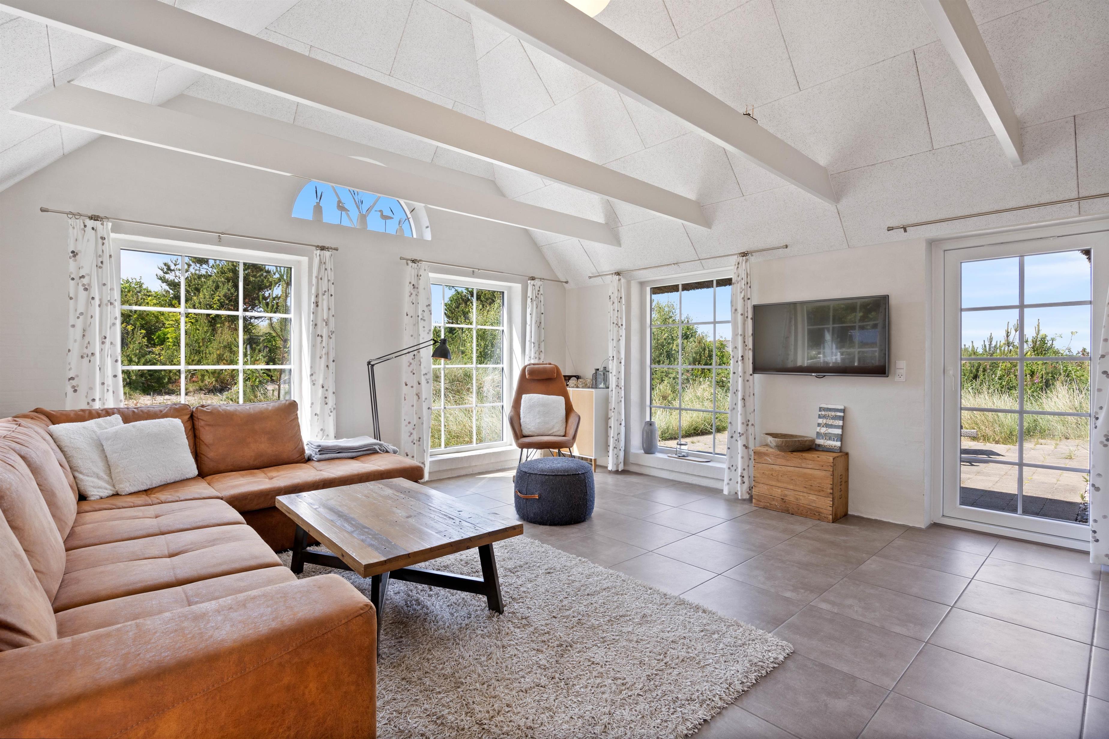 Leder I efter et sommerhus hvor hele familien kan holde ferie sammen? Så er sommerhuset på Jens Jensens Vej 46 i Søndervig lige det rigtige til jer! Sommerhuset har plads til 6 personer og jeres 2 hunde er også hjertelig velkommen her. Her er egen sauna samt både indendørs – og udendørsspa, som nok skal være et hit. På varme sommerdage tilbyder udebruseren en dejlig forfriskning, og rejser I med elbil er der mulighed for at lade direkte ved huset.