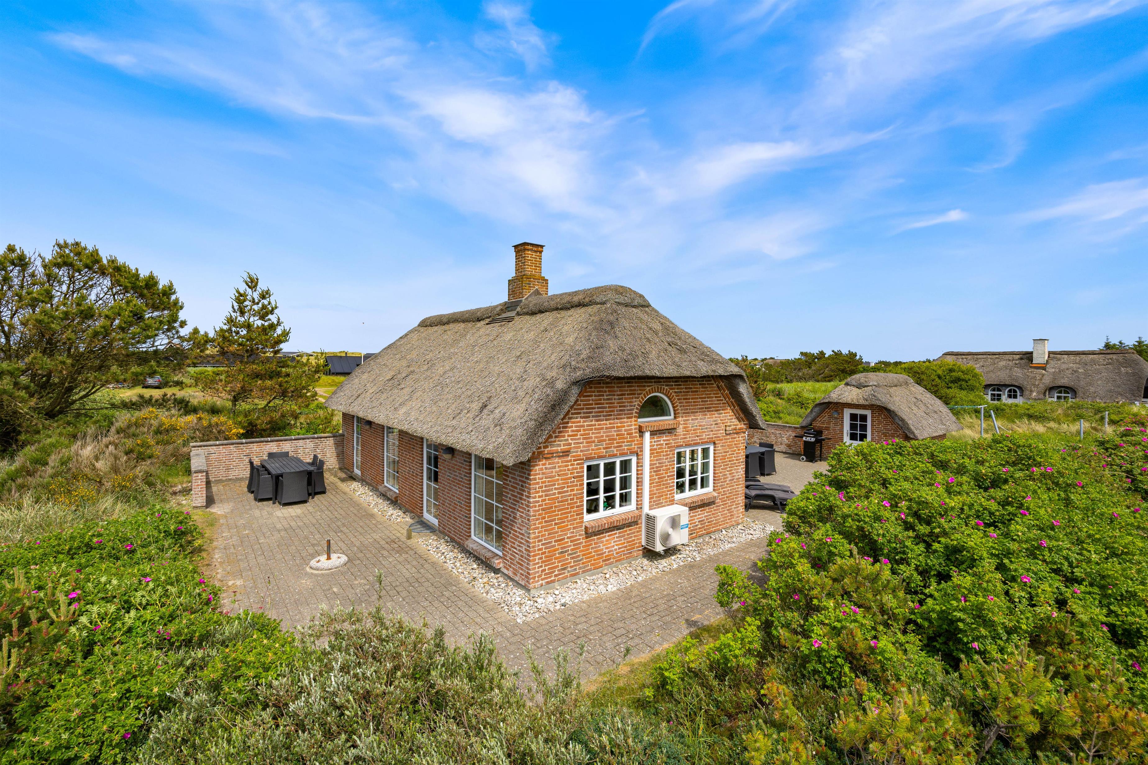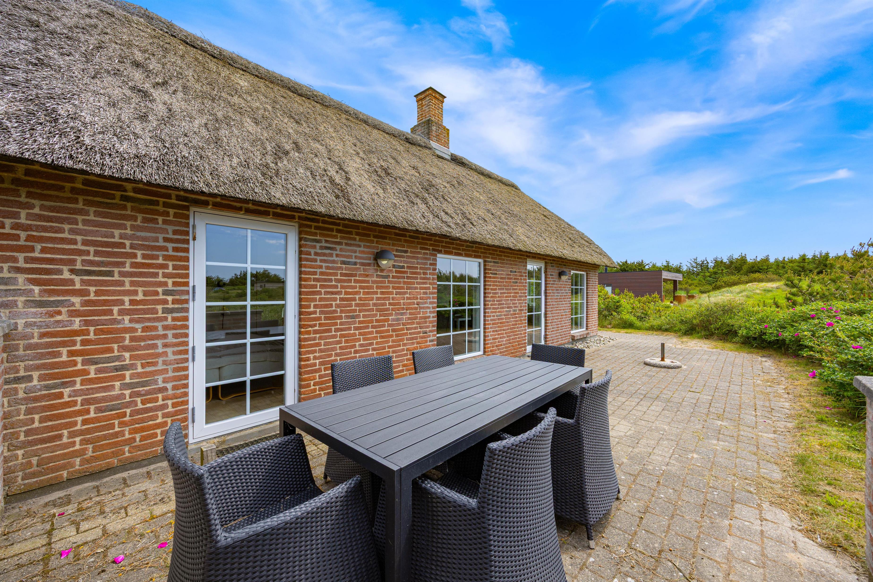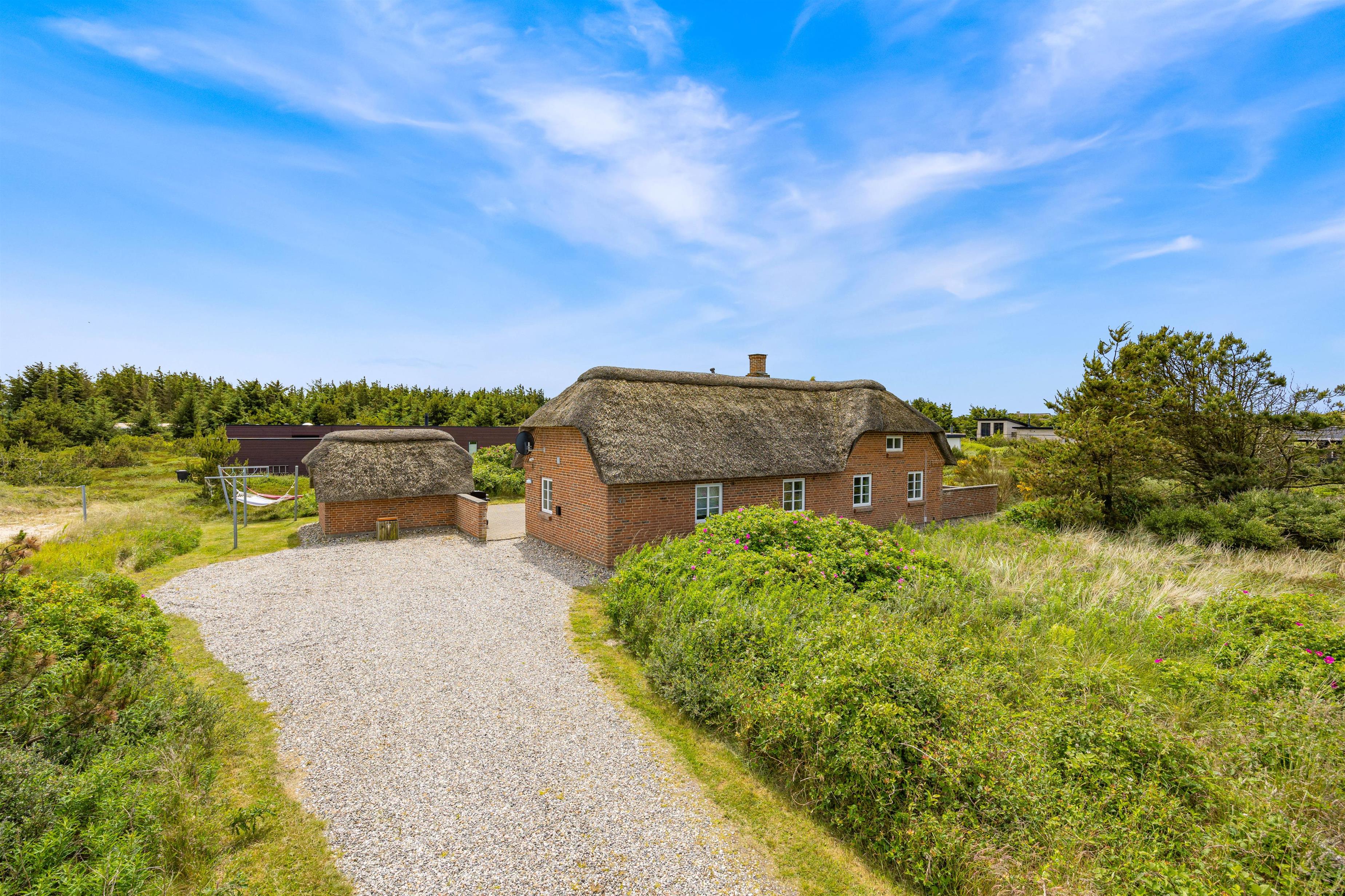 På Wolle Friks Vej 45 ved Søndervig ligger dette dejlige sommerhus med spabad og sauna. Huset er indbydende og velholdt og med stråtag. Et godt valg for en børnefamilie, der gerne vil bo centralt og tæt på byen men samtidig i naturskønne omgivelser. Rabat gives ved udlejning i to uger i ydersæsonen.