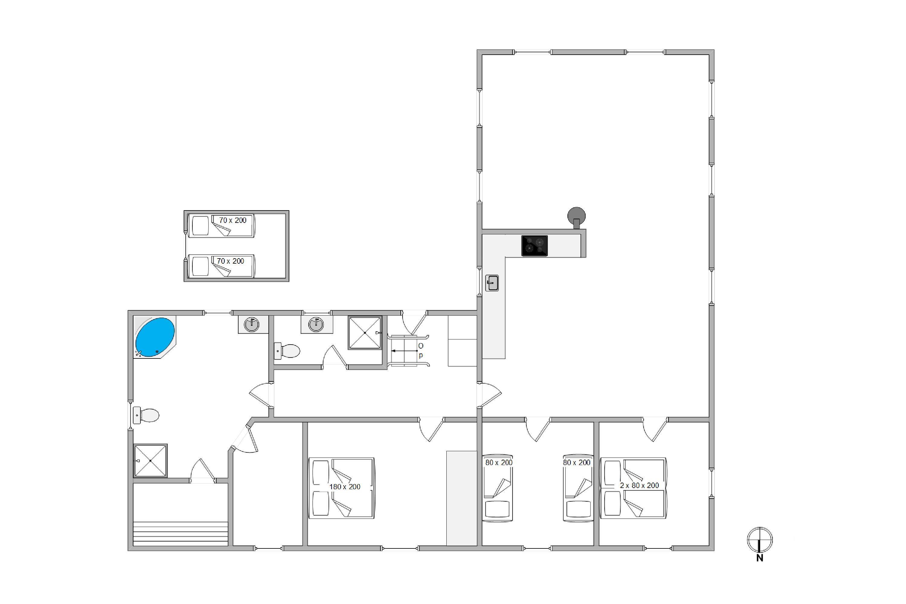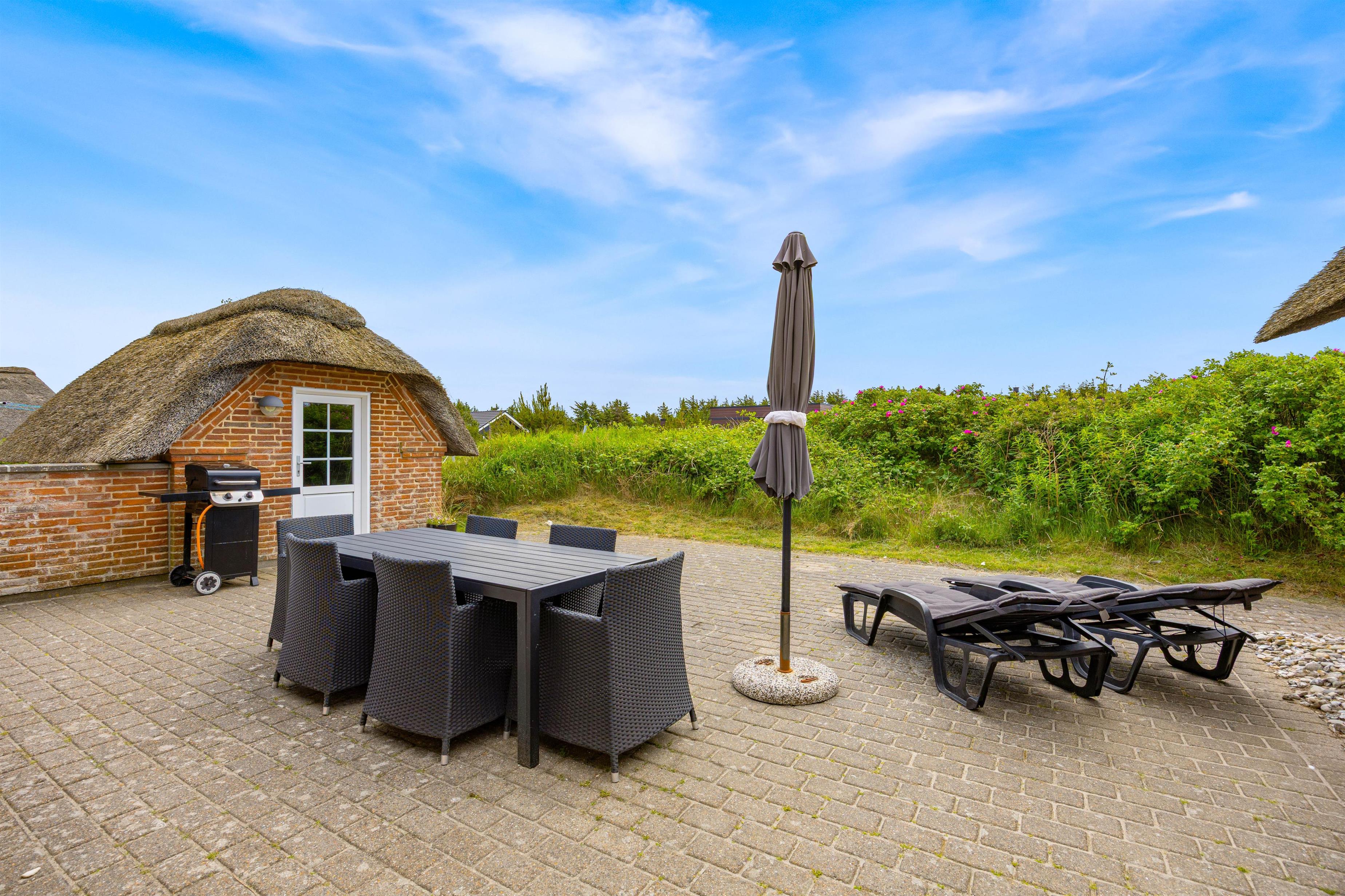 Sommerhusets wellness-funktioner er svære at slå. Med en privat sauna og en tømmespa er der rig mulighed for at koble af og forkæle dig selv efter en dag med oplevelser. Den afskærmede terrasse inviterer til udendørs hygge, måltider under åben himmel eller blot en stille stund med en bog i hånden. Naturgrunden giver en følelse af frihed og en forbindelse til områdets naturlige skønhed, mens den korte afstand på 650 meter til havet sikrer, at I altid kan nyde en frisk gåtur langs kysten.