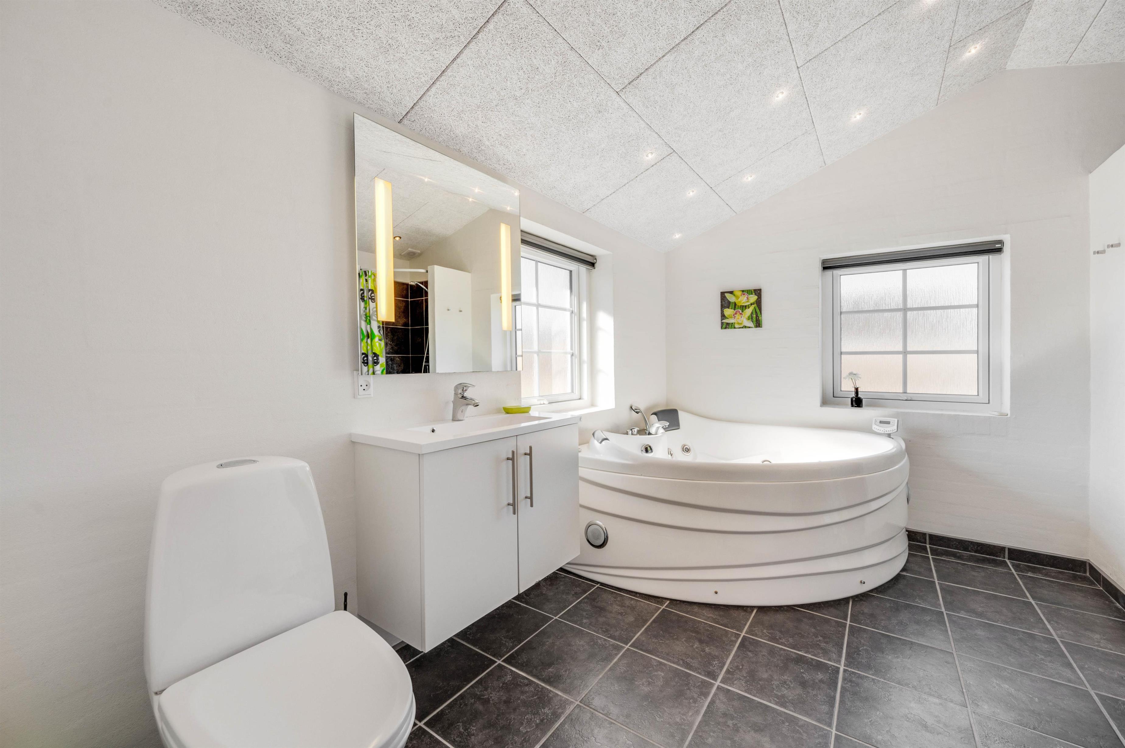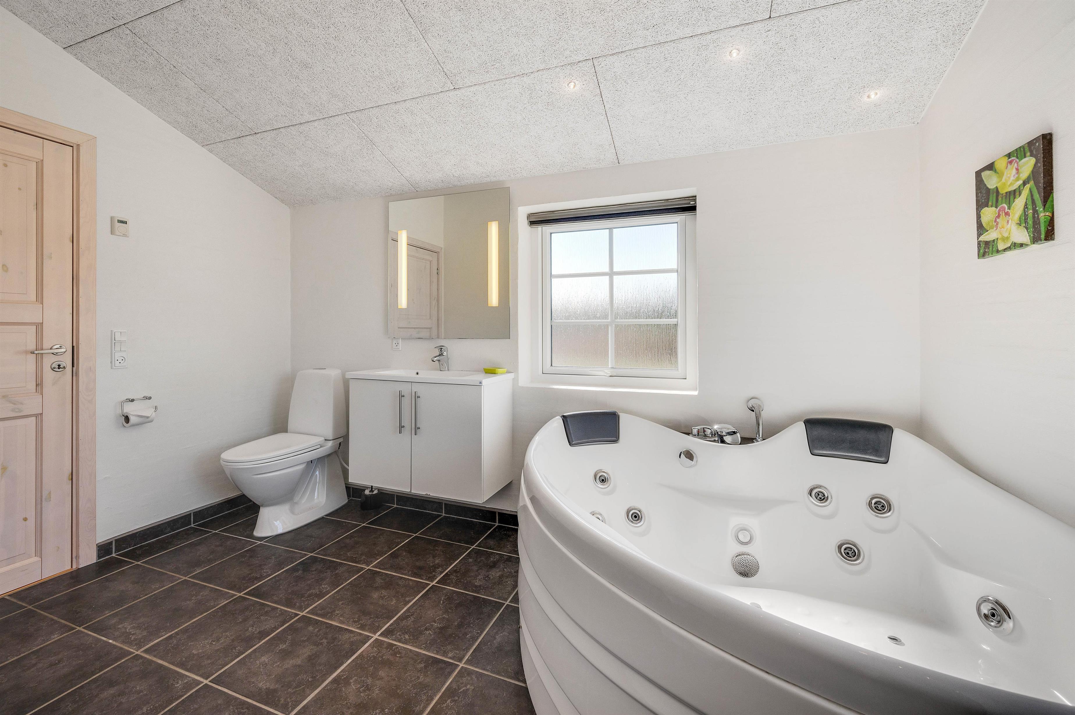I husets største badeværelse er der nemlig et dejligt spabad, hvor I kan læne jer tilbage og nyde de varme bobler. Men ikke nok med det. Fra badeværelset er der også adgang til en dejlig sauna. En tur i saunaen er ekstra velgørende efter en lang dag ved havet, så I kan blive varmet igennem fra inderst til yderst.