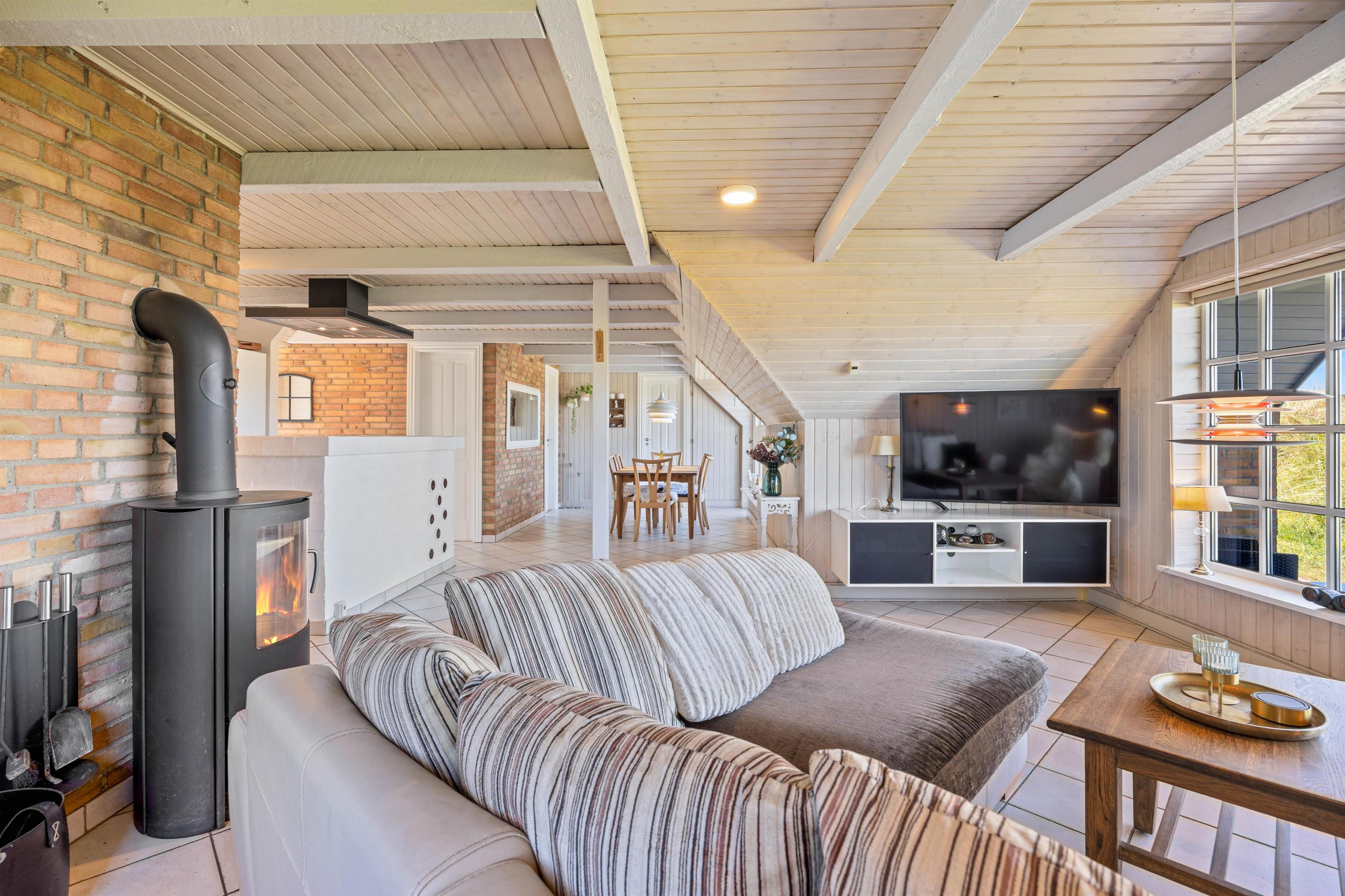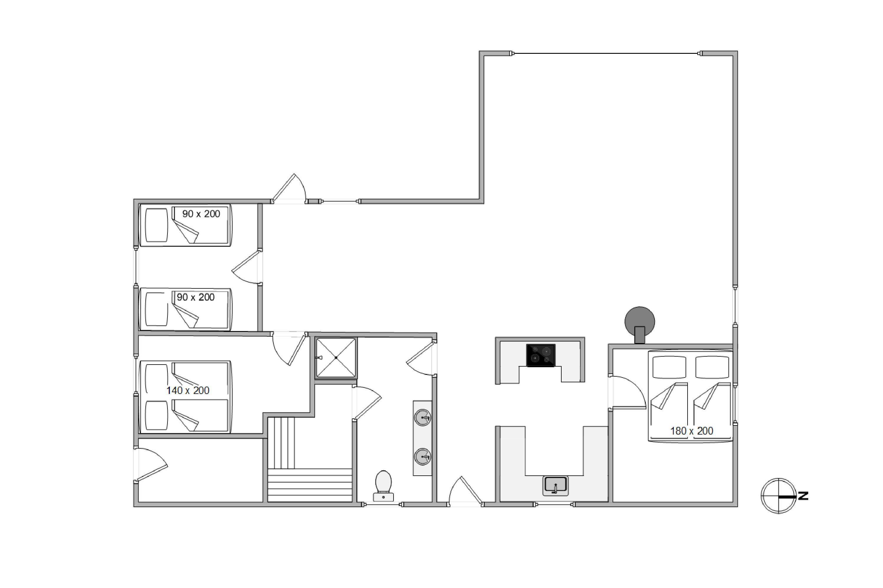 Indenfor er huset indrettet med et flot og personligt aftryk. De synlige loftsbjælker er holdt i en mørk farve, som giver et flot modspil til husets ellers moderne indretning. Det søger for en dejlig varme, der indbyder til hygge og rigtig feriestemning. Huset har desuden på et veludstyret køkken, 3 lyse soverum og et dejligt badeværelse, som er blevet totalrenoveret i 2021. Her kan I nyde den skønne sauna og lade batterierne op efter en lang dag i den friske luft.