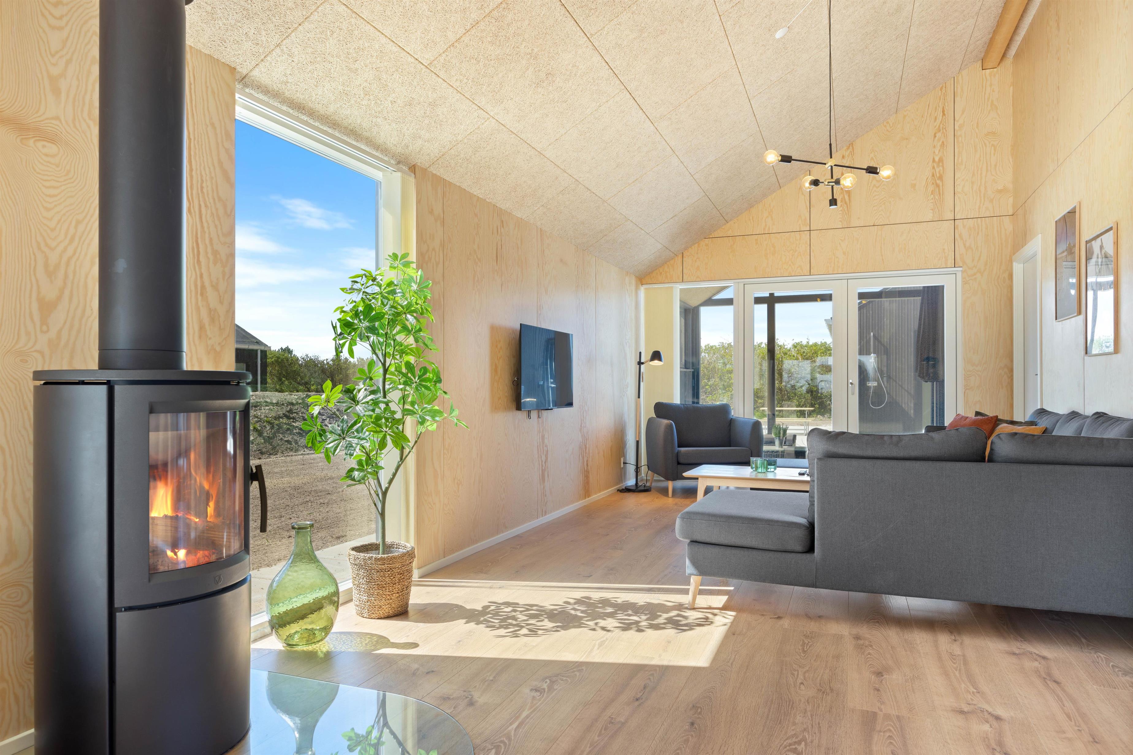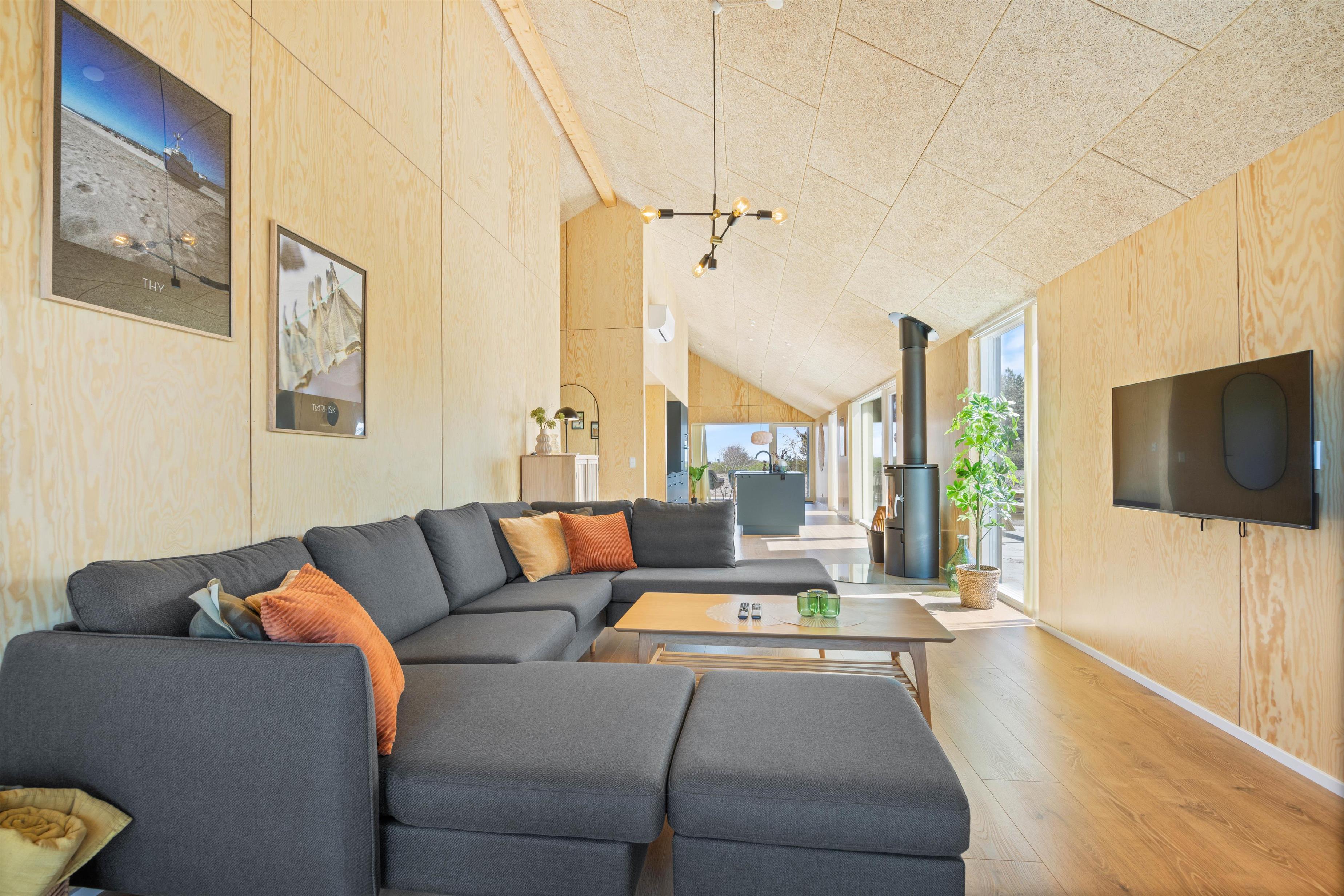 Det store alrum udgør jeres samlingspunkt på ferien, hvor I kan samle hele jeres ferieflok til hyggelige stunder med madlavning, spil og film. Imens knitrer brændeovnen i baggrunden og fuldender feriestemningen.