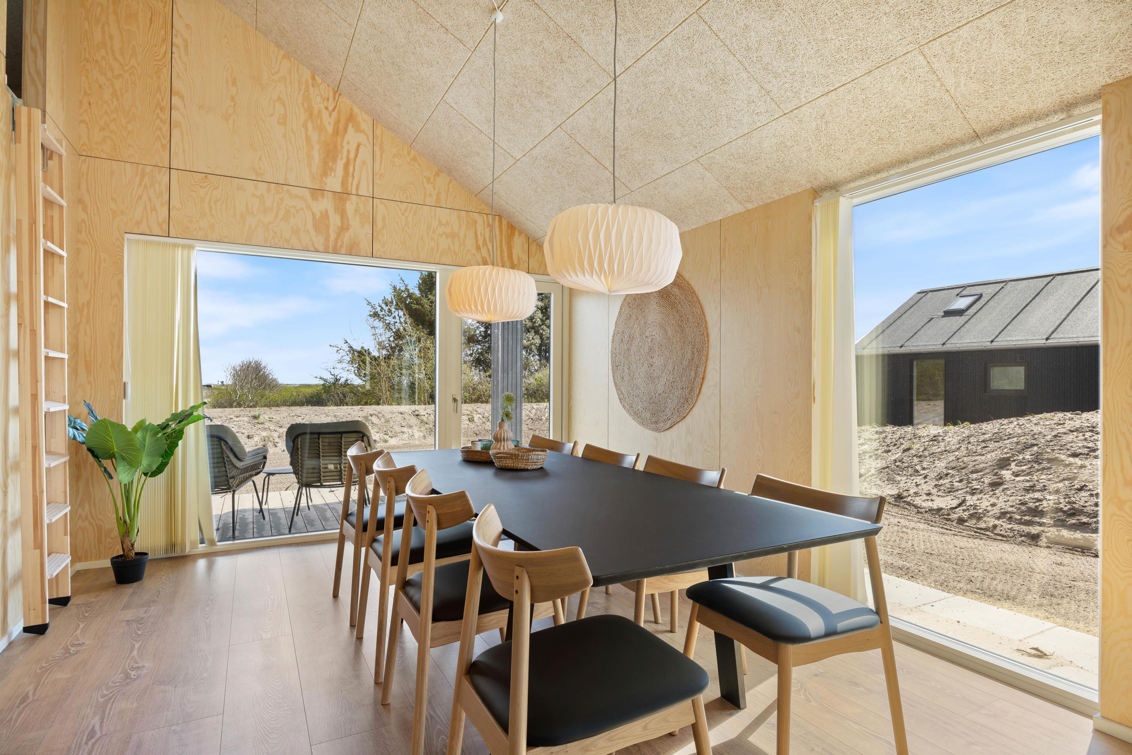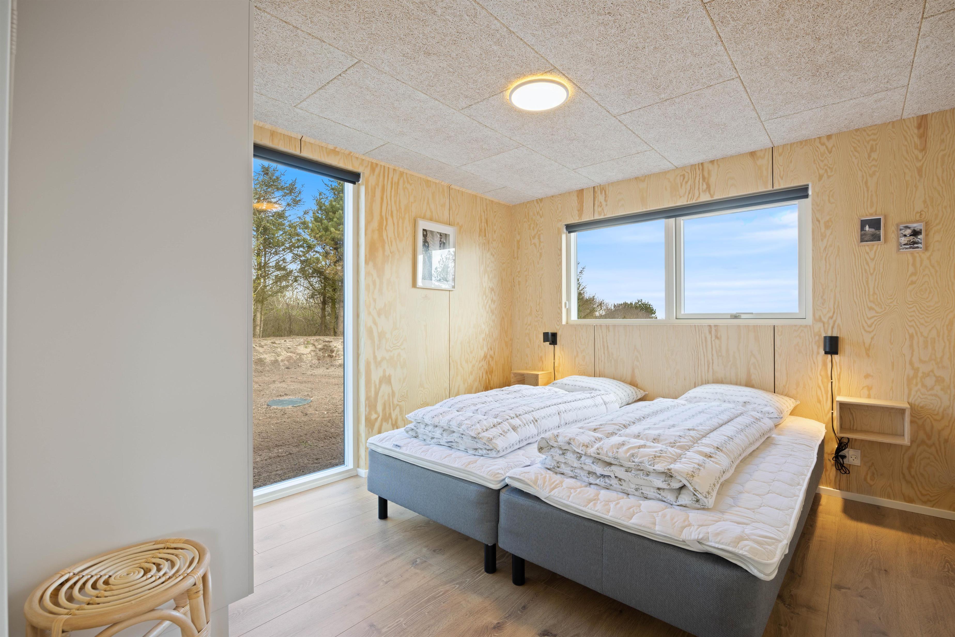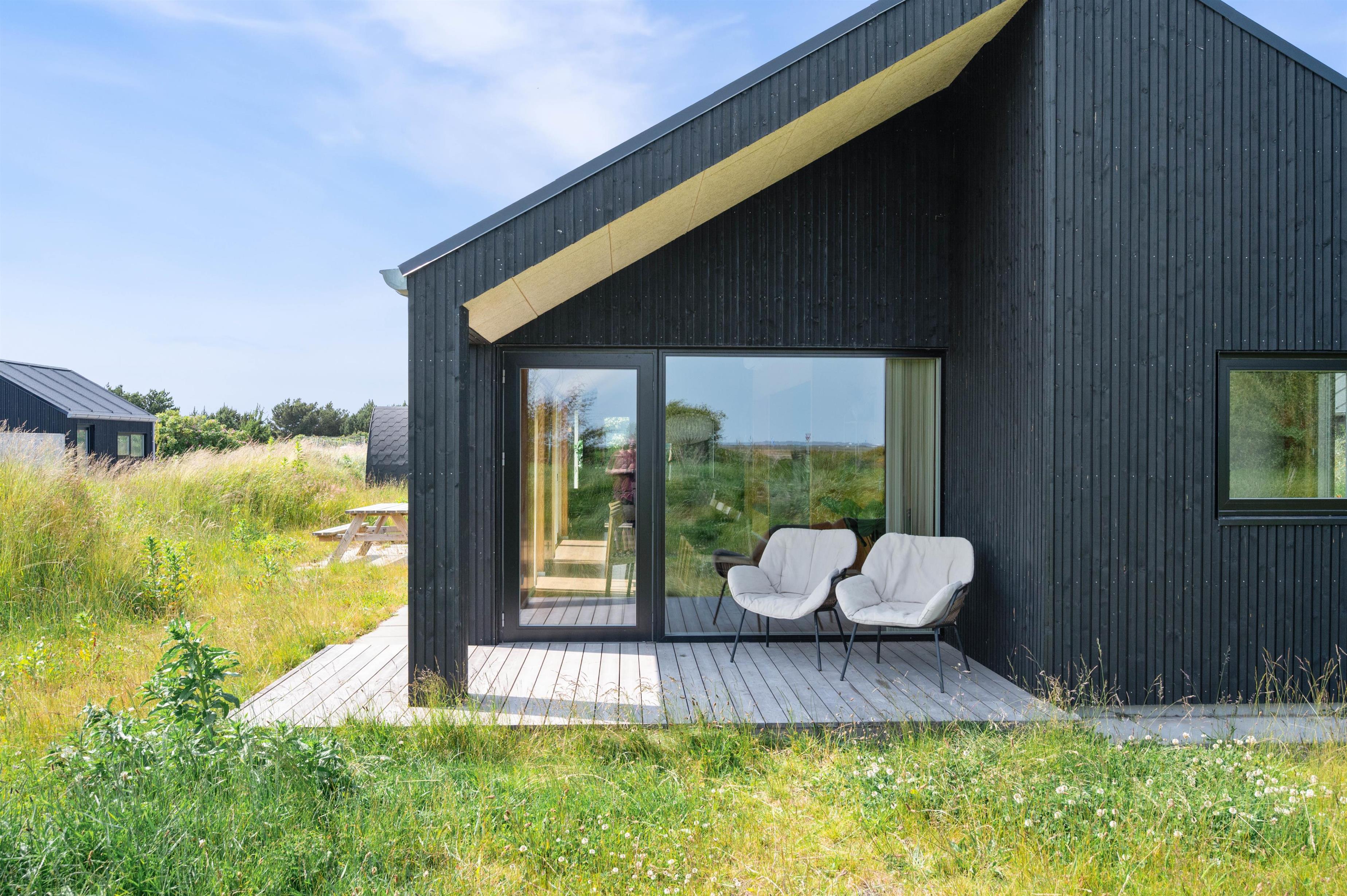I sommerhuset på P Snejkers Vej 21B i Søndervig vil I føle jer hjemme, allerede når I træder indenfor. Det flotte sommerhus, der er bygget i 2023, rummer nemlig en moderne indretning, der bliver komplimenteret af det skønne lysindfald.