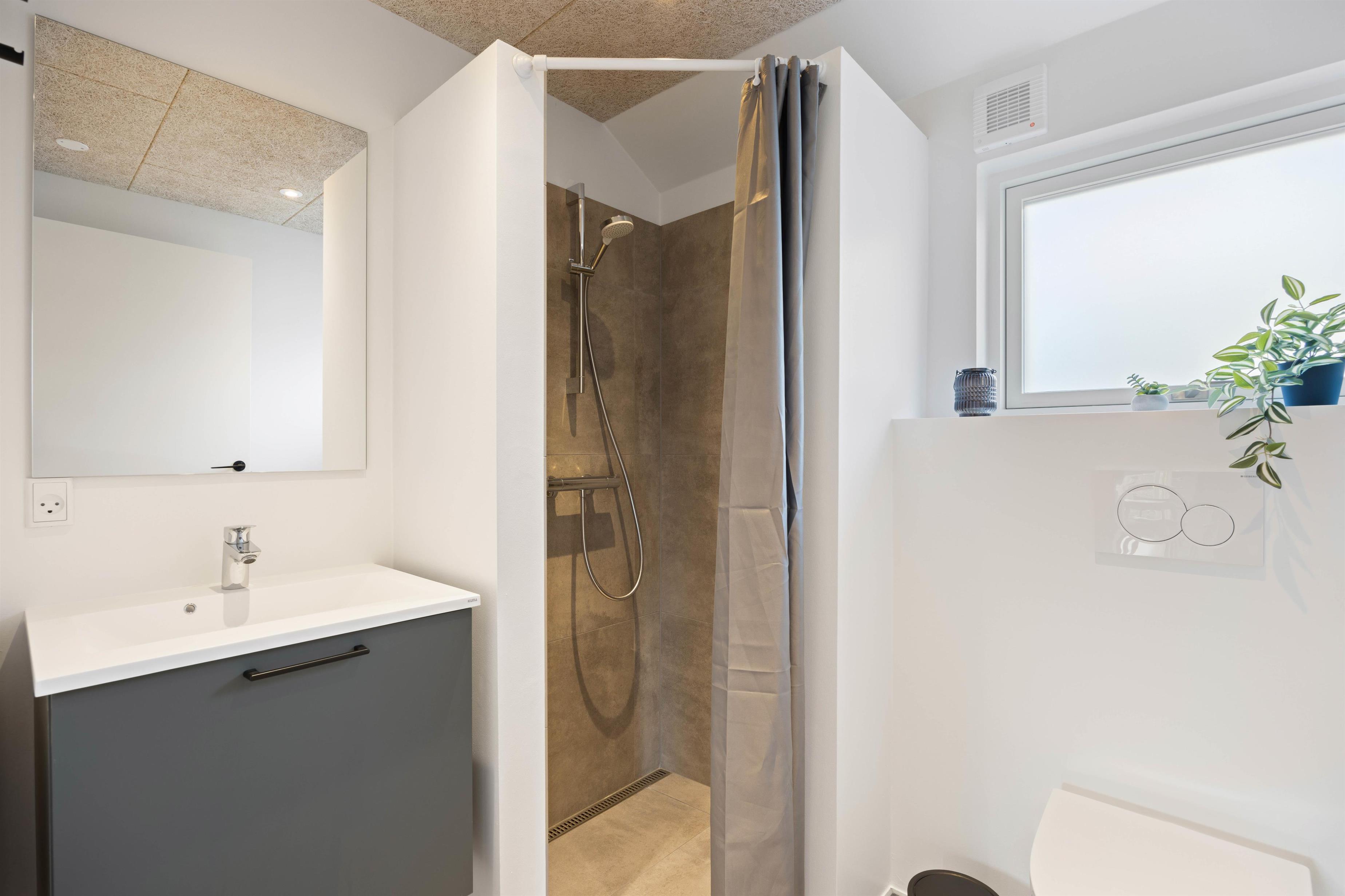 Der er hele 2 badeværelser i feriehuset, og derfor kan I starte jeres feriedage helt uden at skulle stå i kø. Begge badeværelser er udstyret med gulvvarme, og derfor slipper I for kolde fødder fra morgenstunden.