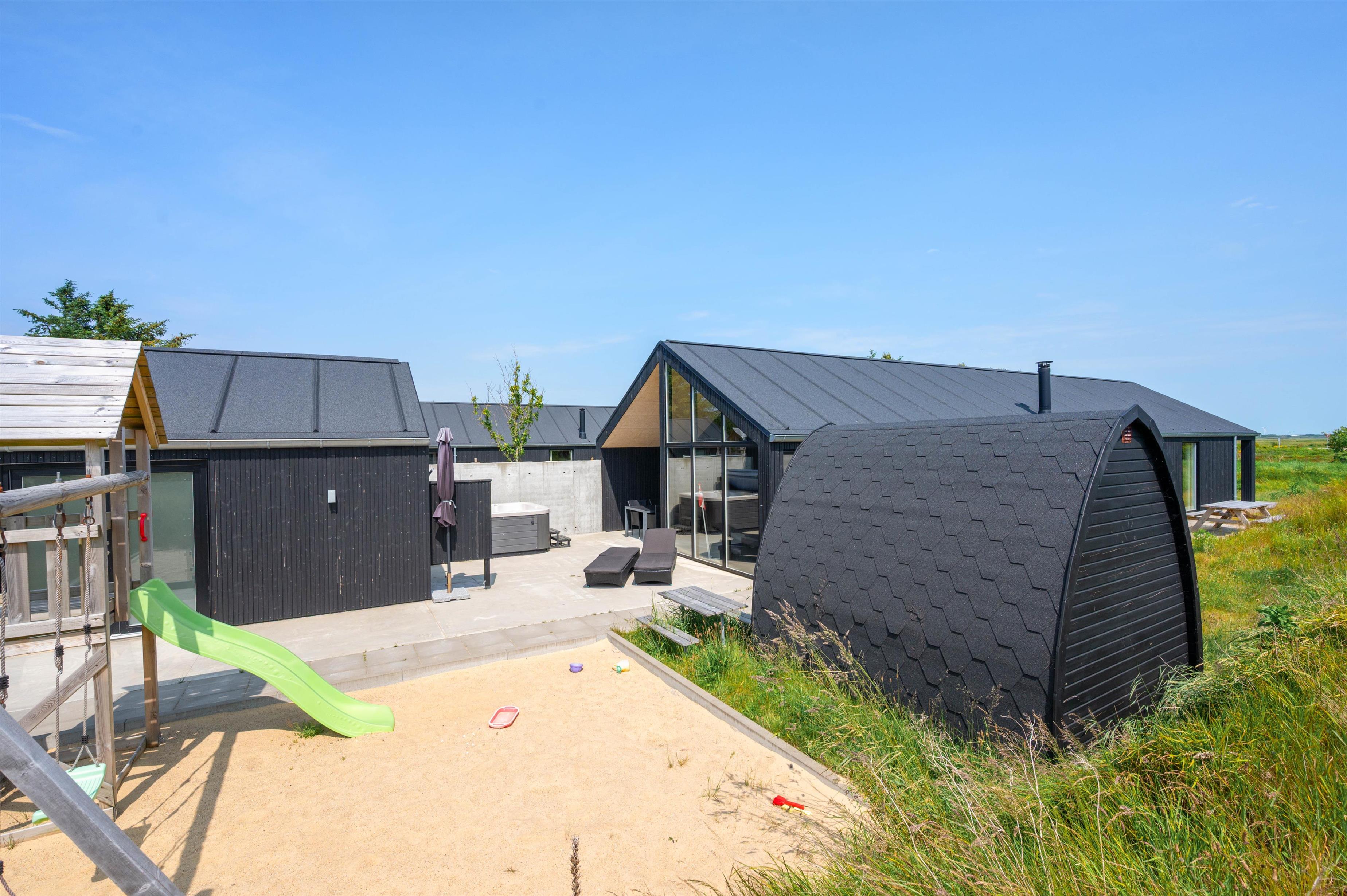 På terrassen venter jer også udespaen. I udespaen kan I nyde afslapning under åben himmel i det boblende vand. I bør desuden også prøve en tur i udespaen om aftenen, hvor I kan nyde masser af afslapning under stjernerne. Er I til ekstra afslapning, har I mulighed for at benytte jer af feriehusets udesauna.