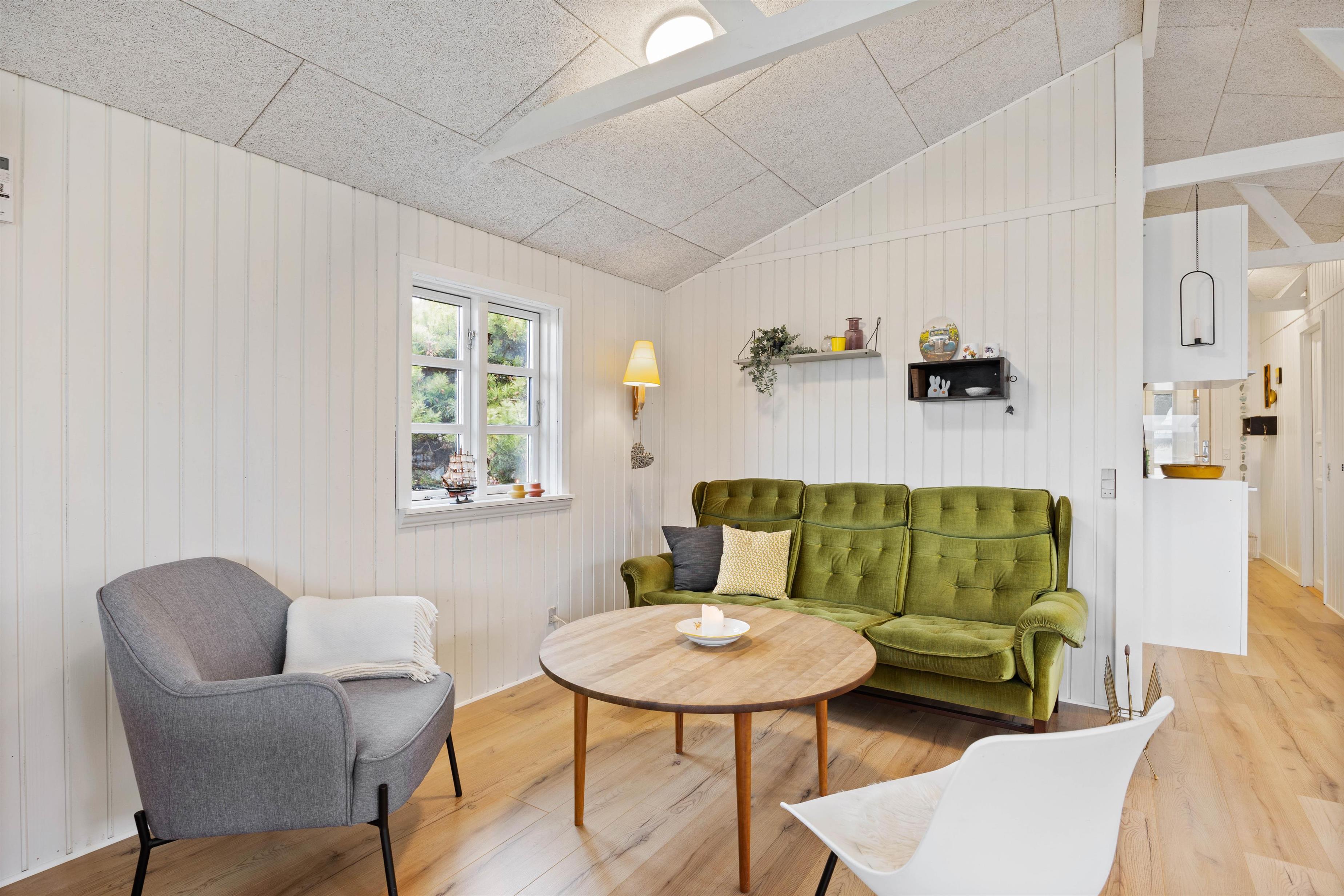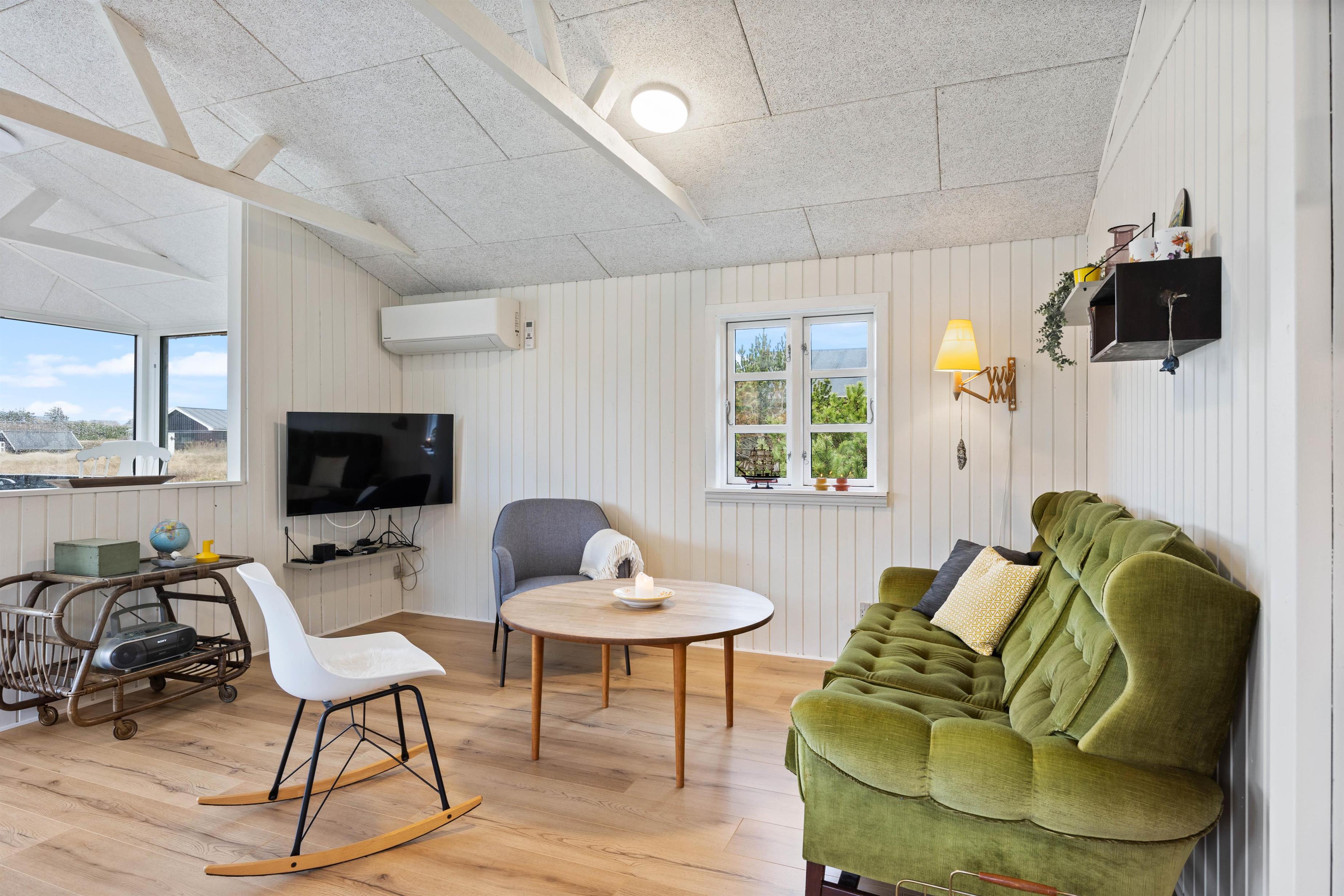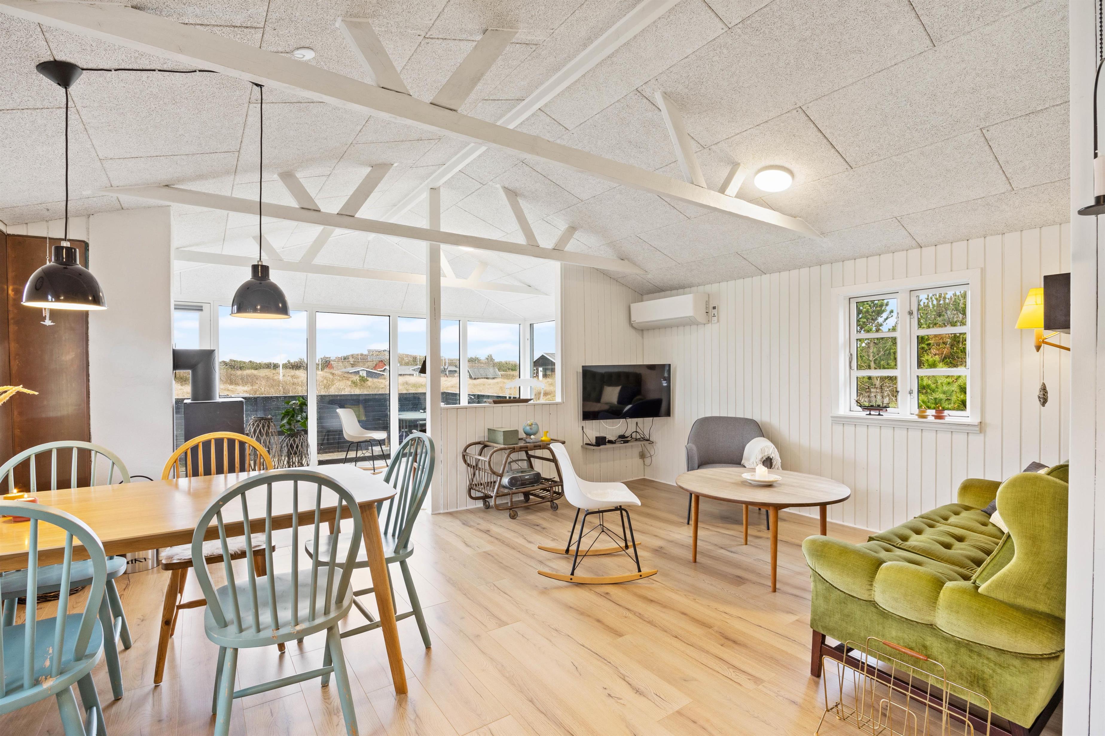 I sommerhuset på Molsvej 28 udgør alrummet hjertet og samlingspunktet, hvor I kan tilbringe og nyde mange hyggelige timer og stunder sammen i løbet af ferien. Her har I både mulighed for at lave mad sammen, spille spil ved bordet og samles i sofaen til film i Smart tv’et.