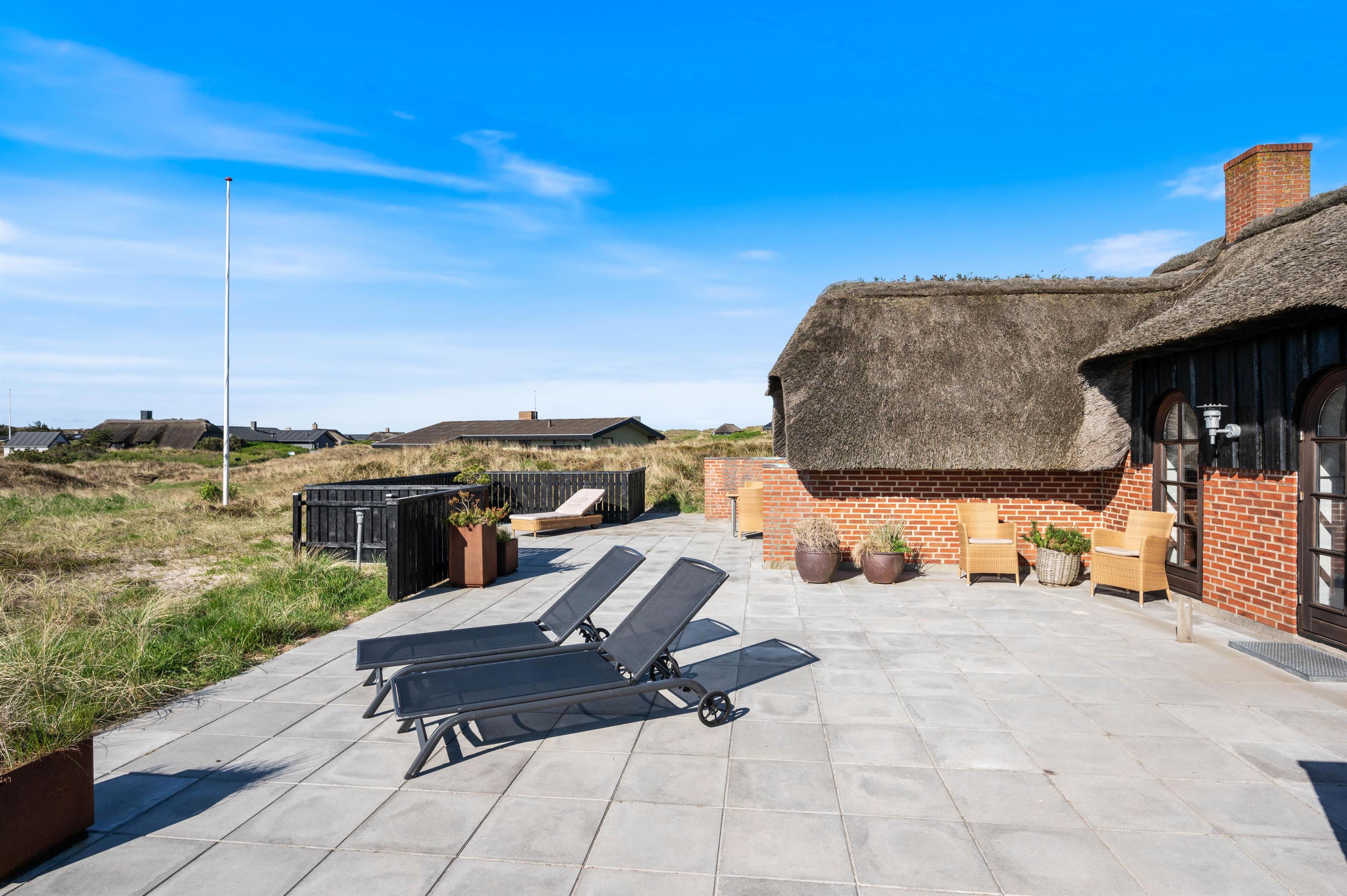 Midt i Søndervigs skønne klitlandskab, kun en gåtur væk fra både Vesterhavet og centrum, ligger dette hyggelige stråtagshus på Nordsøvej 318 til fem personer. Indretningen oser af hygge med flot interiør, brændeovn og helt nyt køkken og badeværelse, og der er masser af terrasseplads, så I kan nyde solen og den friske luft.