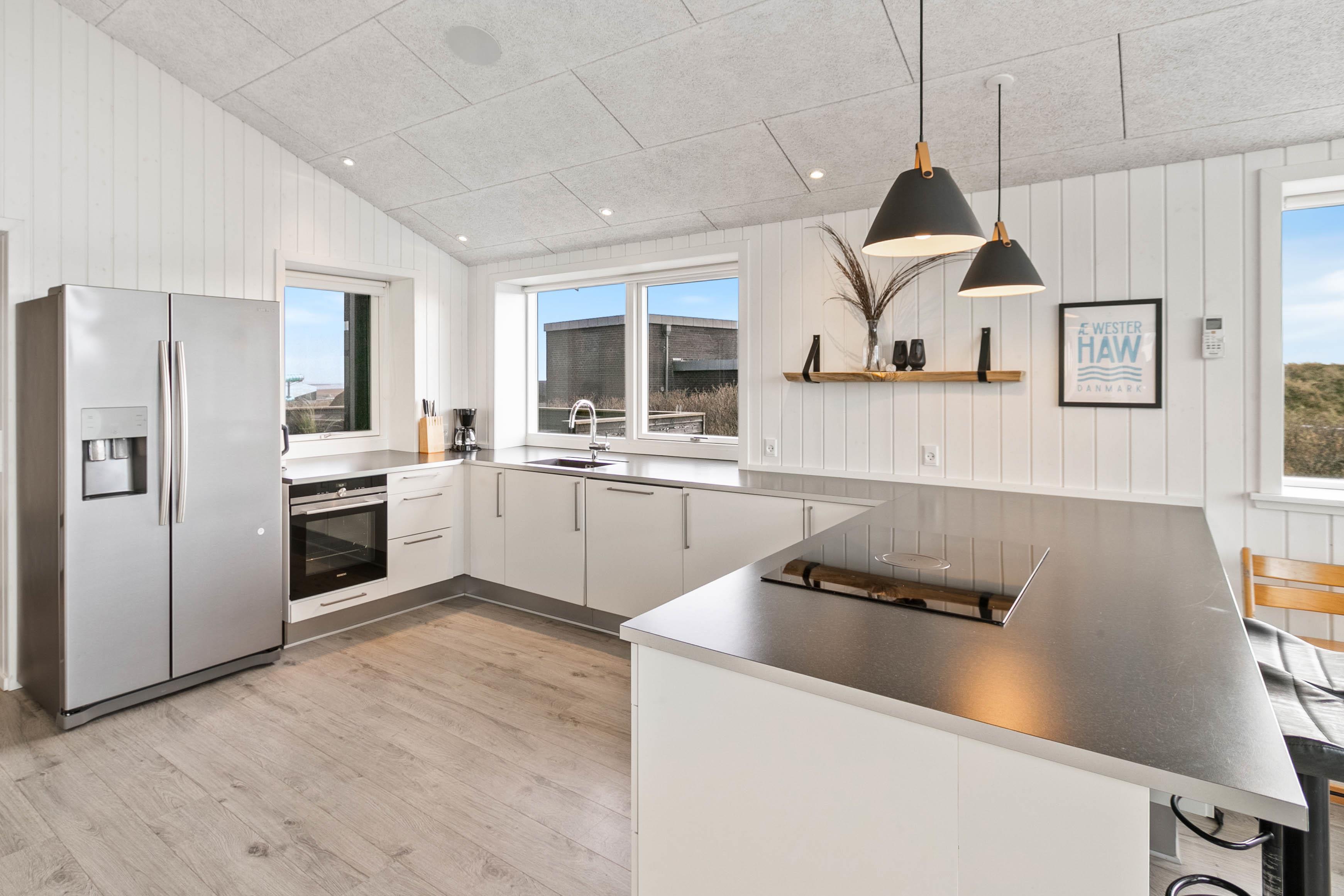 Store vinduer åbner det rummelige feriehjem endnu mere op og lukker den smukke natur indenfor, så I ligegyldigt vind og vejr kan nyde det unikke klitlandskab og den fantastiske udsigt.