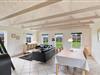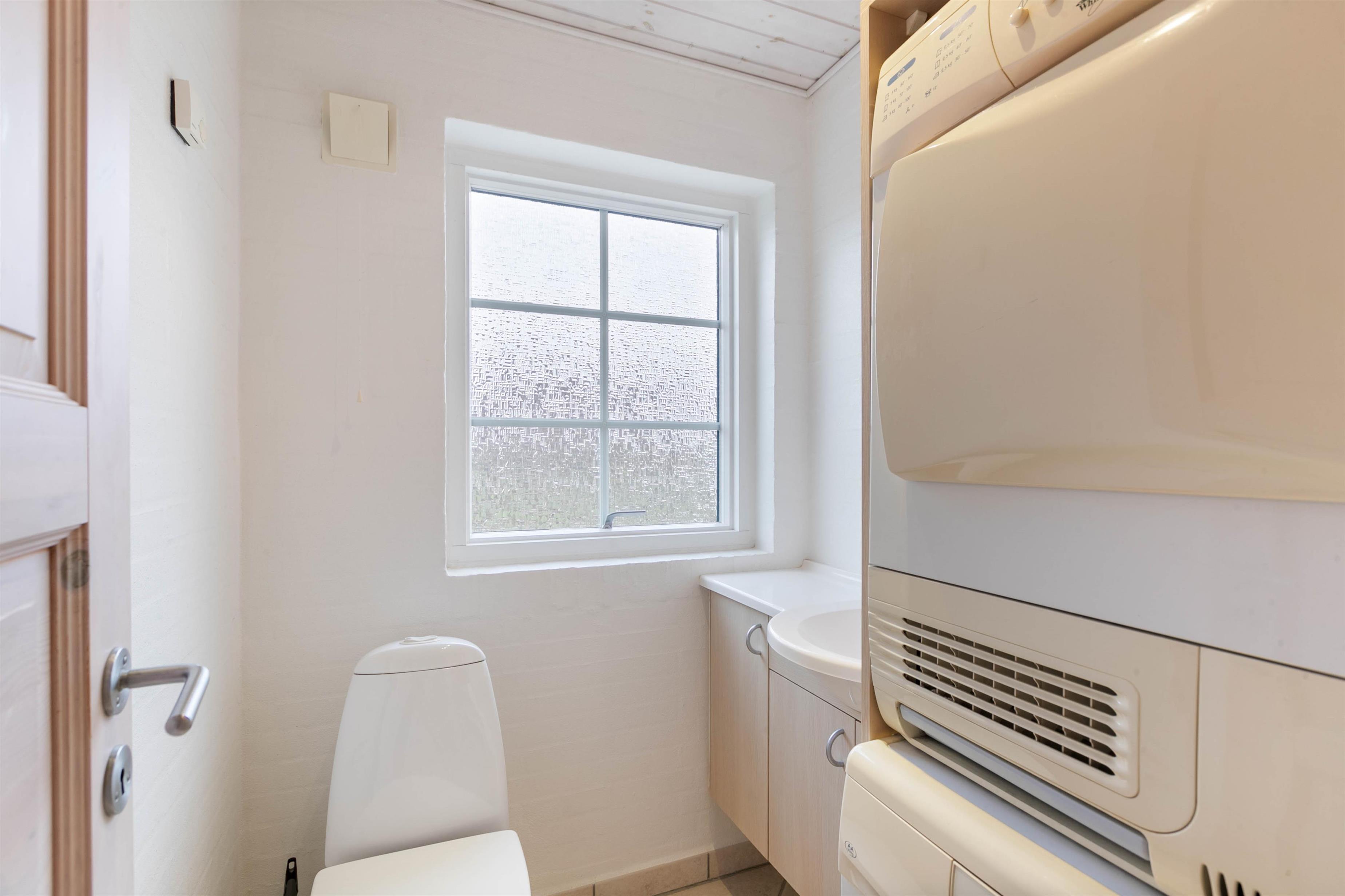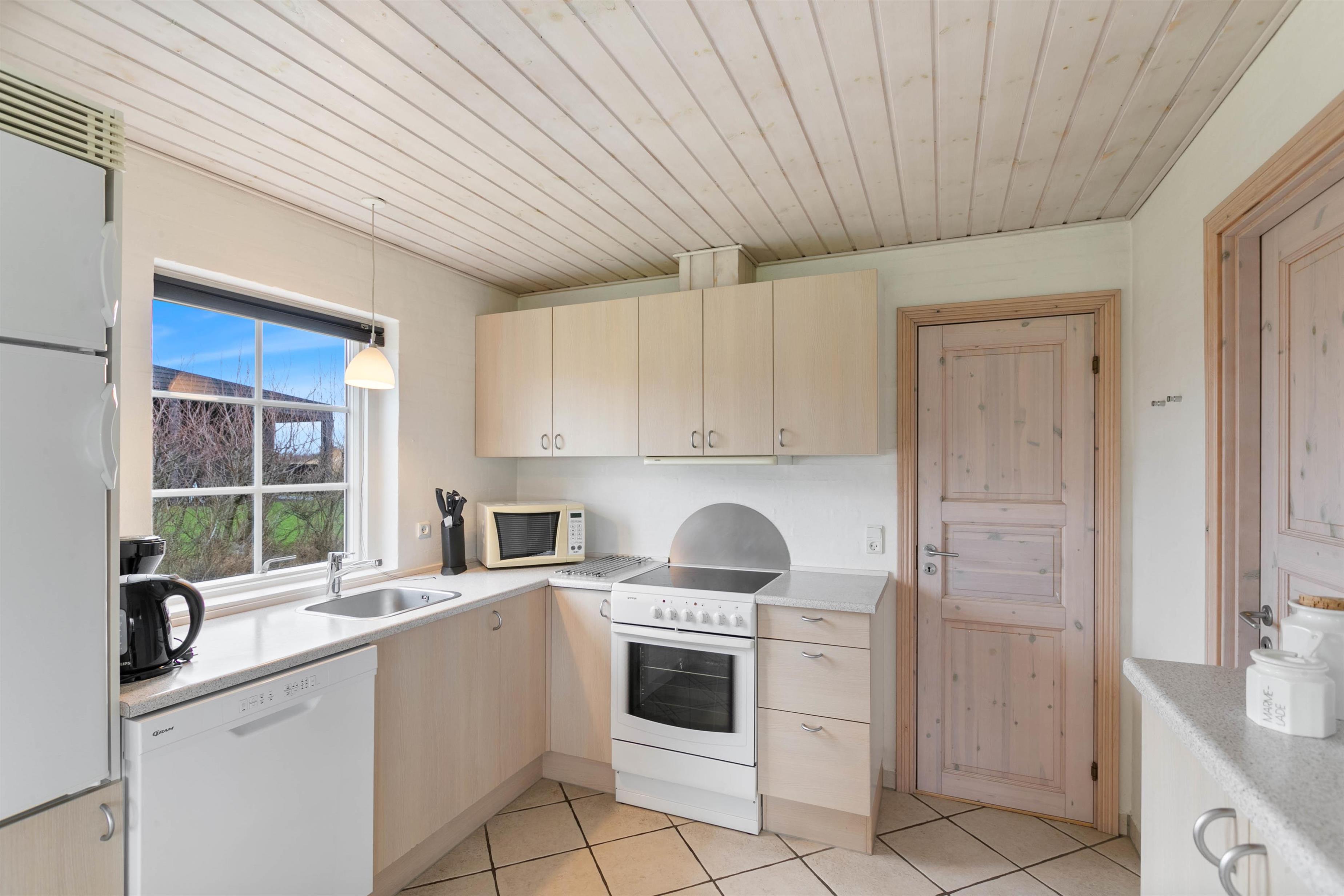 Dette sommerhus er yderst velholdt, så det forbliver lyst og indbydende, hvor både familier og par har lyst til at tilbringe deres ferier. Stue, køkken og spisestue har man i et stort rum i hjertet af huset. Her er der indlagt gulvarme og installeret en hyggelig brændeovn. Så dette er et naturligt samlingspunkt, hvor familien kan tilbringe tid sammen og virkelig slappe af. En god detalje ved dette rum, er helt klar loftet som går til kip, og der her er synlige træbjælker. De er med til at give rummet en god rummelighed, der er med til at bidrage til, at I kan slappe af med en god fornemmelse i maven.