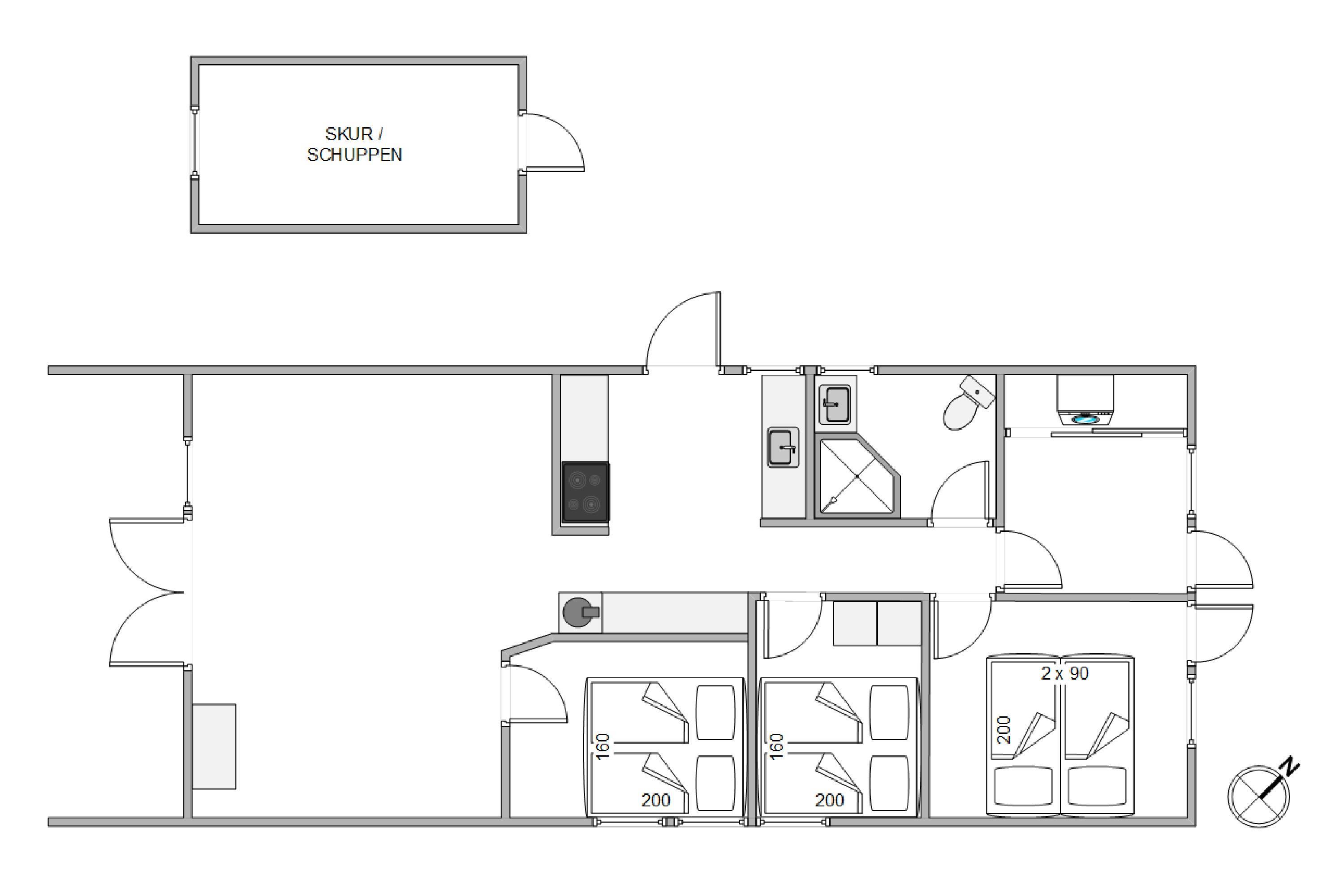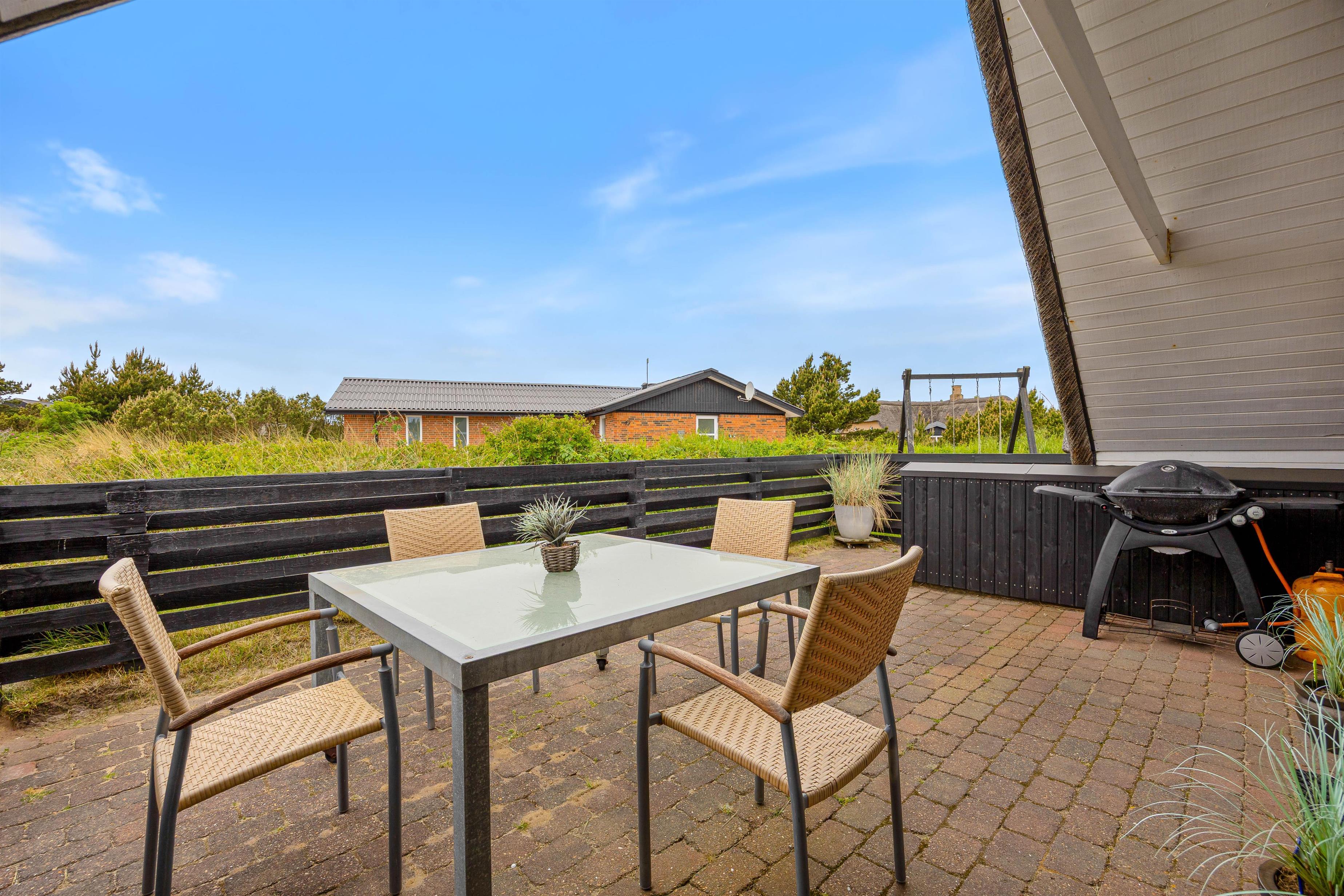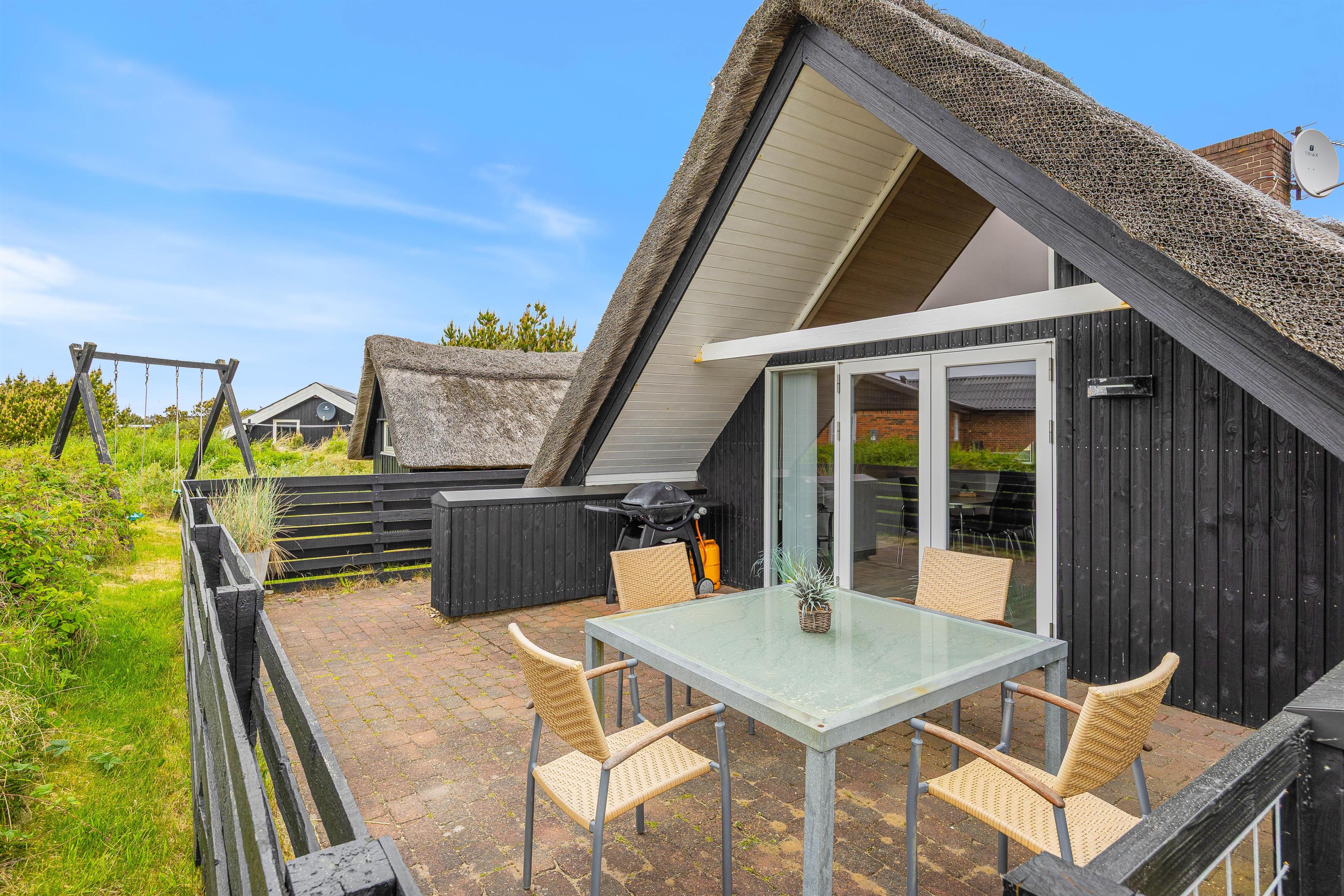 På sommerhusets nord-østlige side har I en mindre terrasse. Denne terrasse er perfekt til dagens første kop kaffe, mens solen står op, eller hvis I skulle trænge til en stille stund alene. I haven er der et gyngestativ, der helt sikkert vil blive et hit blandt børnene.