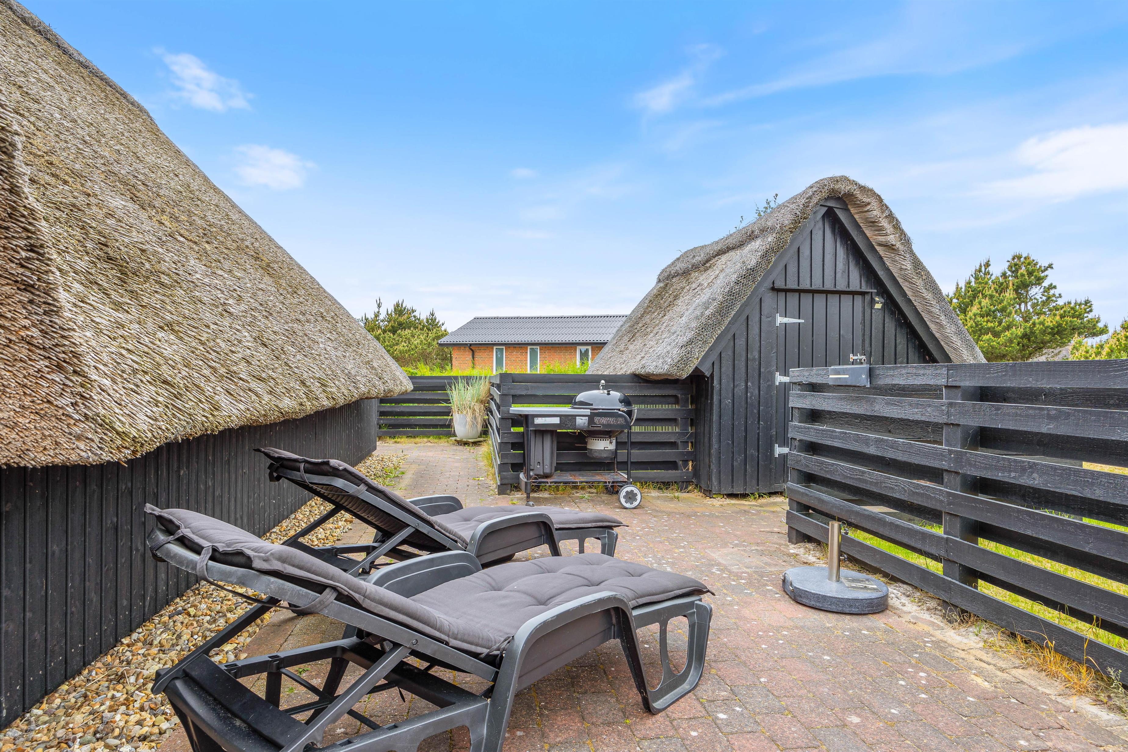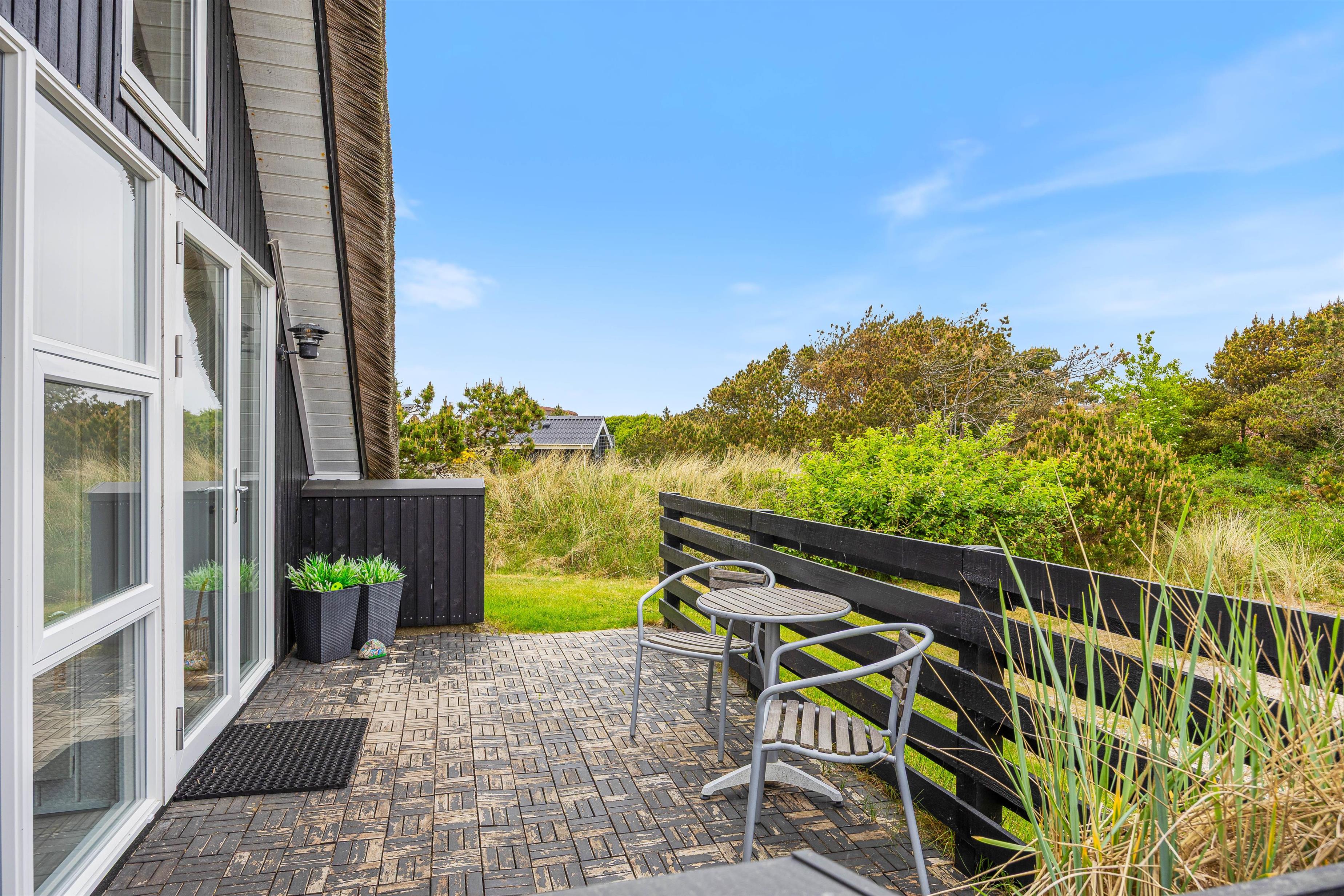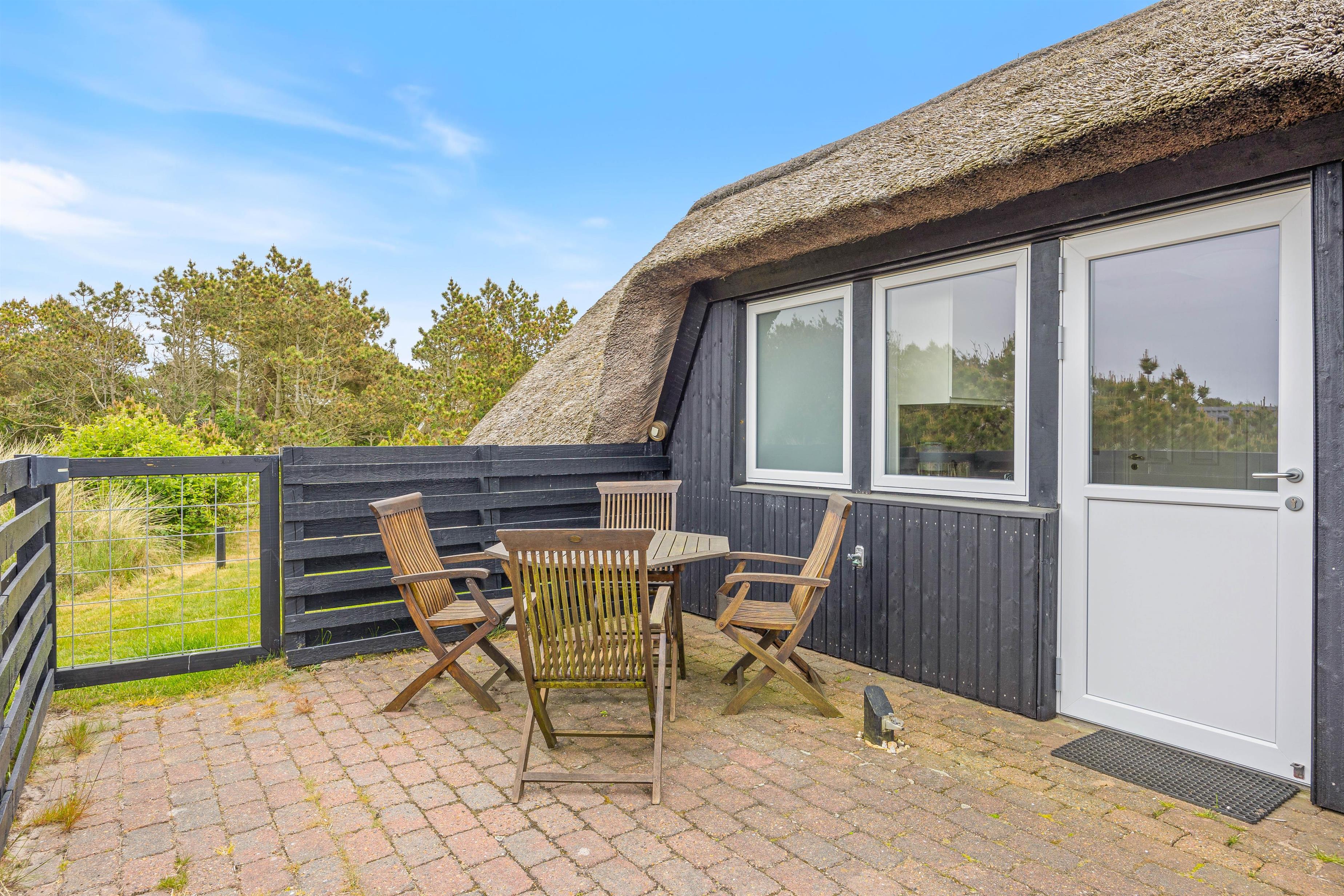Til sommerhuset er der 2 gode terrasser. Den ene terrasse er en større en af slagsen. Den store terrasse er afskærmet og delvist overdækket, så her har I mulighed for at sidde i både ly og læ. Selvfølgelig kan I også nyde solen og dens varme stråler fra terrassen, hvor I har havemøbler og liggestole til rådighed. På den lukkede terrasse kan I trygt slappe af på liggestolene imens jeres børn og hund frit kan lege.