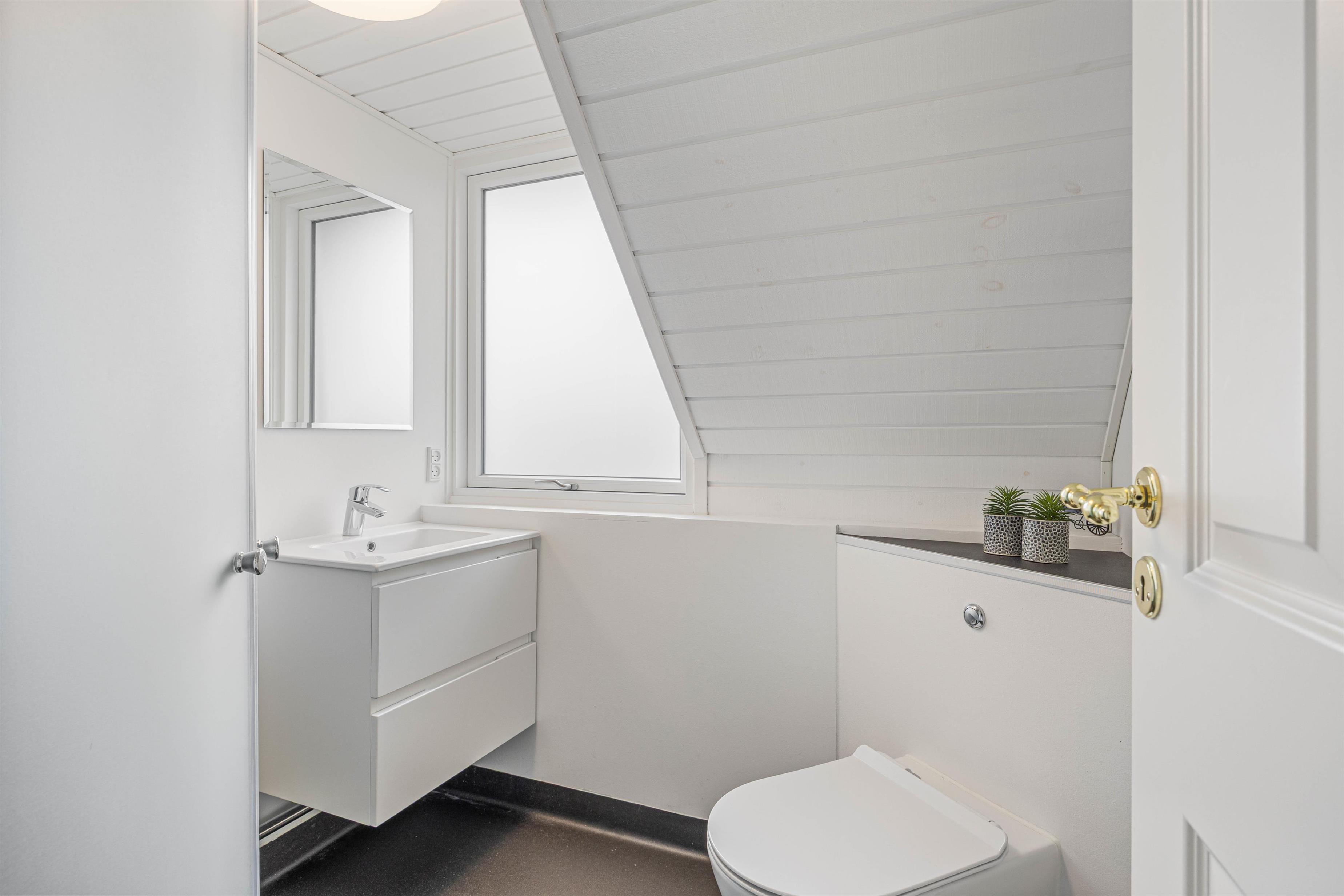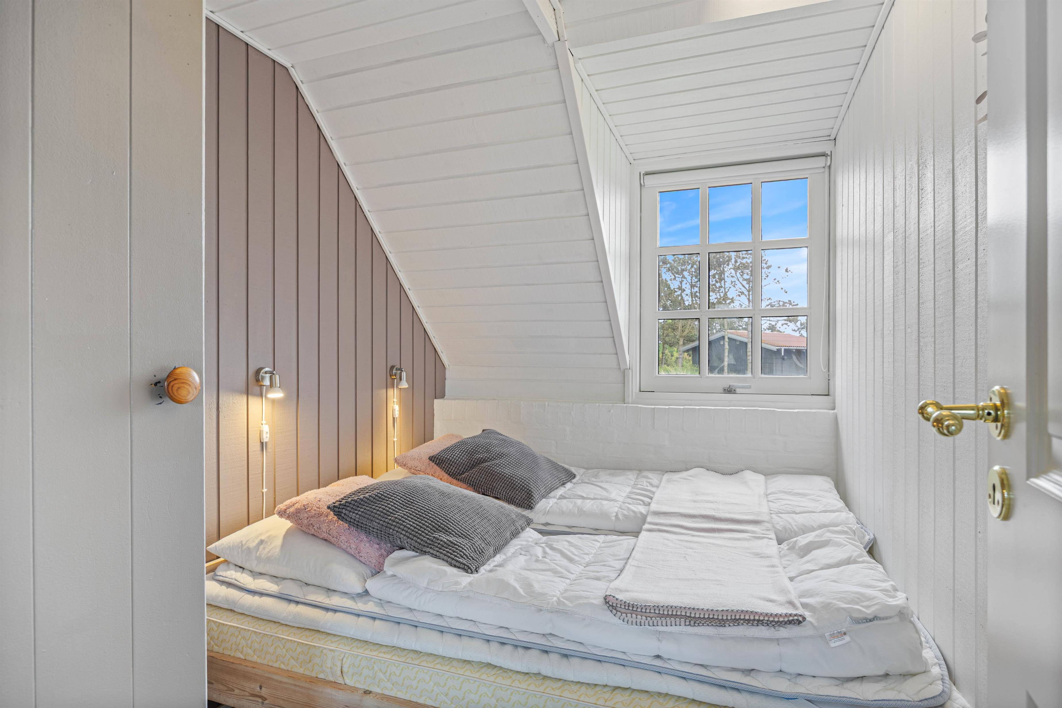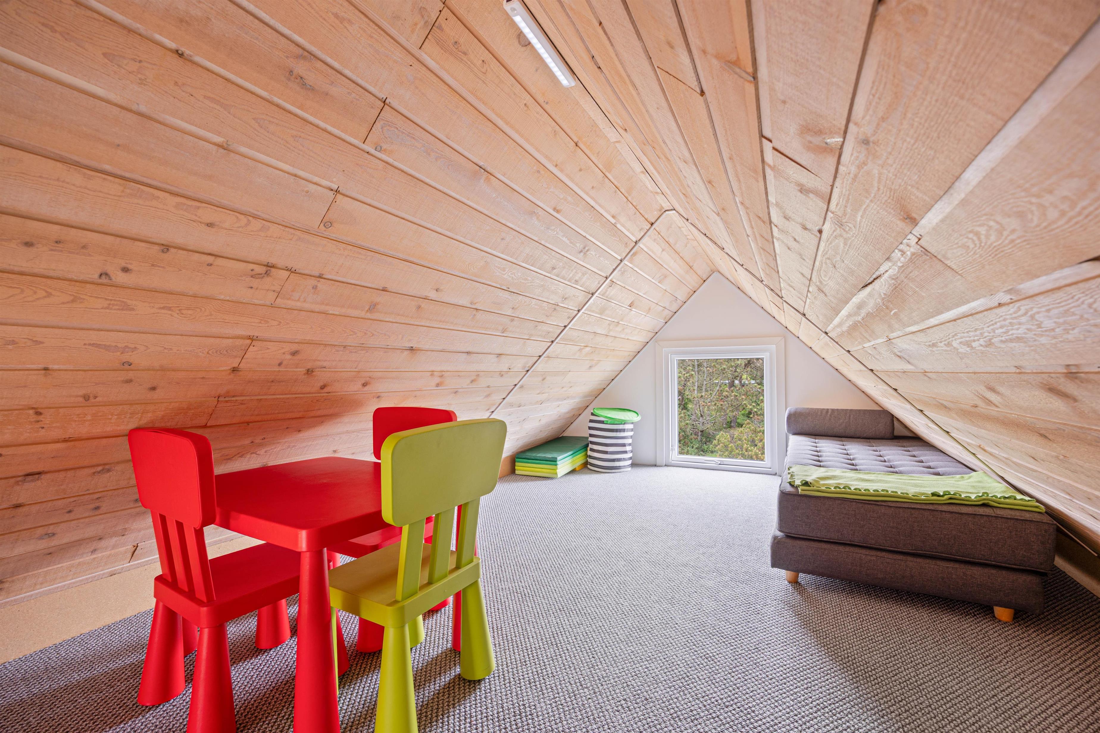 Foruden opholdsstuen er sommerhuset indrettet med 1 badeværelse (med gulvvarme), 3 soveværelser, en hems med en daybed, børnemøbler og legetøj. Vinduet på hemsen er desuden børnesikret. Derudover råder sommerhuset over en entre, hvor I har en vaskemaskine, der klarer tøjvasken. Sommerhuset bliver opvarmet af en energivenlig varmepumpe for lave omkostninger.
