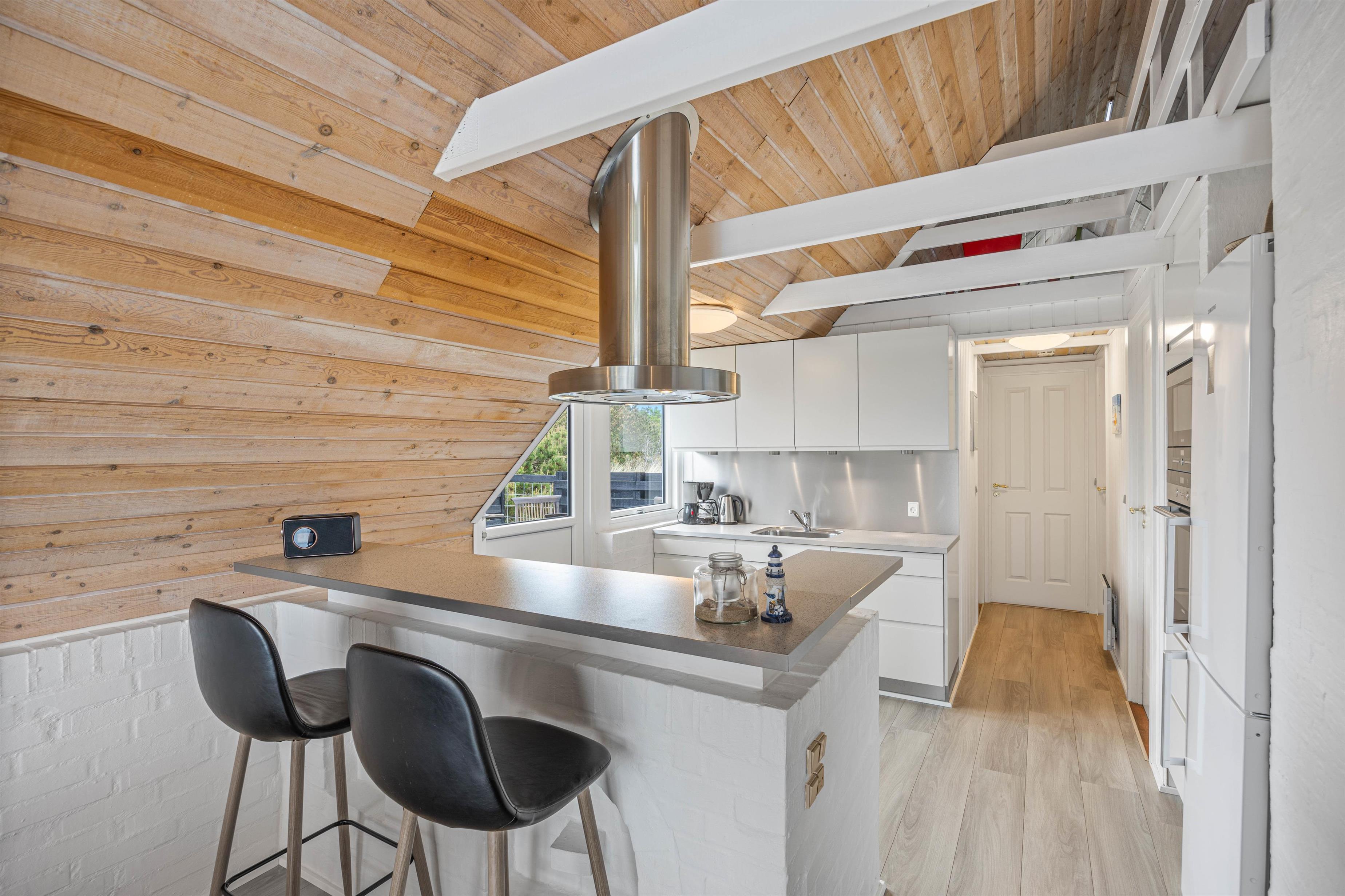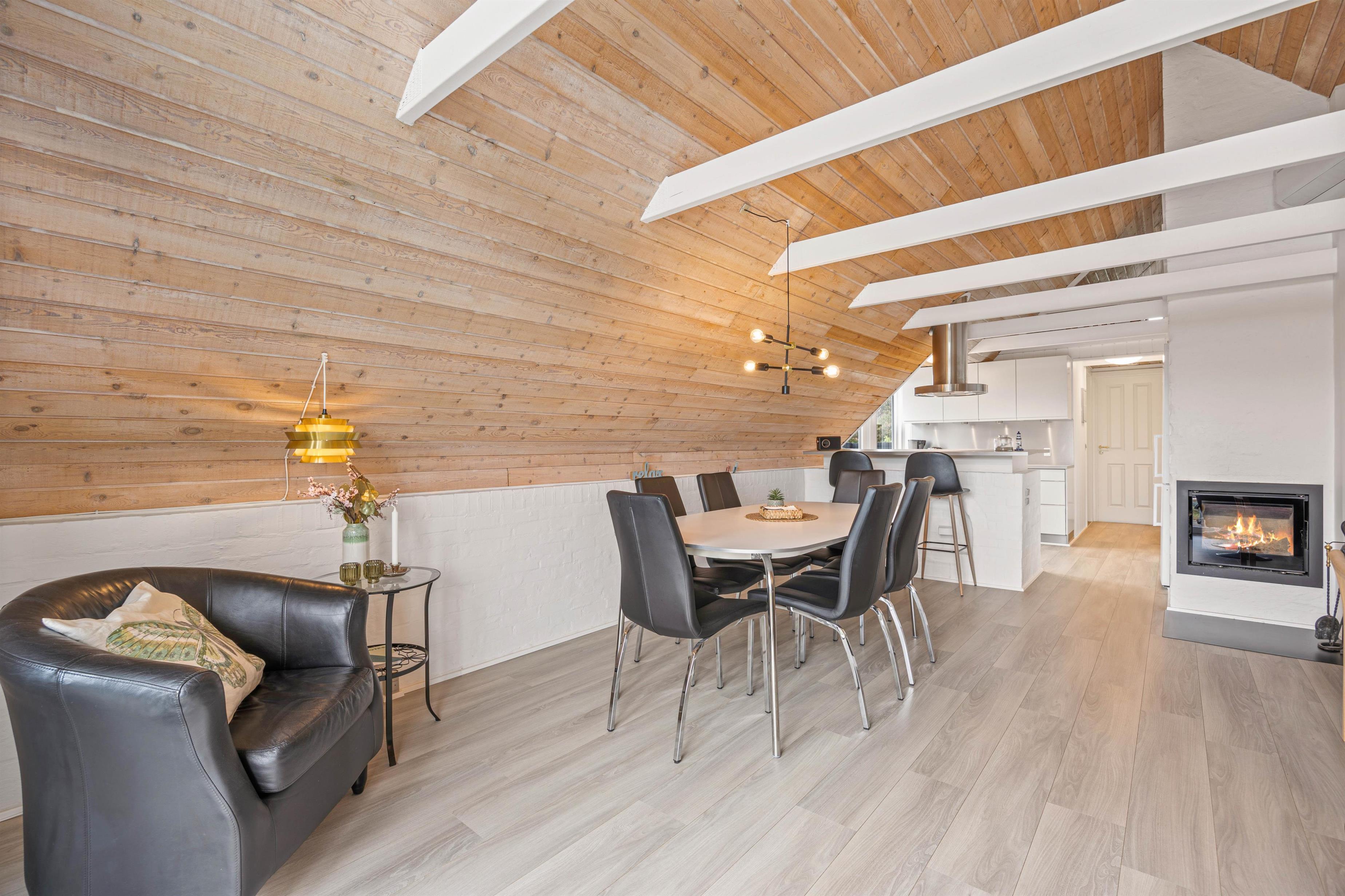 I sommerhuset på Hjelmevej 51 kan I holde en dejlig ferie, hvor I kan tilbringe en masse skøn ferietid sammen. Feriehusets opholdsrum, der forener køkken, stue og spiseafdeling, indbyder til mange gode og hyggelige feriestunder. Her sørger brændeovnen for at sætte et ekstra godt præg på stemningen.