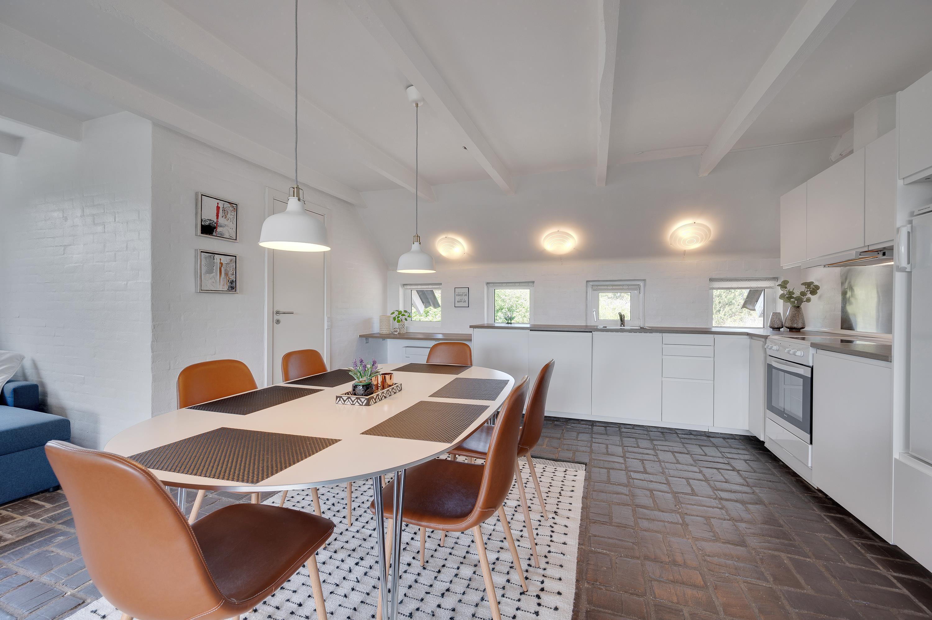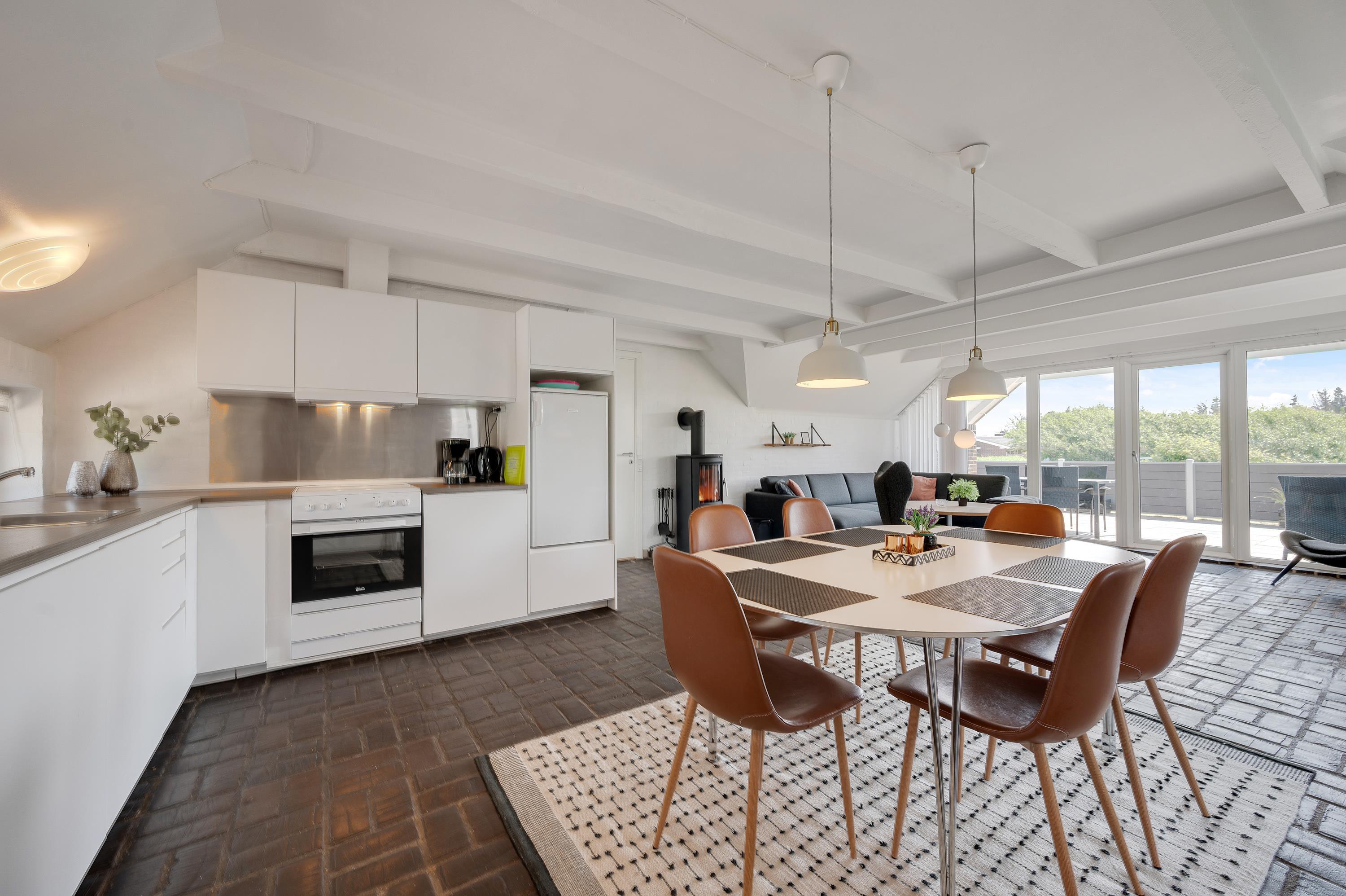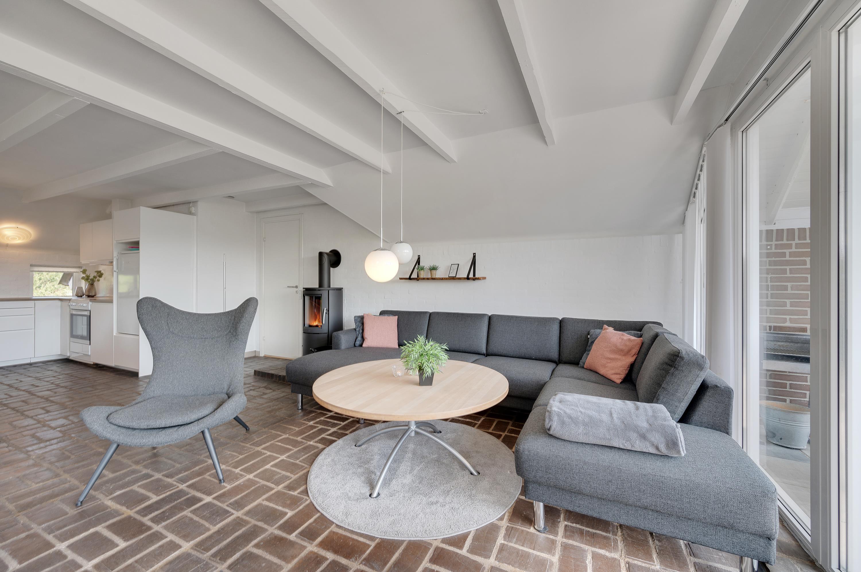 Sommerhusets smagfulde indretning kombineret med det rustikke klinkegulv giver jer den rigtige feriefølelse fra første minut. Det åbne køkken-alrum giver jer mulighed for samvær og hygge, lige meget hvor I opholder jer. Brændeovnen sørger for ekstra hygge og varme, både når I spiller brætspil ved spisebordet, og når I hygger med en god film i den rummelige hjørnesofa. I sommerhuset finder I generelt mange hyggekroge, der indbyder til afslapning og hygge.