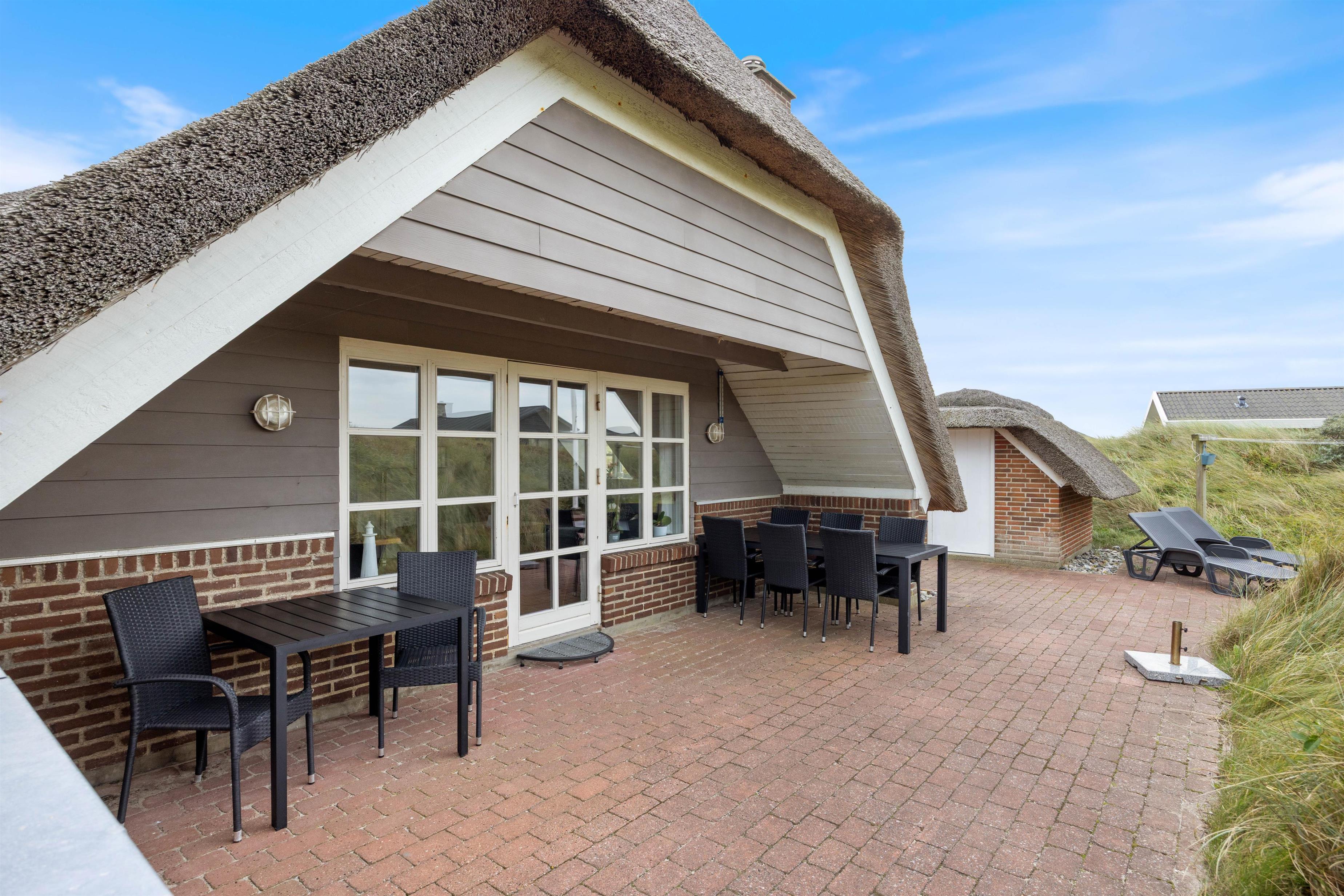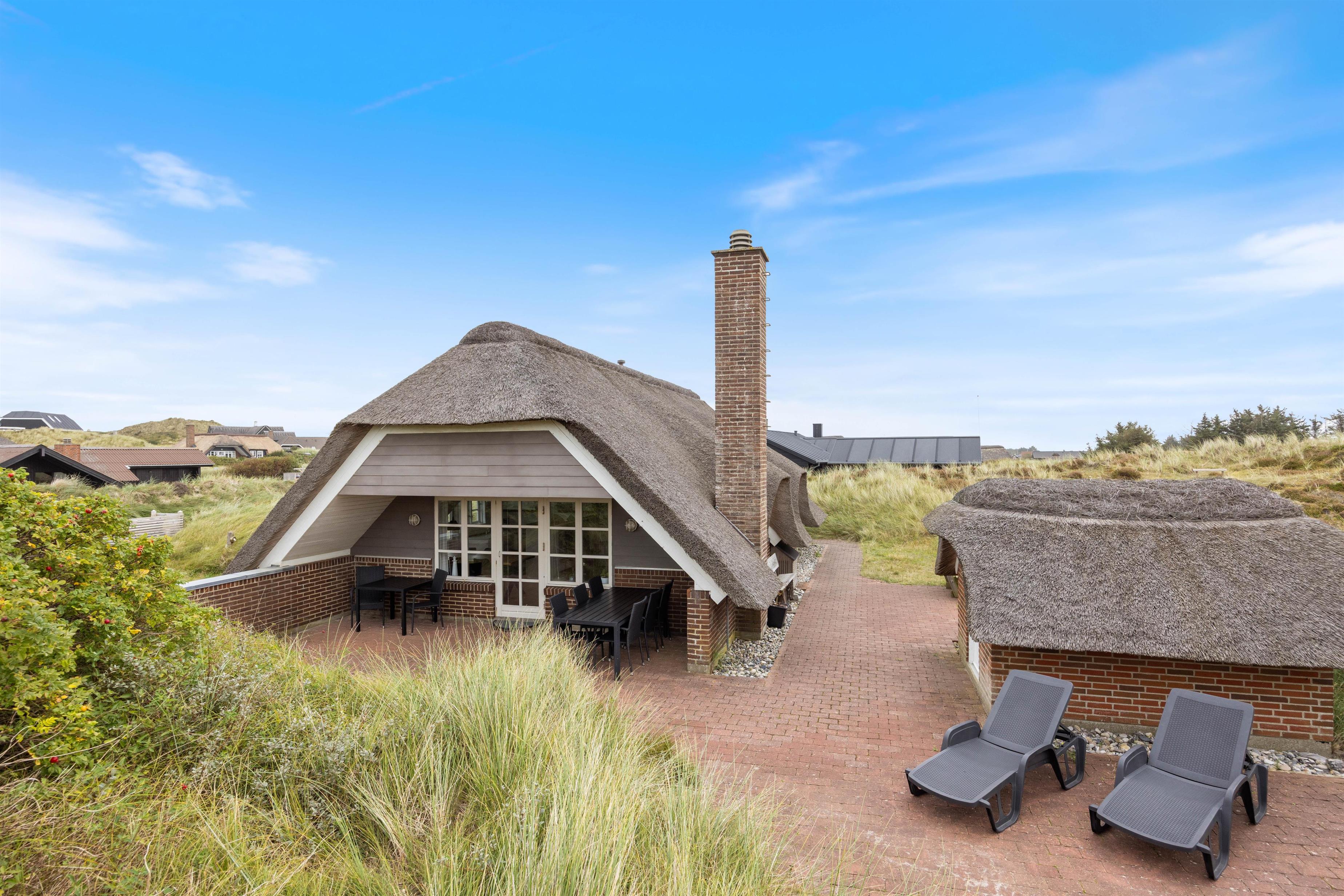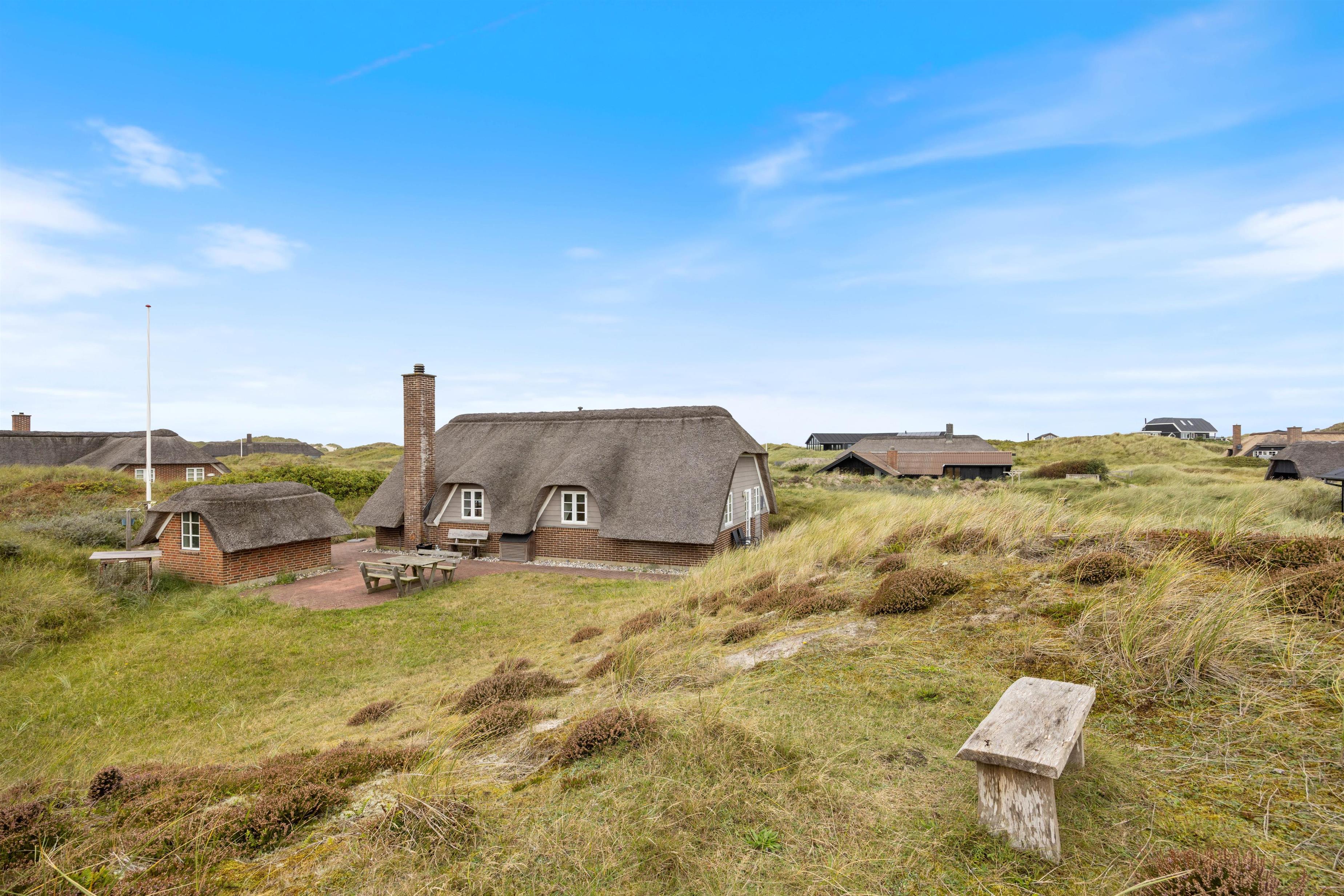 Det stråtækte feriehus med det vestjyske klitlandskab i baggrunden emmer af charme, og rammerne er sat for en idyllisk sommerhusferie i naturskønne omgivelser. I vil straks blive budt velkommen af den lyse og hyggelige indretning med fine, personlige detaljer, der skaber en ekstra indbydende ferieatmosfære. De lyse lofter og vægge skaber en dejlig atmosfære. Den gode atmosfære styrkes kun af husets brændeovn, der bidrager med varme og hygge til den gode atmosfære.