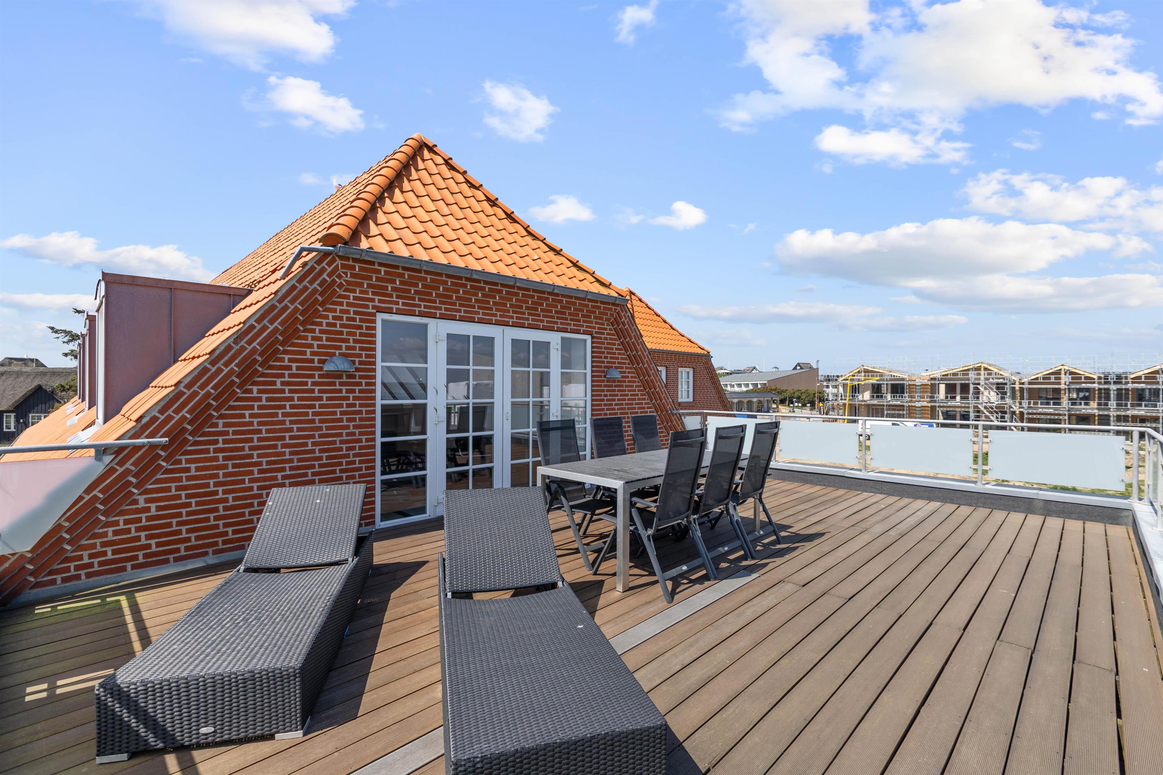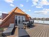 Den østvendte terrasse er åben og egner sig perfekt til både solbadning og grillmiddage. I kan tage plads på havemøblerne og kigge ud i det fjerne lidt fra oven, imens I nyder en kold drink. Den vestvendte terrasse er overdækket, og herfra kan I følge med i byens liv nede på gaden, men samtidig sidde i fred bag det mælkehvide glasrækværk.