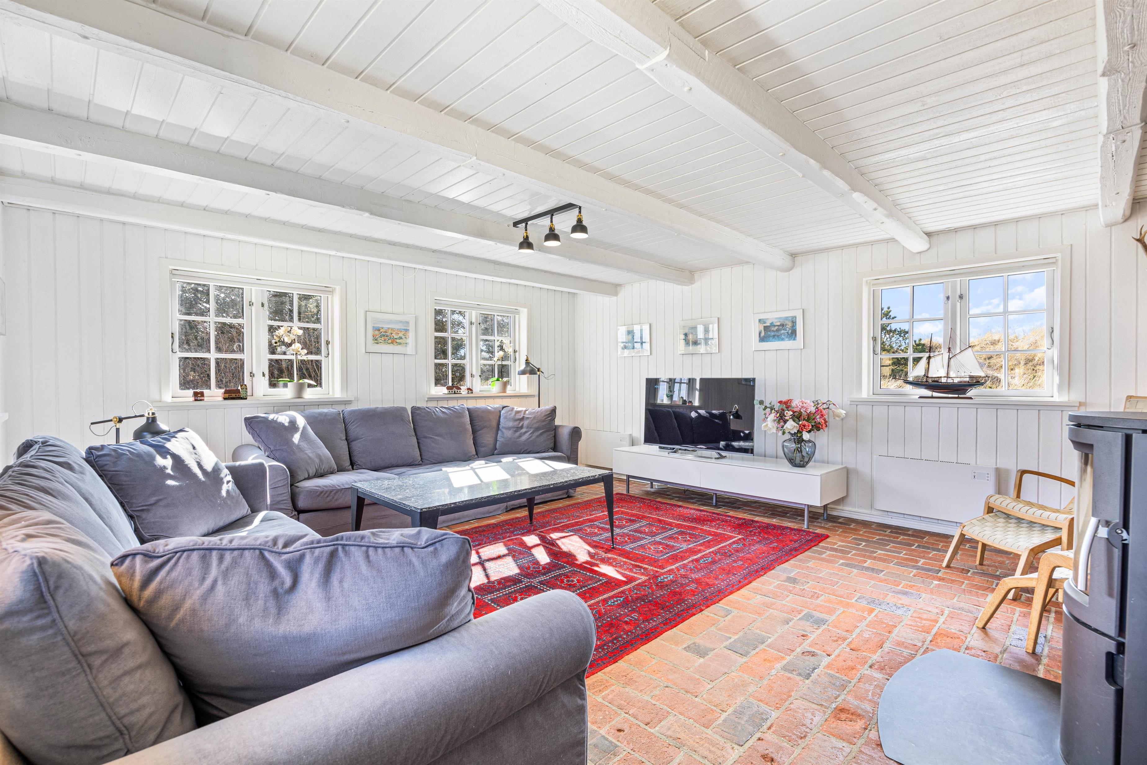 Det 189 kvadratmeter store feriehus indeholder hele 4 gode og rummelige soveværelser, hvor der er plads til op til 8 feriegæster og jeres 2 hunde. Den lyse indretning skaber et indbydende og behageligt inde rum, som inviterer til hygge og afslapning.
