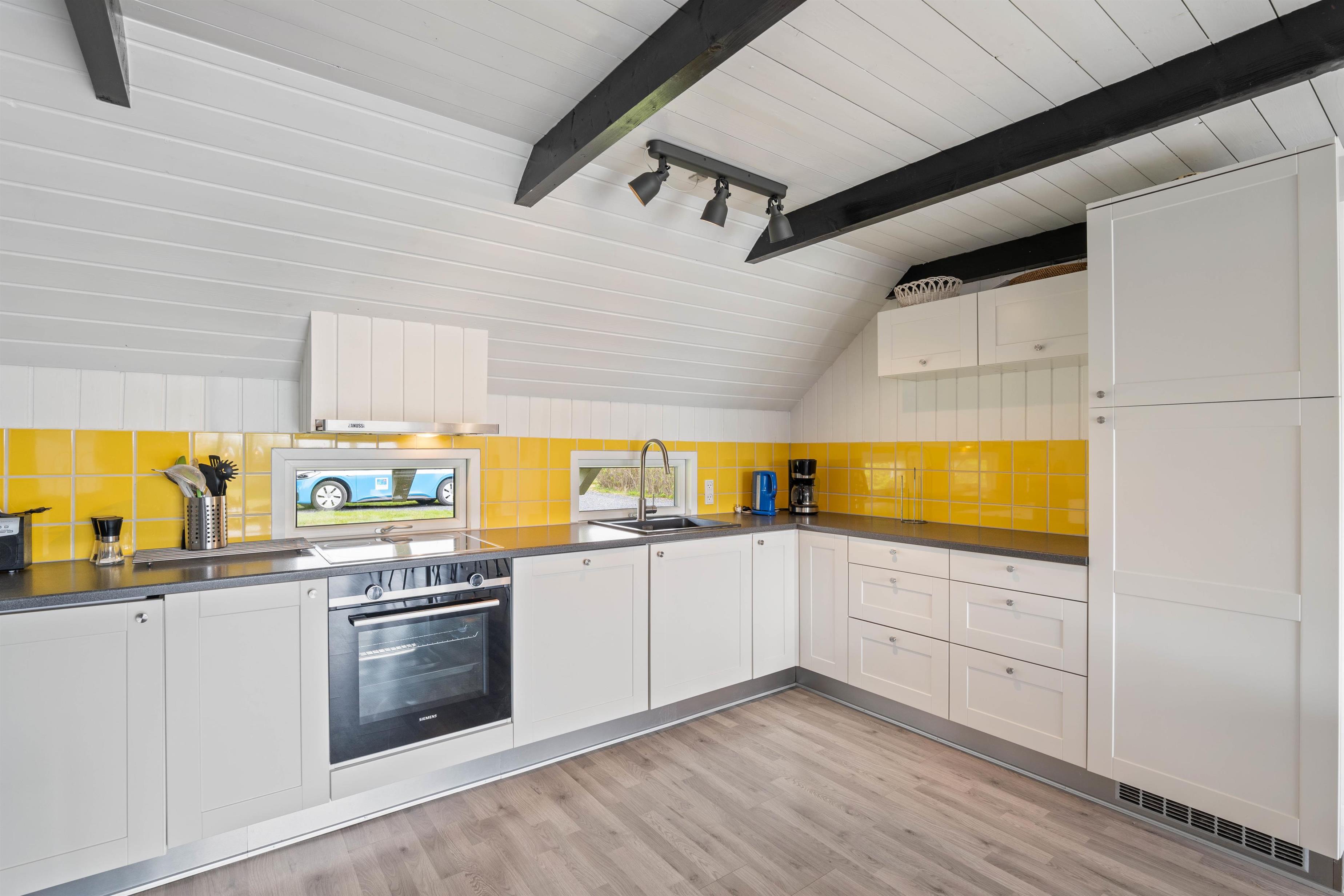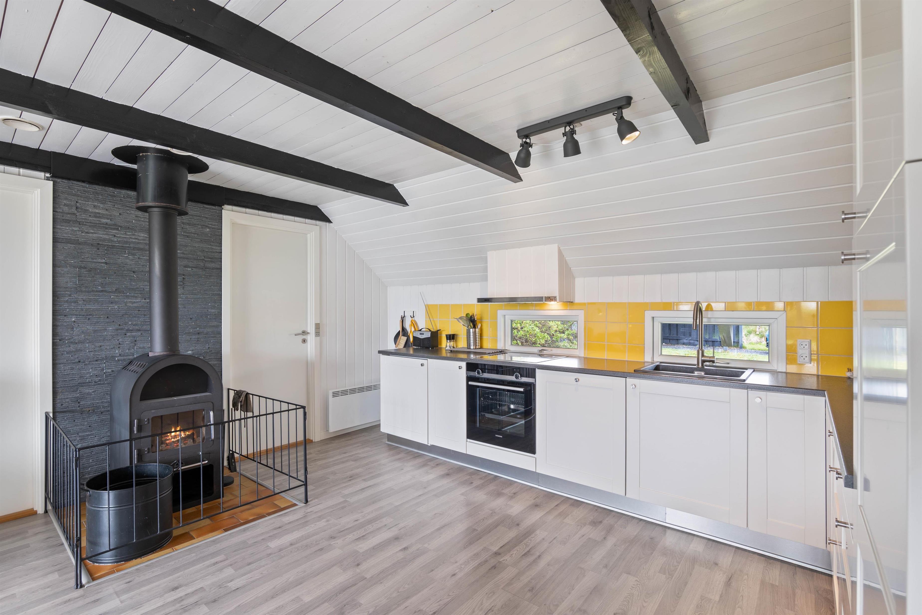 Overalt i huset er der tænkt over farver, indretning og funktionalitet, og de rengøringsvenlige trægulve gør huset endnu mere indbydende. Stuen er indrettet med pæne kvalitetsmøbler, brændeovn, fladskærms-tv, DVD og radio, mens køkkenet er udført i flotte materialer og er udstyret med blandt andet opvaskemaskine og mikroovn.