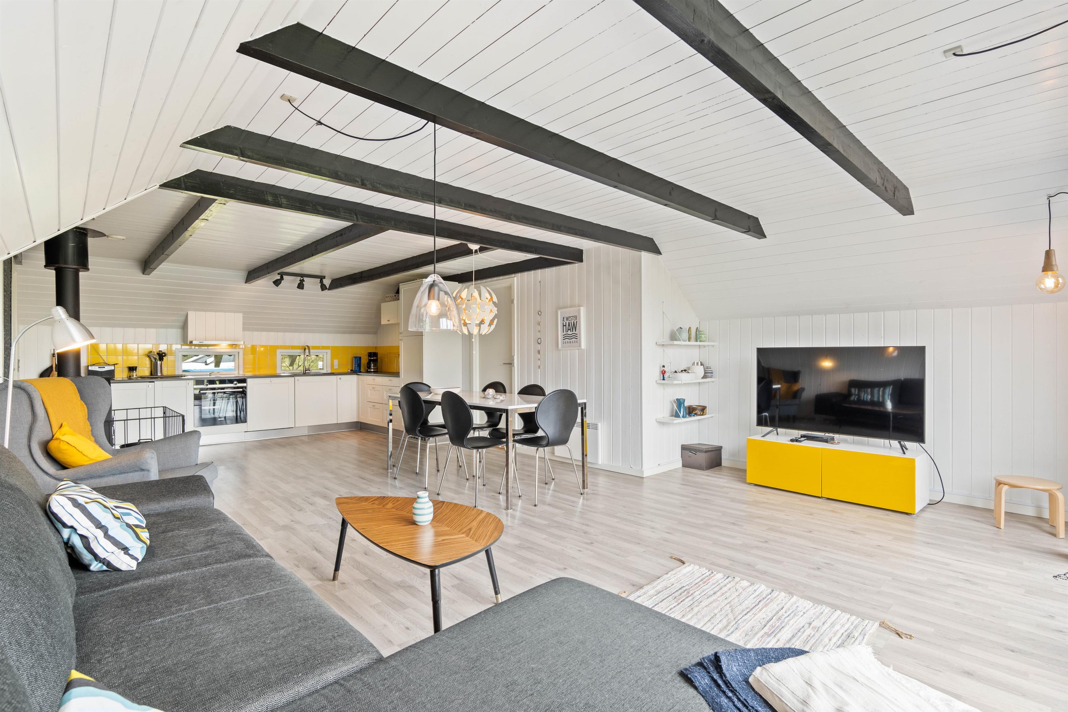Det store opholdsrum, der forener køkken, spisekrog og stue, er husets naturlige hjerte. Her er der plads til både afslapning og aktiviteter. Så uanset om I trænger til en lille lur på sofaen eller vil spille et sjovt spil omkring spisebordet, er der plads til det i opholdsrummet. Og vil I virkelig sænke skuldrene, skal I naturligvis hoppe en tur i husets dejlige sauna.