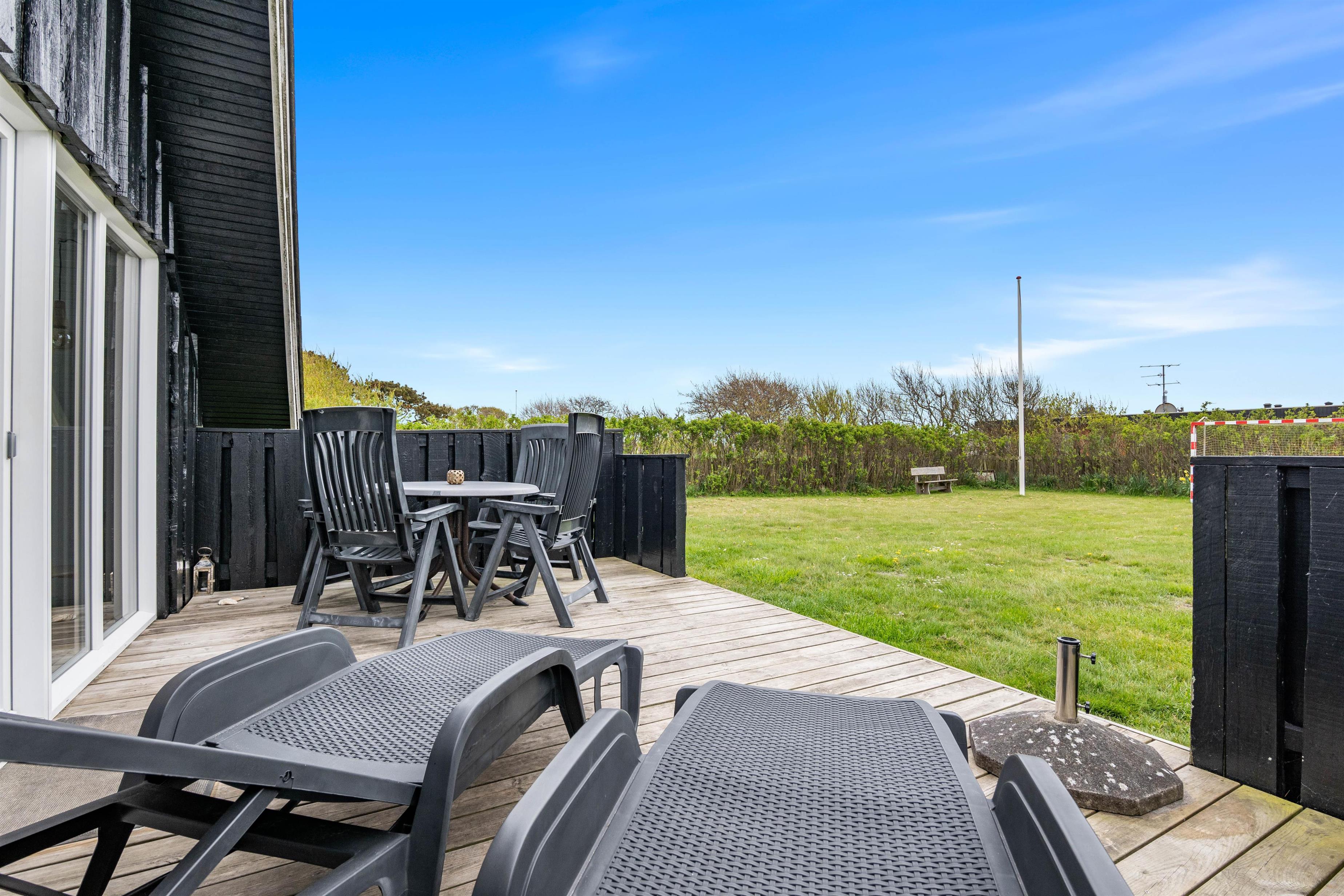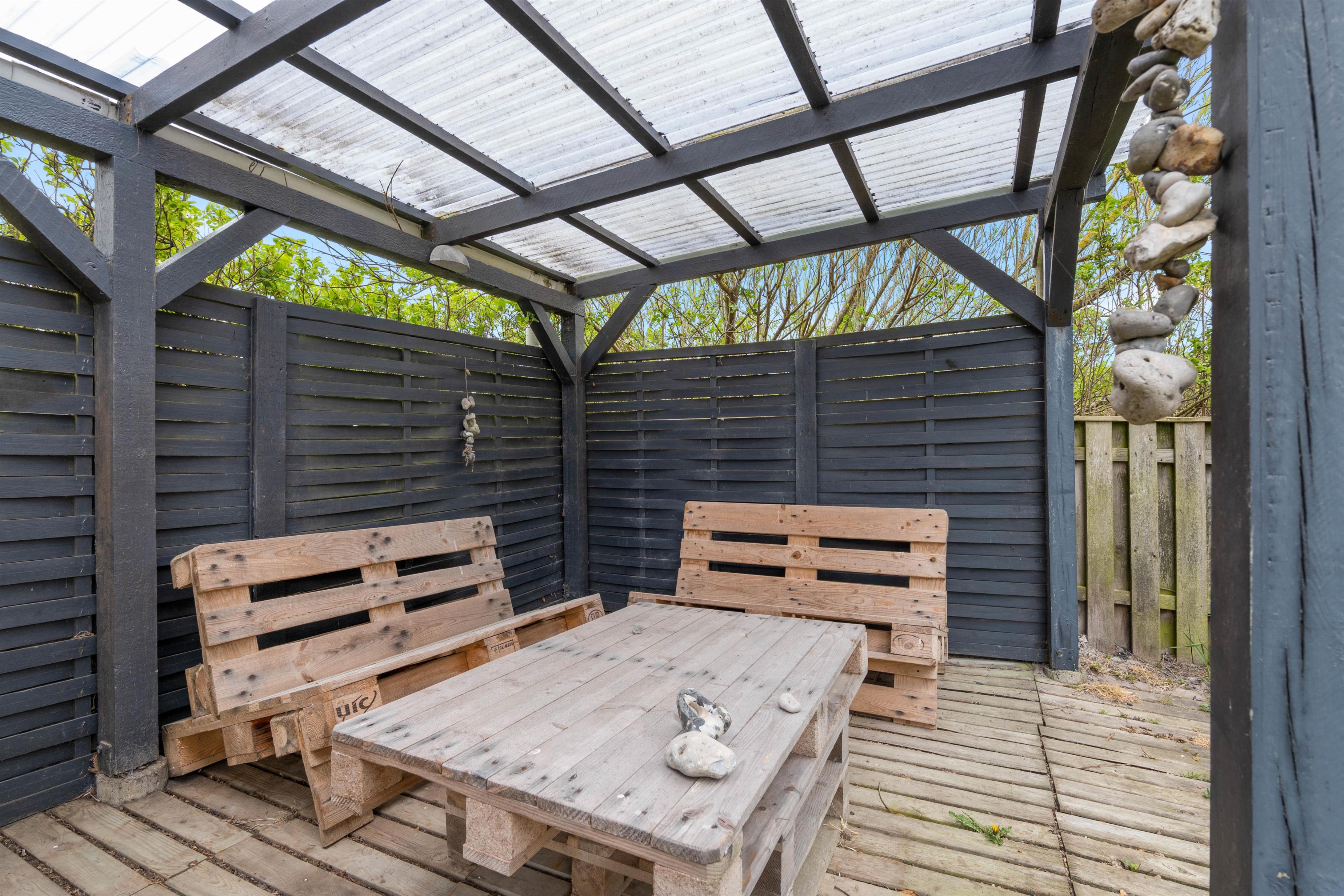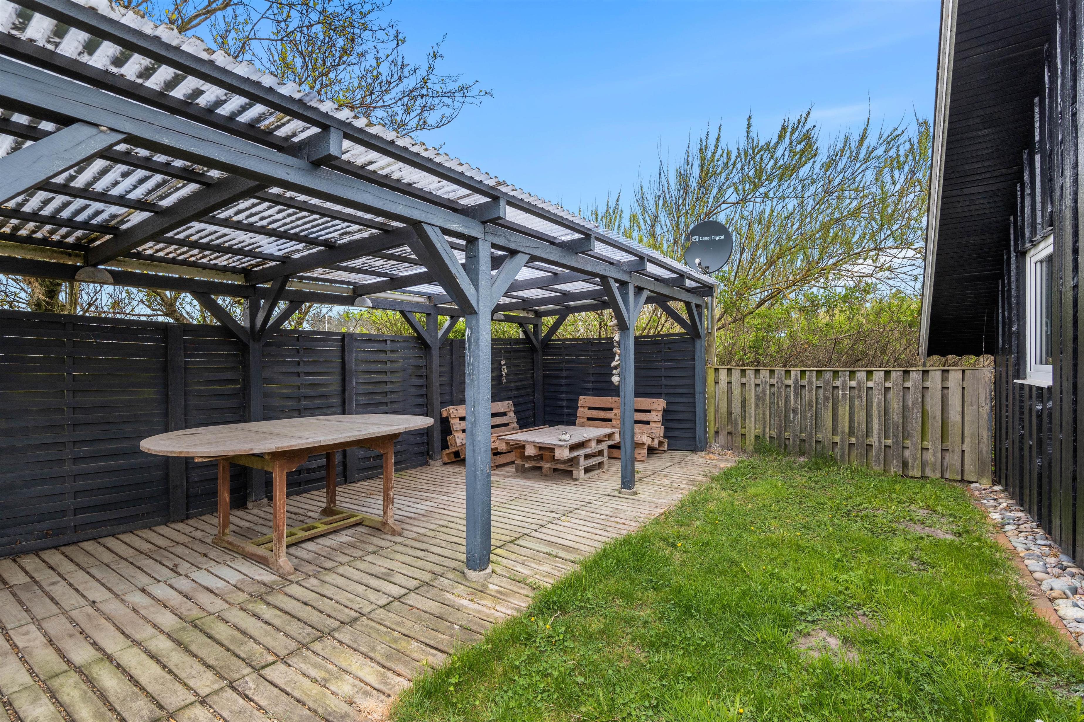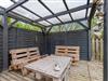 Det er virkelig lagt op til, at I kan slappe af og hygge jer i sommerhuset på Solvej. Udenfor finder I en separat terrasse, der er overdækket, og som bugner med remedier til at slappe af i. Denne terrasse byder blandt andet på et lækkert loungeområde, en lokkende hængekøje og et godt havemøbelsæt.