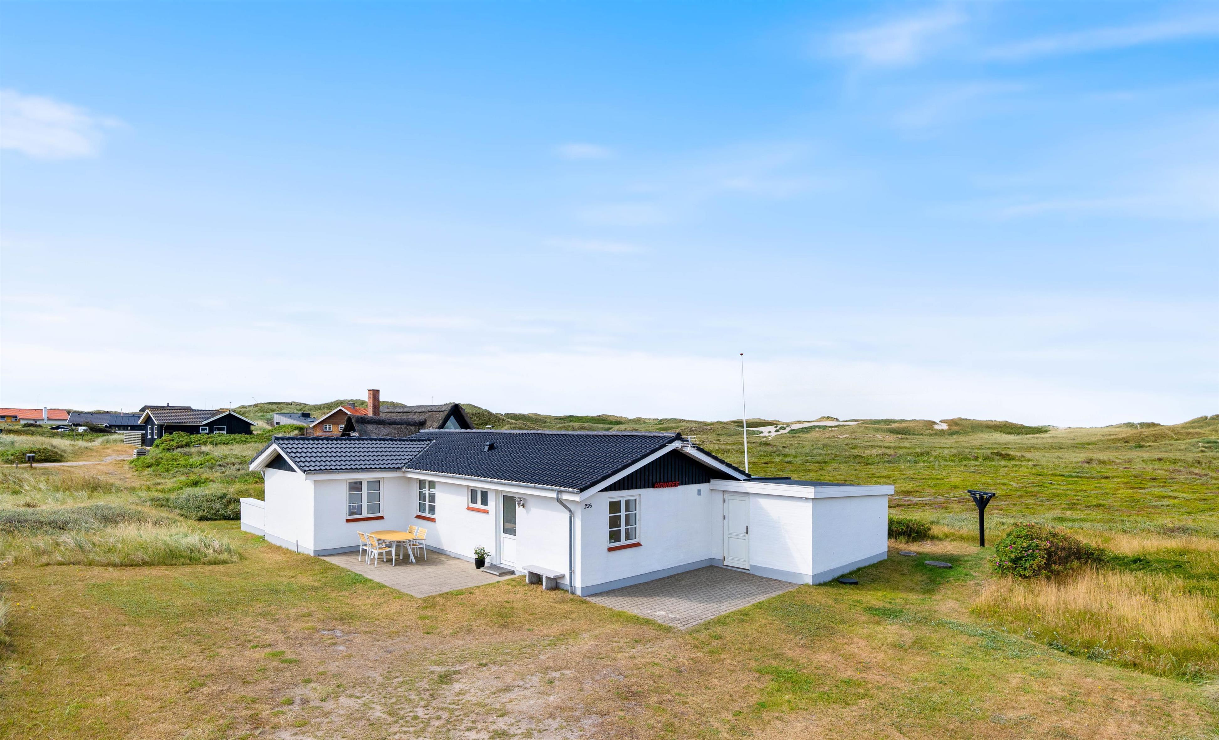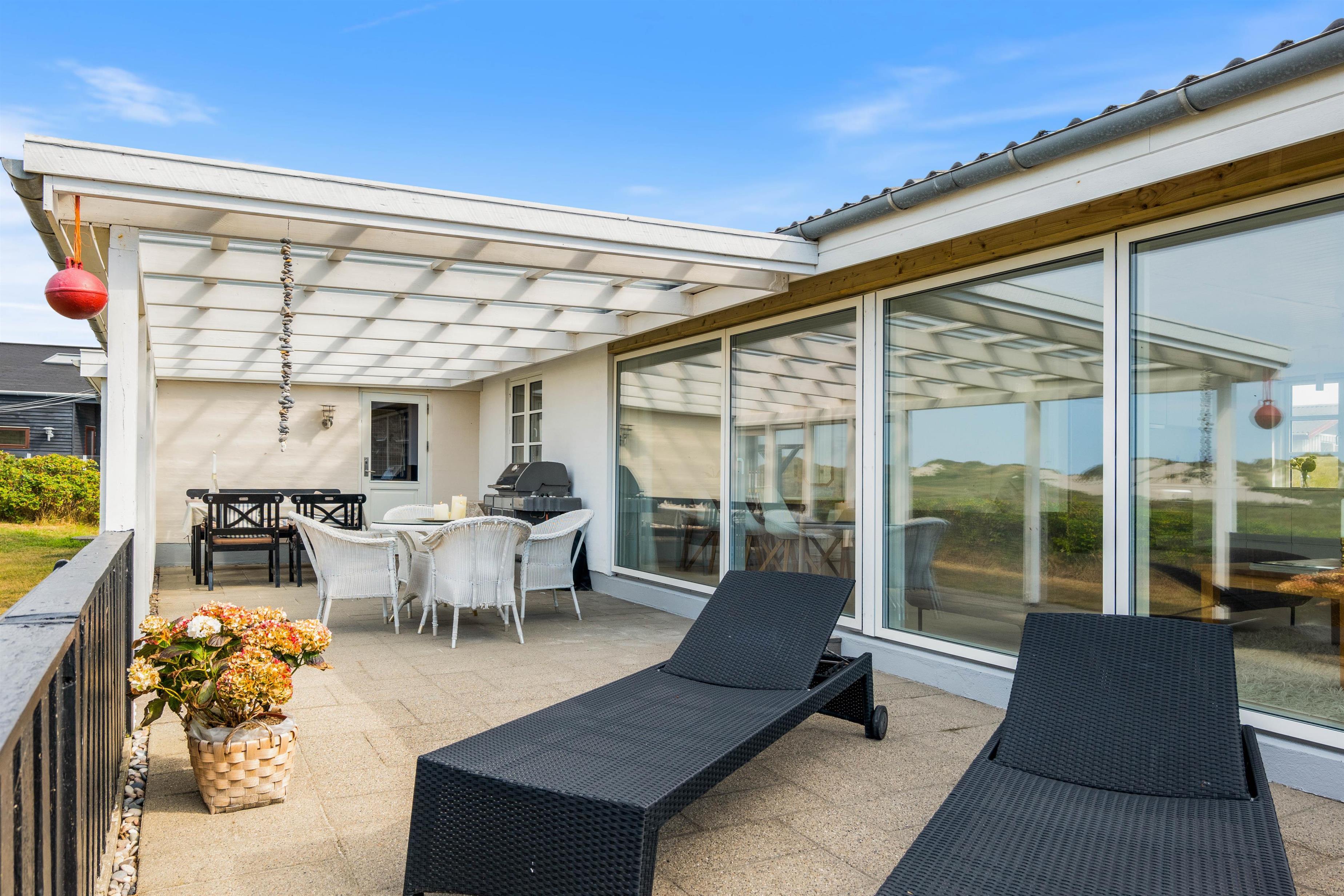 Et af højdepunkterne ved dette sommerhus er den overdækkede terrasse, hvor I kan nyde måltiderne ude i det fri eller bare slappe af med en god bog i hånden. Terrassen giver mulighed for at nyde den friske luft uanset vejret og I kan tilbringe kvalitetstid sammen udenfor. Slå jer ned i de behagelige havemøbler, og nyd den helt uforstyrrede udsigt udover de smukke klitter.
