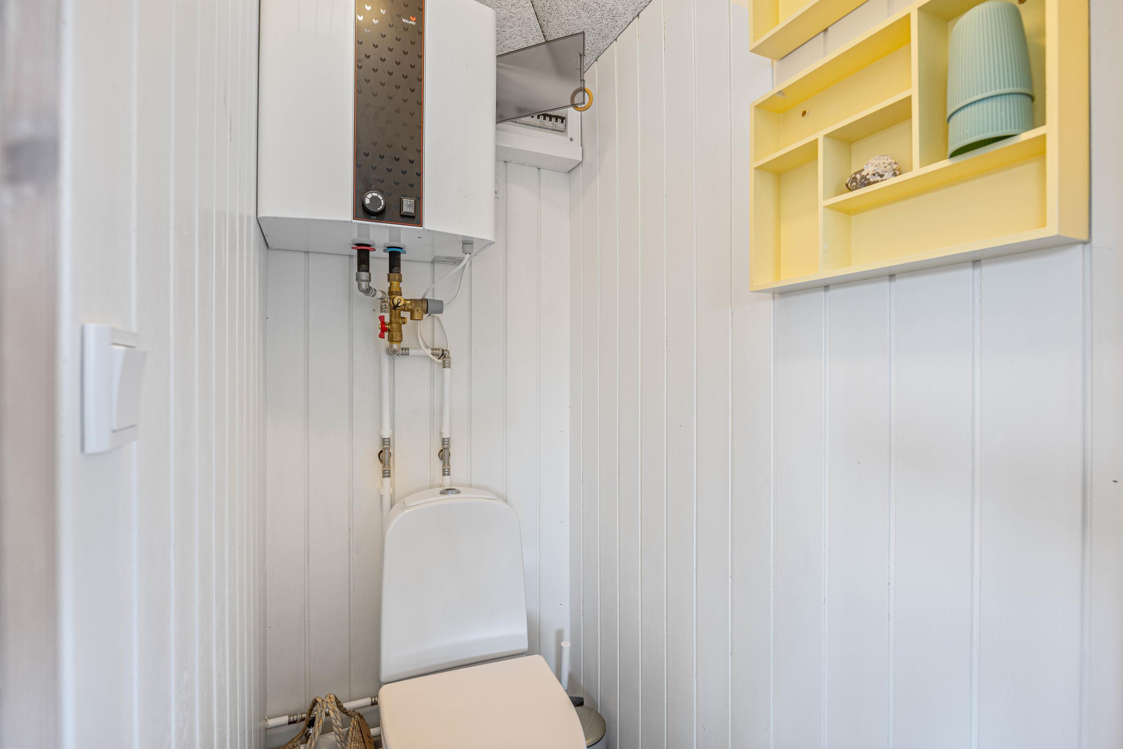 I kan nyde sol og læ i en af de mange lune kroge, og selv hvis I har brug for lidt skygge, kan I også få dette på feriehusets overdækket terrasse. Ved disse forskellige kroge, er der selvfølgelig havemøbler og en gasgrill som indbyder til mere ude tid. Med åbne terrasser mod syd, vest og nord og en overdækket terrasse mod øst, har I ideelle udendørsområder at vælge imellem på alle tider af dagen. Nyd jeres måltider udendørs og tilbring afslappende timer på husets smukke lyngbeklædte naturgrund.