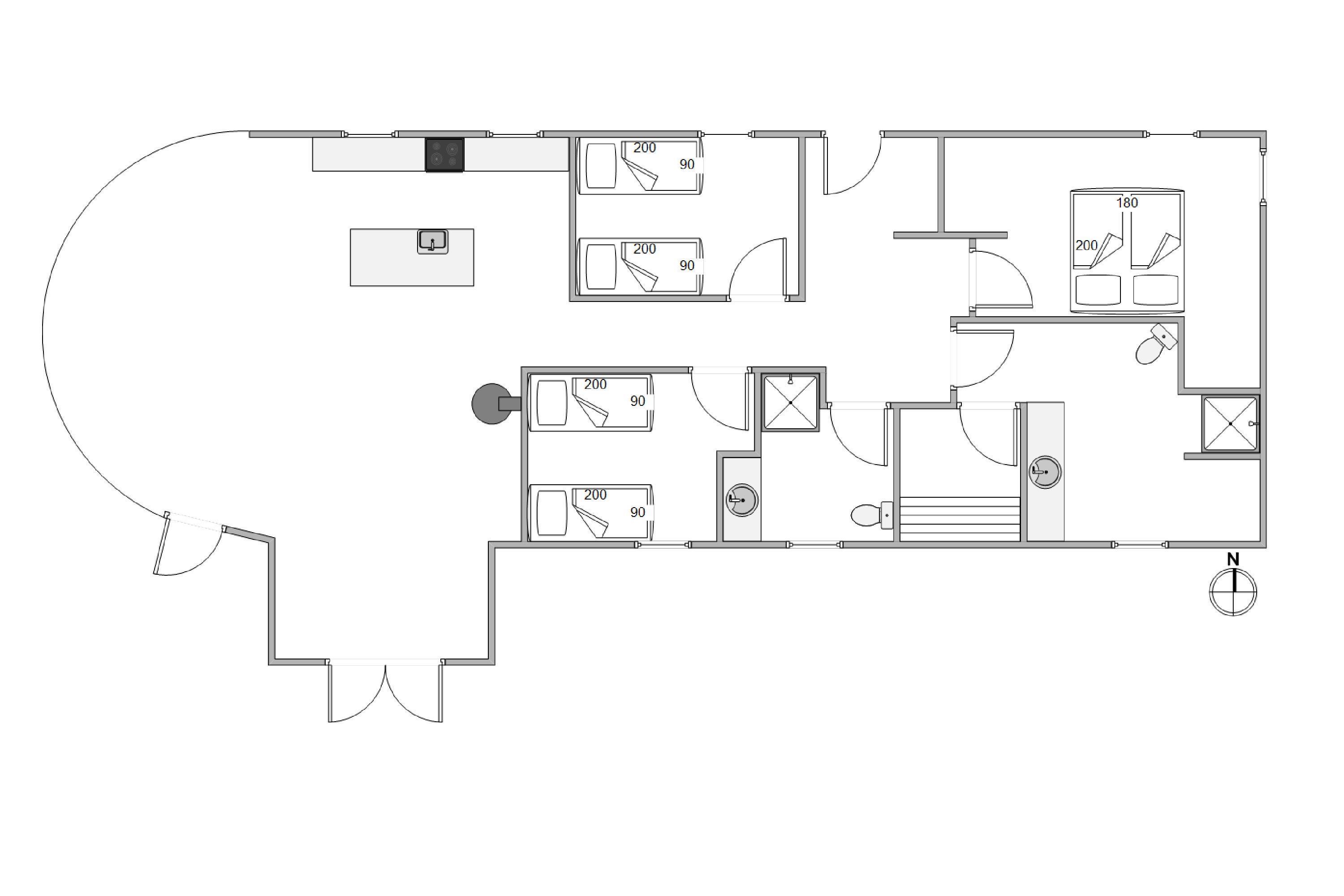 Dette gennemførte og flotte feriehus på Molsvej 7 er til seks personer, fordelt på tre soverum, heraf 1 med dobbeltseng og to med hver to enkeltsenge. De to badeværelser gør det ideelt for to familier at holde ferie sammen – eller meget praktisk, hvis der er teenagere med. Fra det ene badeværelse er der adgang til husets sauna, som er perfekt afslapning efter en rask spadseretur til vandet og i klitterne.