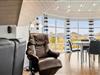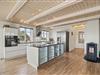 Fra den veludrustede køkkenafdeling med bl.a. amerikaner-køleskab, mikroovn, opvaskemaskine og 80 l. fryser er der åbent til ophold- og spisestue, hvilket gør det nemt at være en del af samværet der, selv når ”man står i køkkenet”.