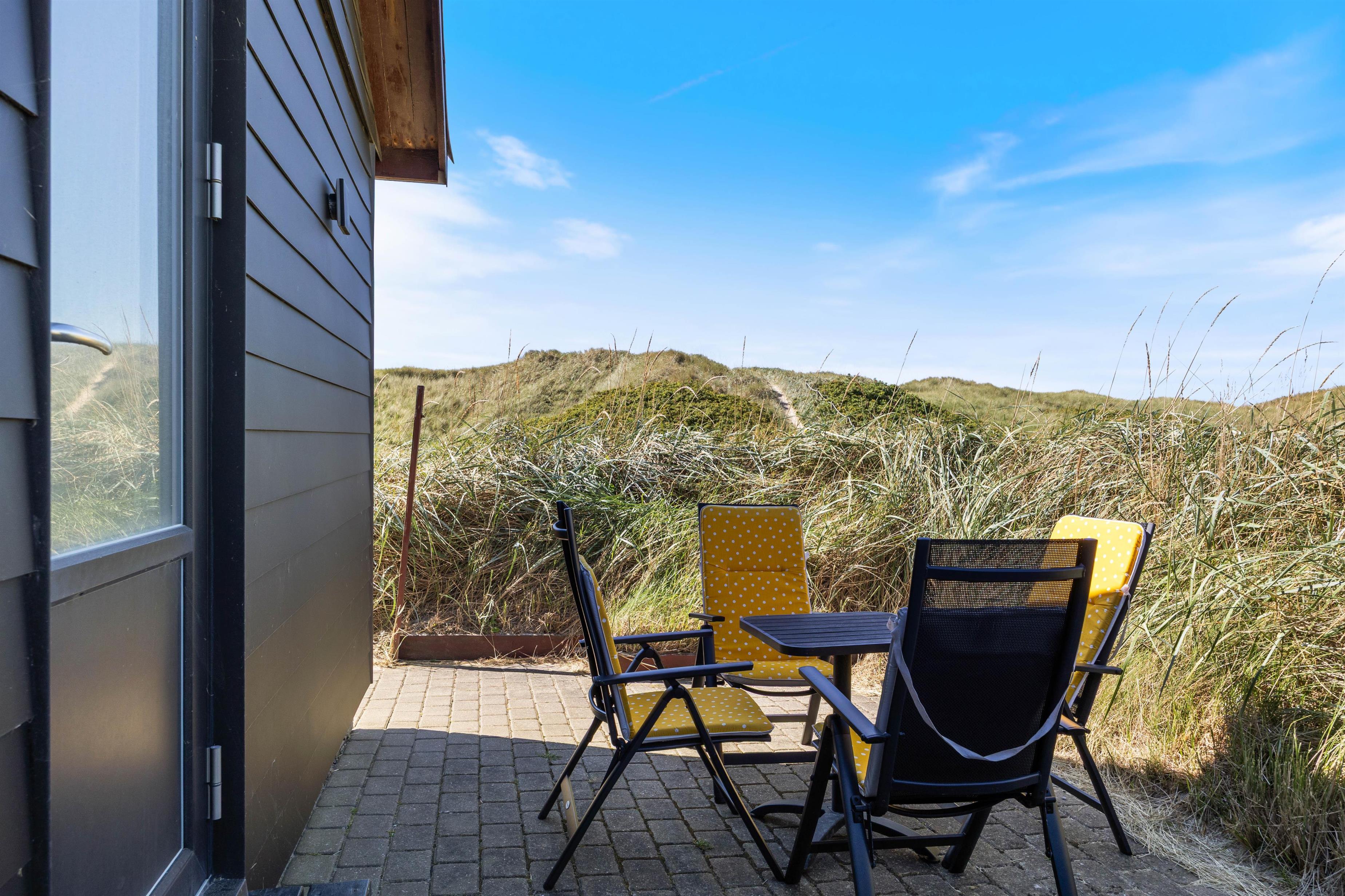 Terrasse og udendørsareal med panoramaudsigt over klitter