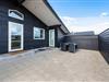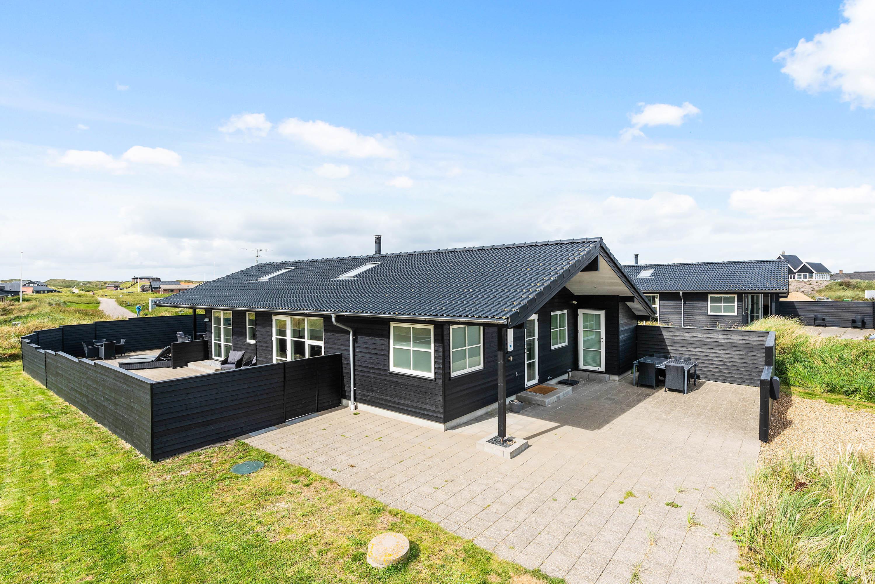 Mod vest er der en skøn og stor og helt lukket terrasse, mod syd er terrassen åben og mod øst er den delvist afskærmet og delvist overdækket. Der er en jordvold omkring grunden mod syd, mod vest og mod nord, uden at det ødelægger udsigten mod golfbanen eller udsigten over klitlandskabet mod vest. Søndervig centrum er kun ca. 1500 m fra sommerhuset, og Vesterhavet kun 300 m væk. Og er man golfspiller, ligger der en skøn 18-hullers golfbane 100 m fra huset.