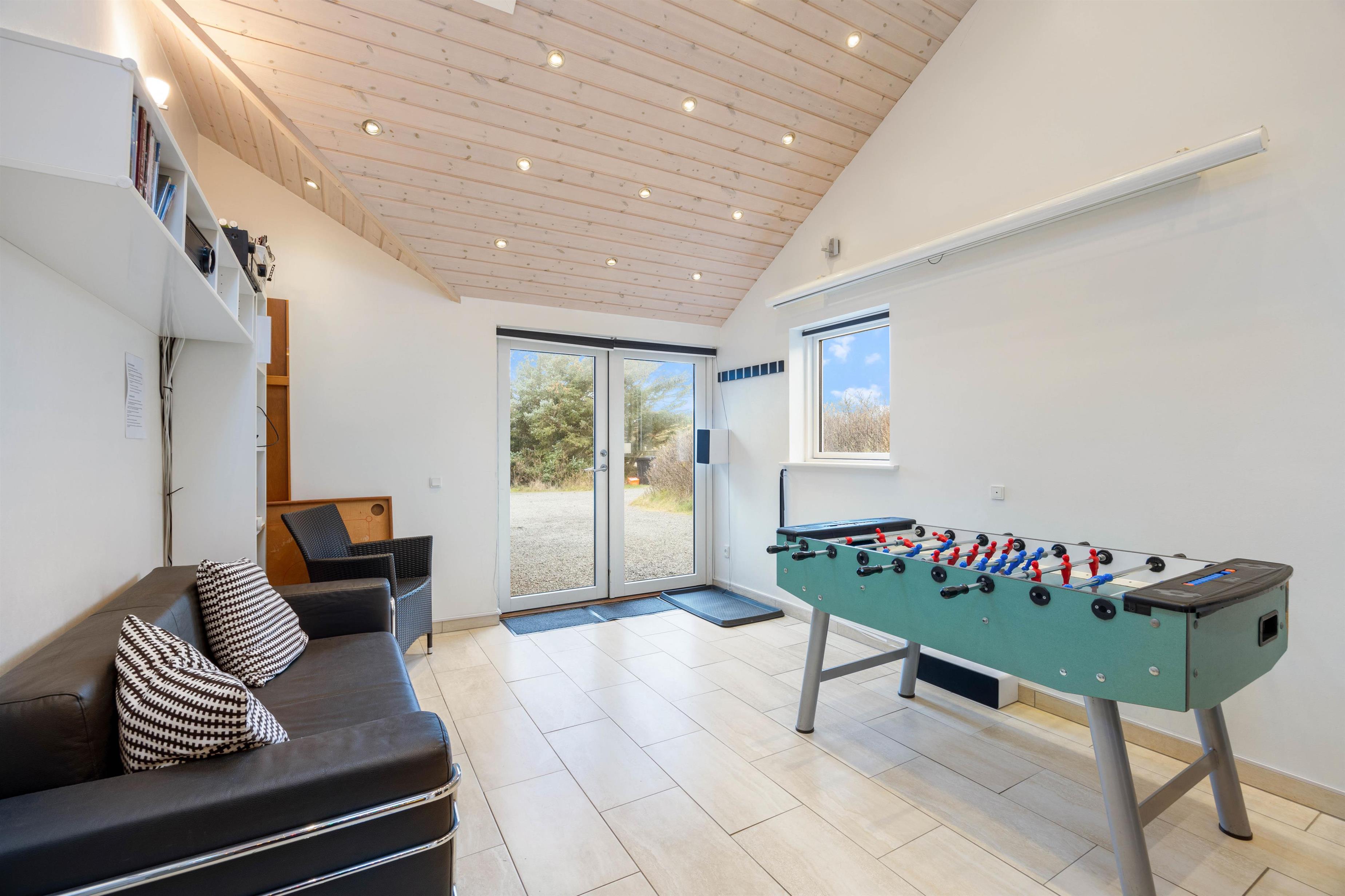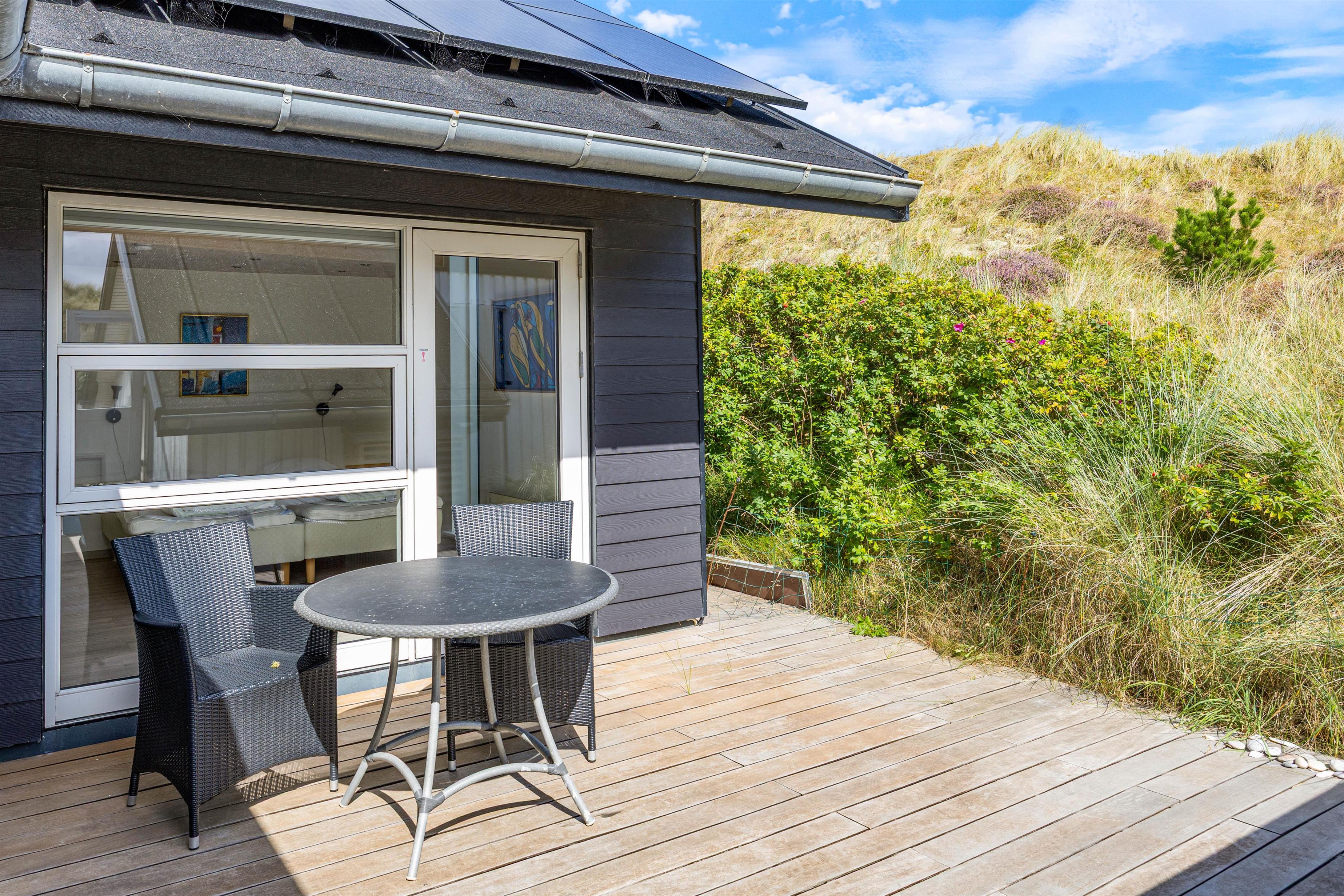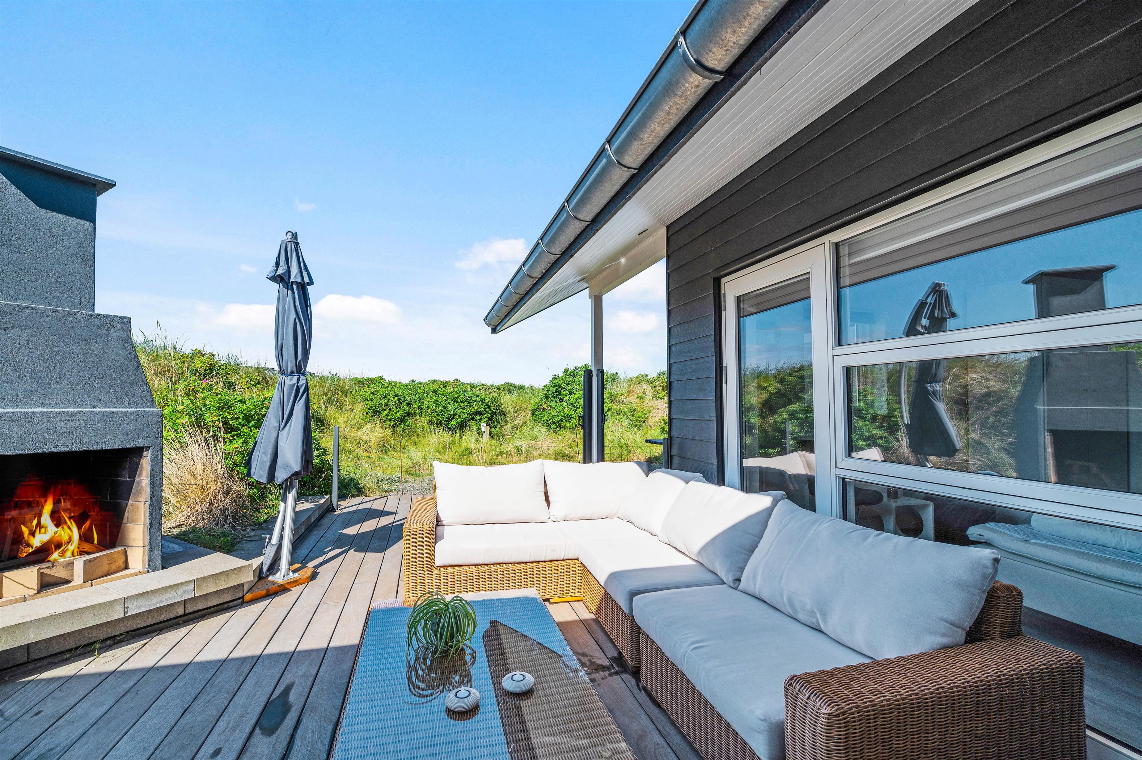 Midt i det smukke klitlandskab og ikke langt fra det brusende Vesterhav ligger dette skønne feriehus på Marehalmen 51. Den stilfulde indretning efterlader ikke meget til fantasien, og med både dampbad, massagestol, en lækker sauna, aktivitetsrum, hjemmebiograf og en fredfyldt og strandnær beliggenhed er I garanteret en fantastisk ferie her.