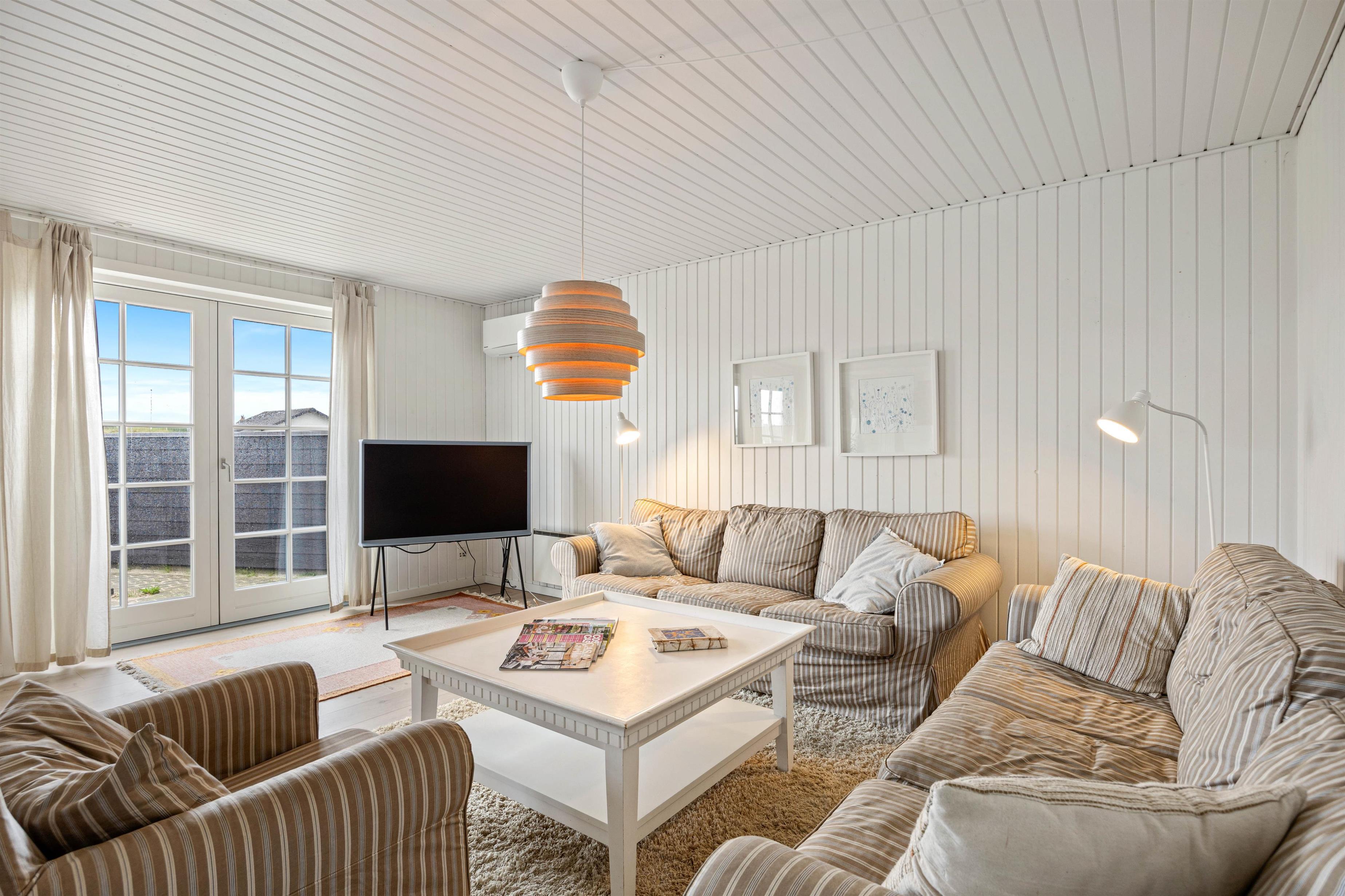 I køkkenet er der en opvaskemaskine og en mikroovn, hvilket altid gør madlavningen og oprydningen efter madlavningen nemmere og mere bekvem. Stuen ligger mere eller mindre i åben forbindelse med køkkenet, og her er der hyggeligt indrettet, og møblerne passer godt sammen med de flotte hvidemalede vægge og lofter. For at give jer den hjemlige følelse, er der et fladskærms-TV, DVD-afspille, gratis trådløst internet og en energibesparende varmepumpe.