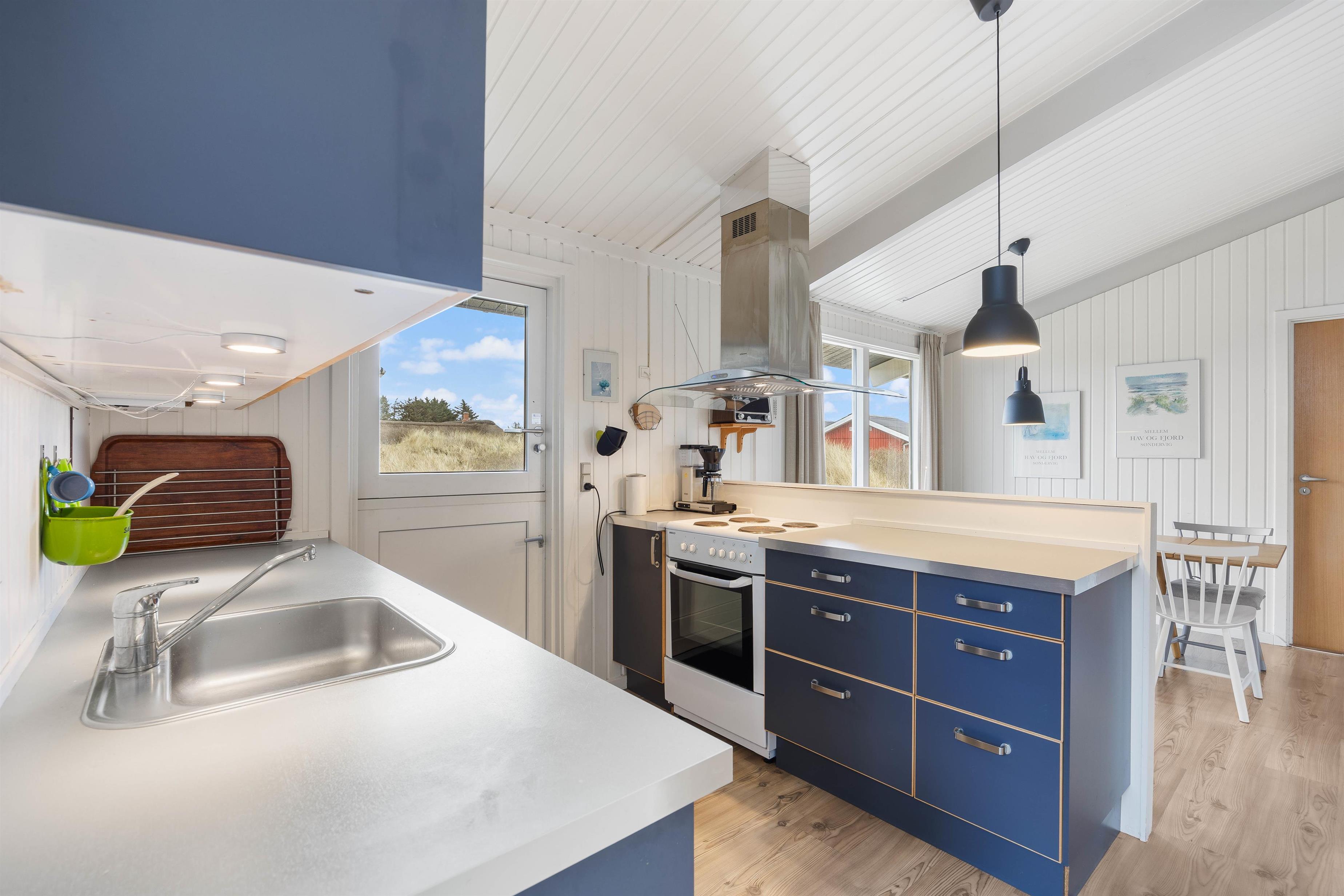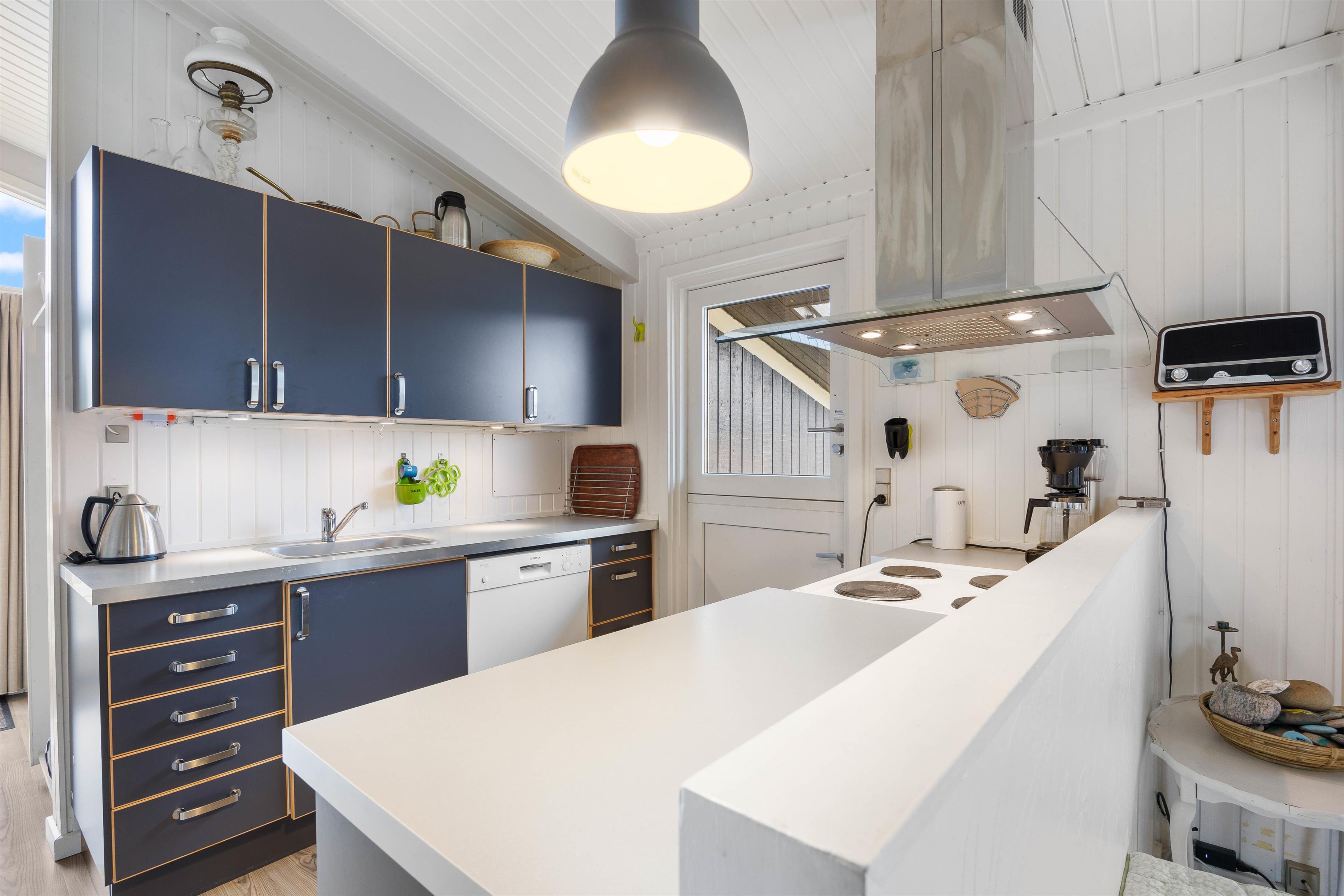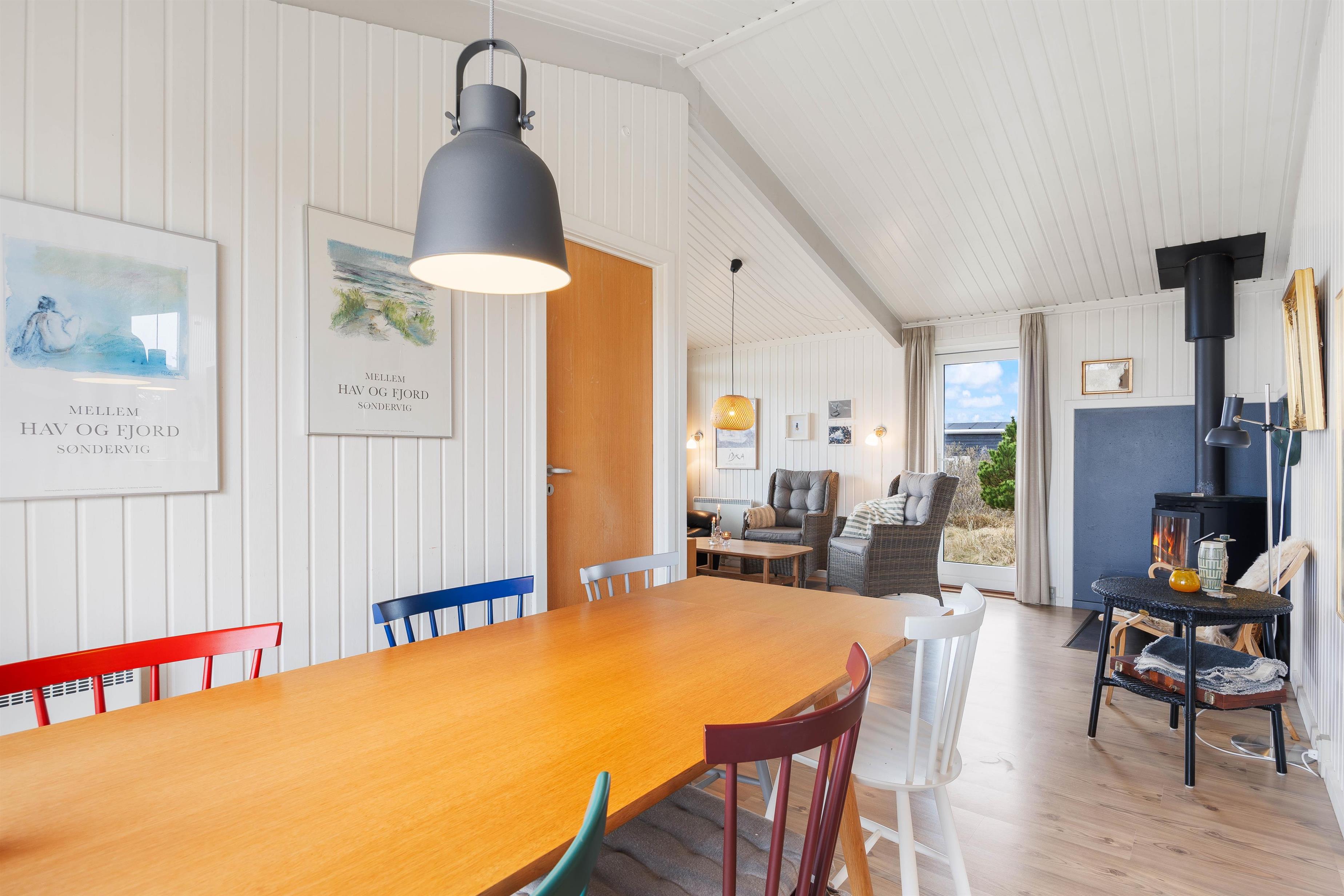 Når du træder ind af døren til dette autentiske feriehus, vil du blive mødt af den ægte sommerhusstemning, der er i feriehuset. Sommerhuset i Søndervig på Nordsøvej 98 er indrettet i en personlig og hjemlig stil, hvor der er plads til afslapning. Imens nogen står for tilberedning af aftensmåltidet, kan andre samles omkring planlægning af resten af ugens aktiviteter eller tage et spil sammen. Derudover har I også mulighed for at slænge jer på sofaen med varmen og de knitrende lyde fra brændeovnen i baggrunden.