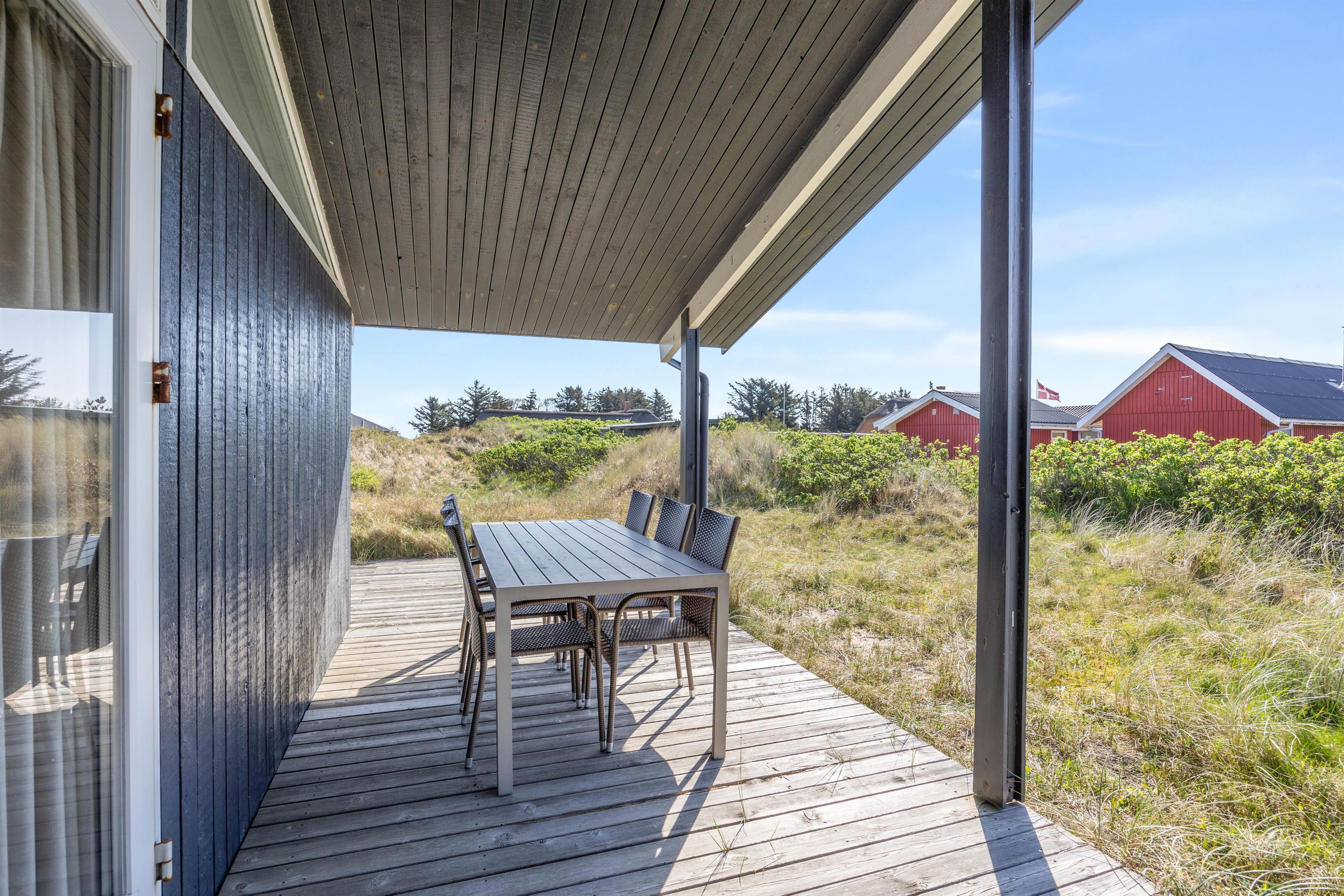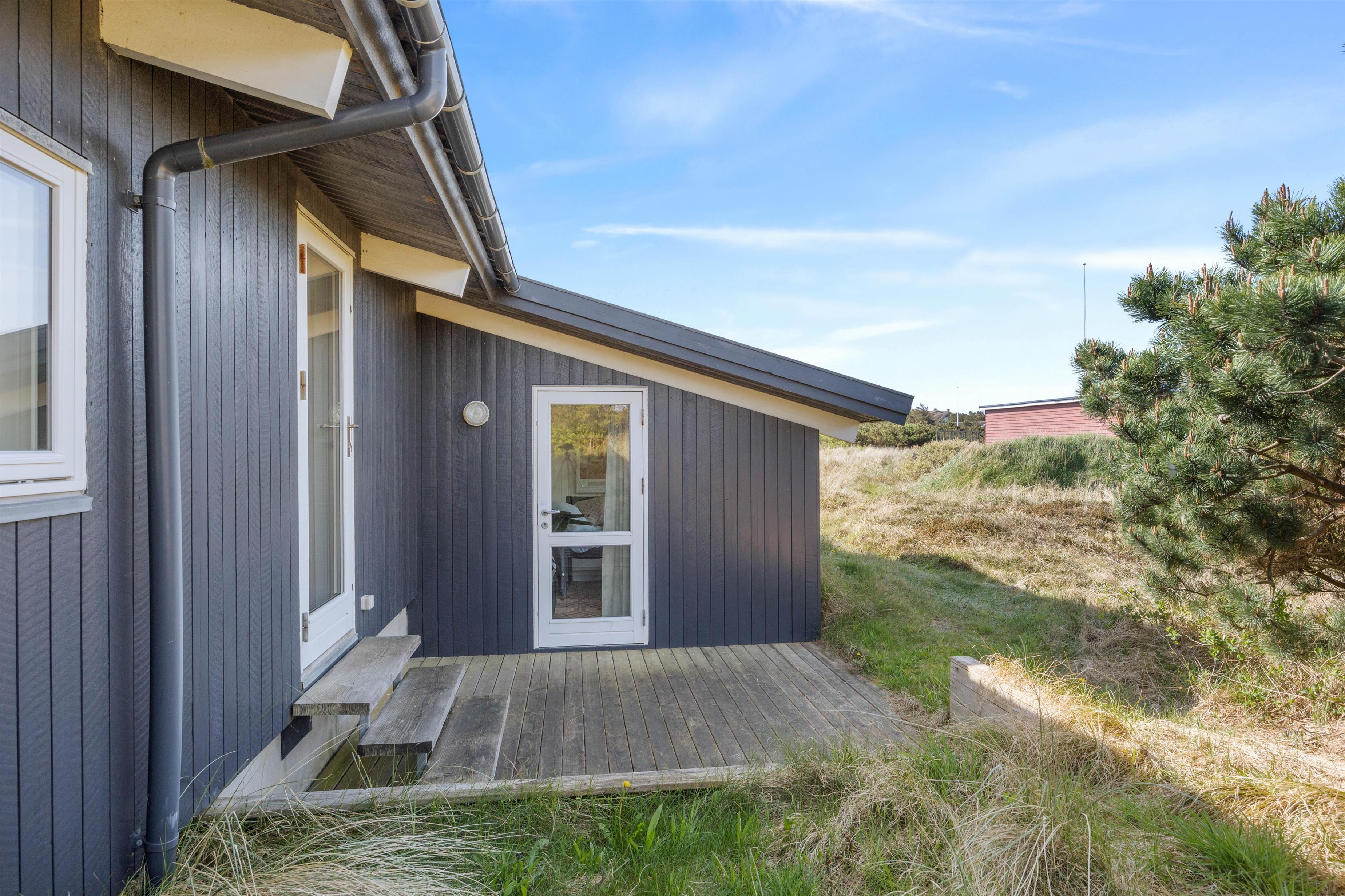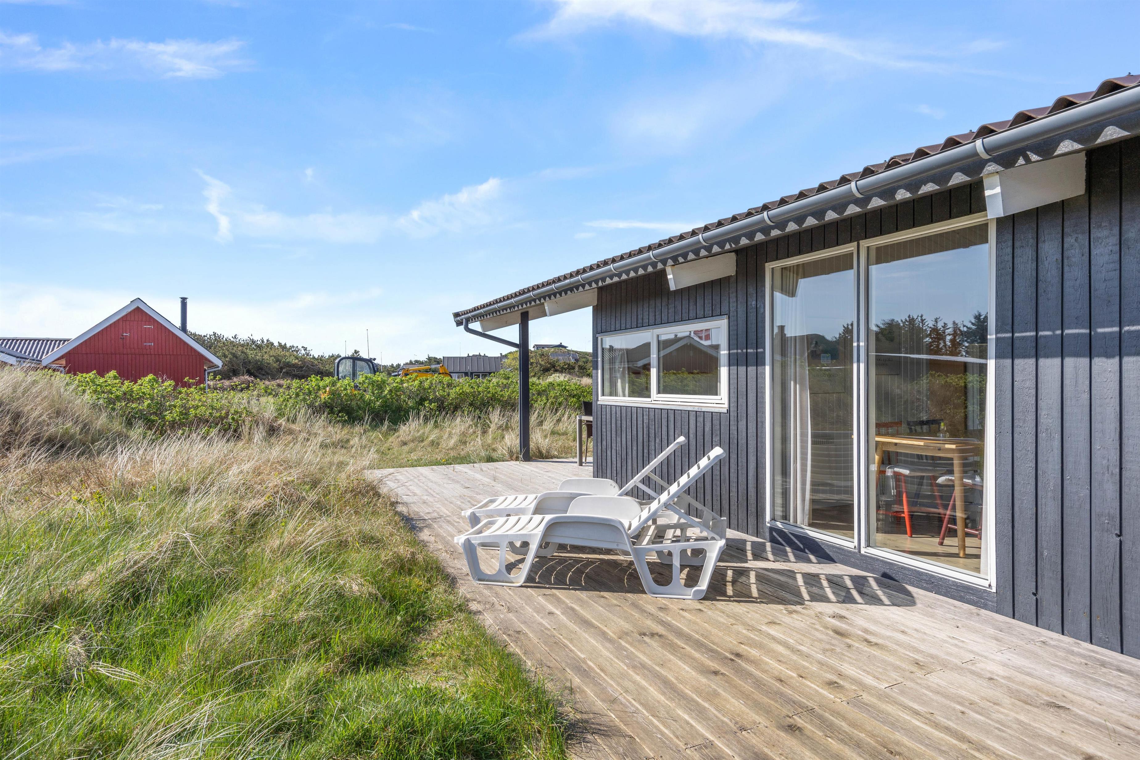 Sommerhuset ligger på en skøn naturgrund bare 300 meter fra det brusende og kraftfulde Vesterhav. En sti fra sommerhuset fører jer direkte ned til klitterne og den brede sandstrand med Vesterhavet i baggrunden. Den brede sandstrand inviterer til mange timers leg, hygge, lange gåture og samvær uanset vejret. I kan desuden nyde de smukke og betagende solnedgange over vandet.